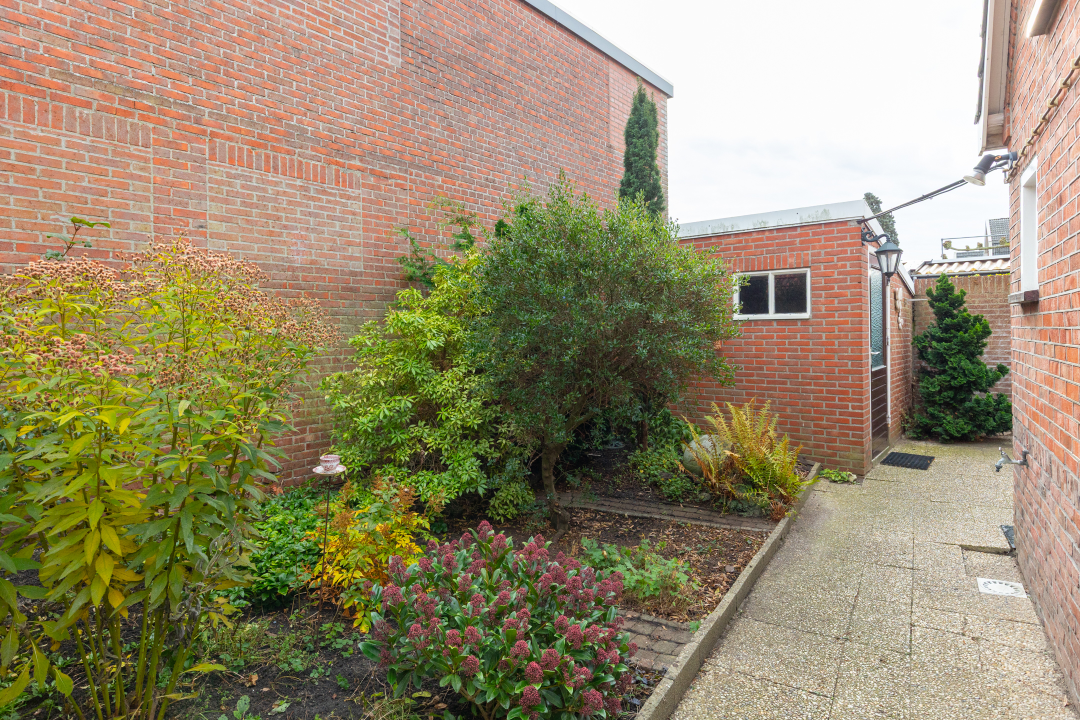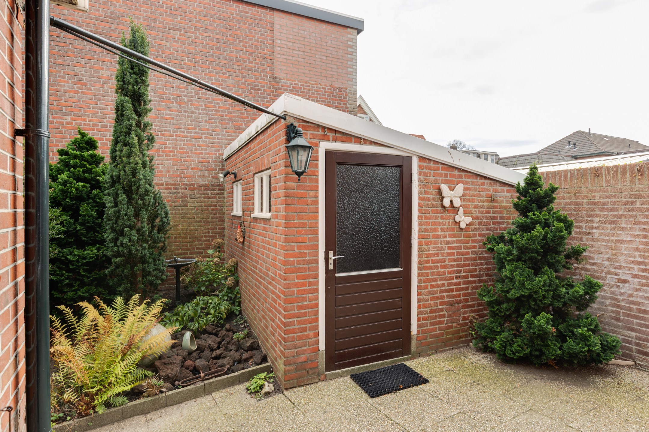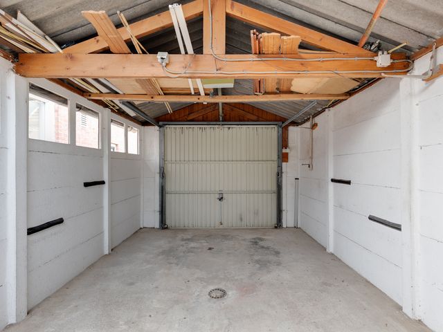 Extern: In de achtertuin bevindt zich een vrijstaande stenen schuur, ideaal voor opslag. Daarnaast is er een vrijstaande stenen garage, bereikbaar vanuit de tuin én vanaf de oprit/straat. De garage is voorzien van elektra en biedt de mogelijkheid om een auto binnen te parkeren.