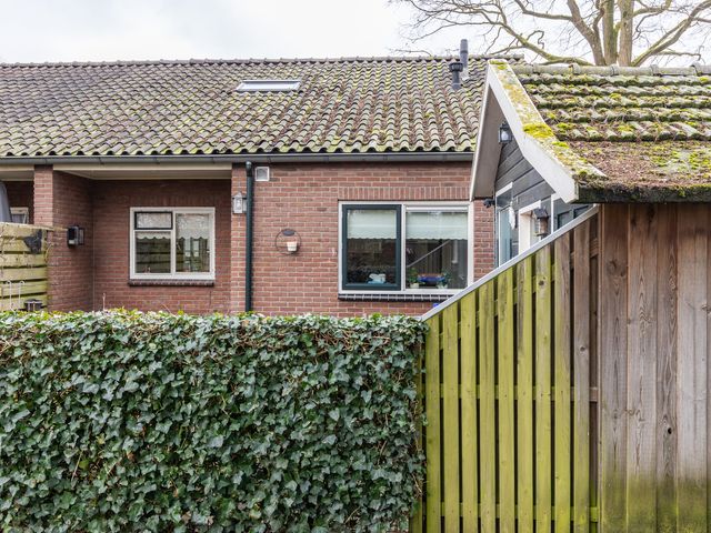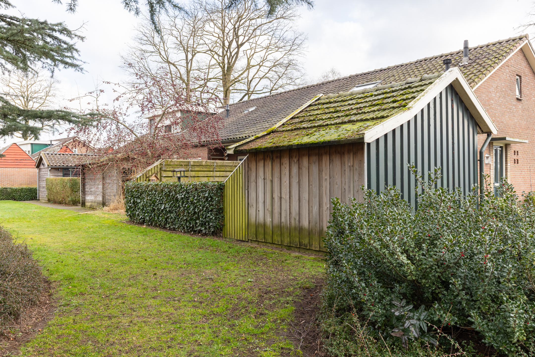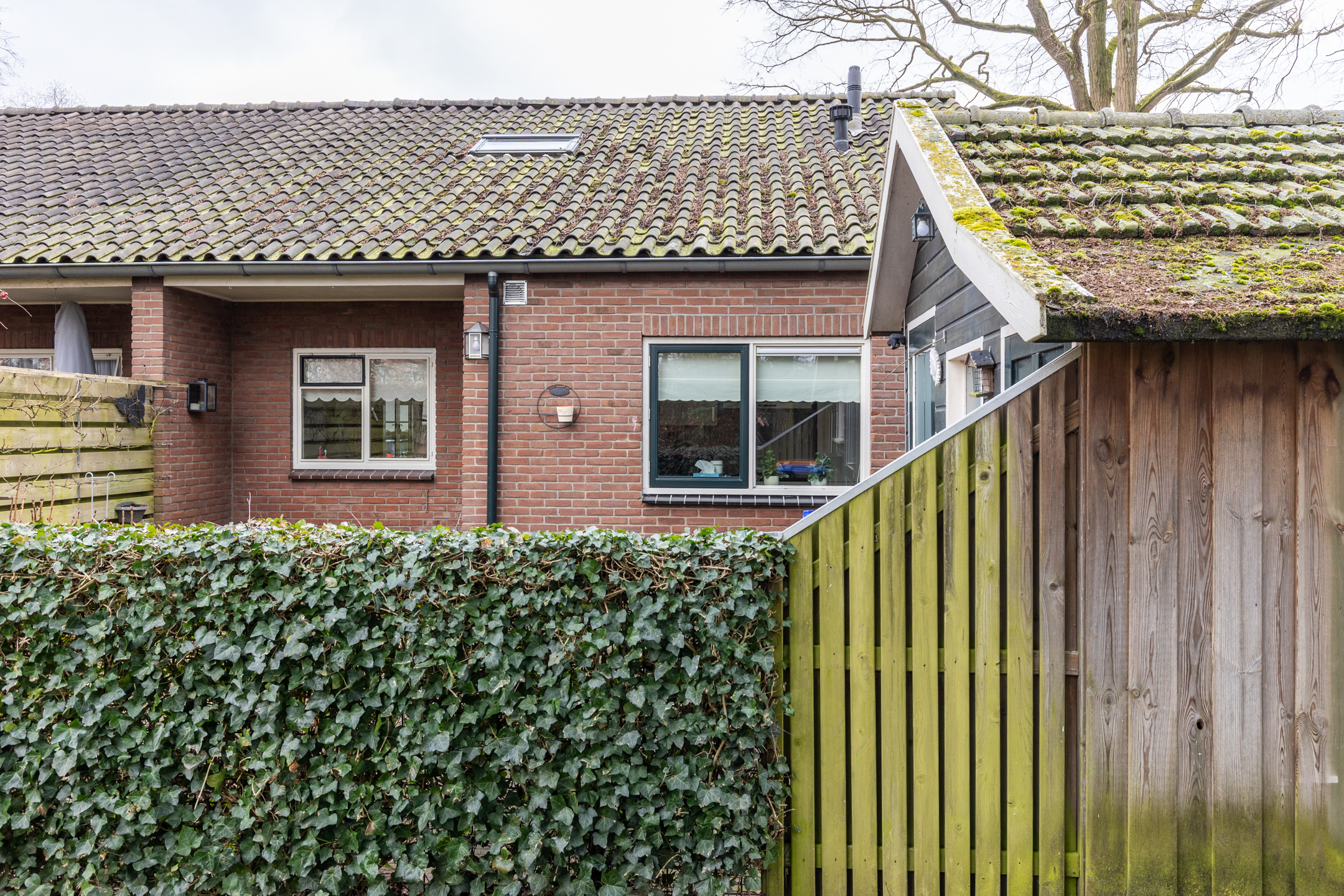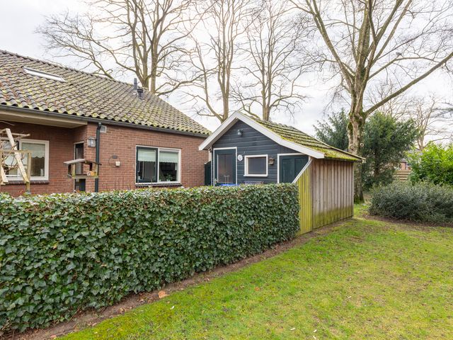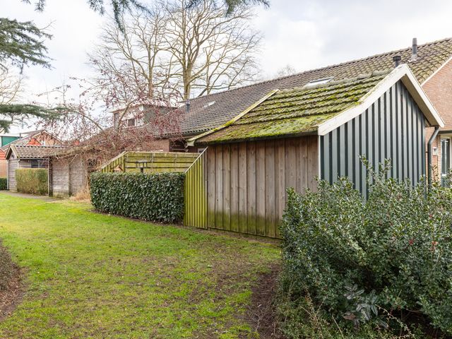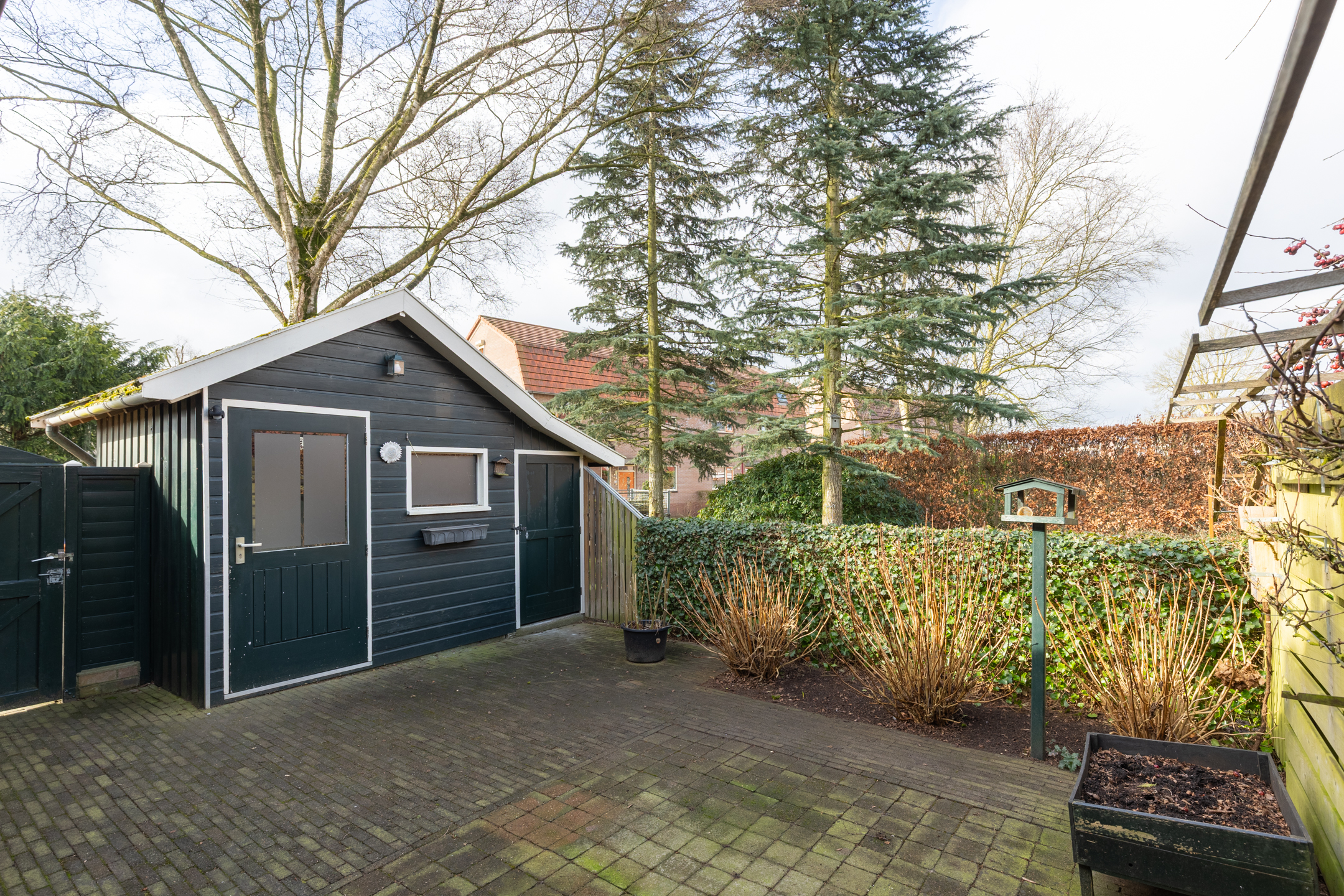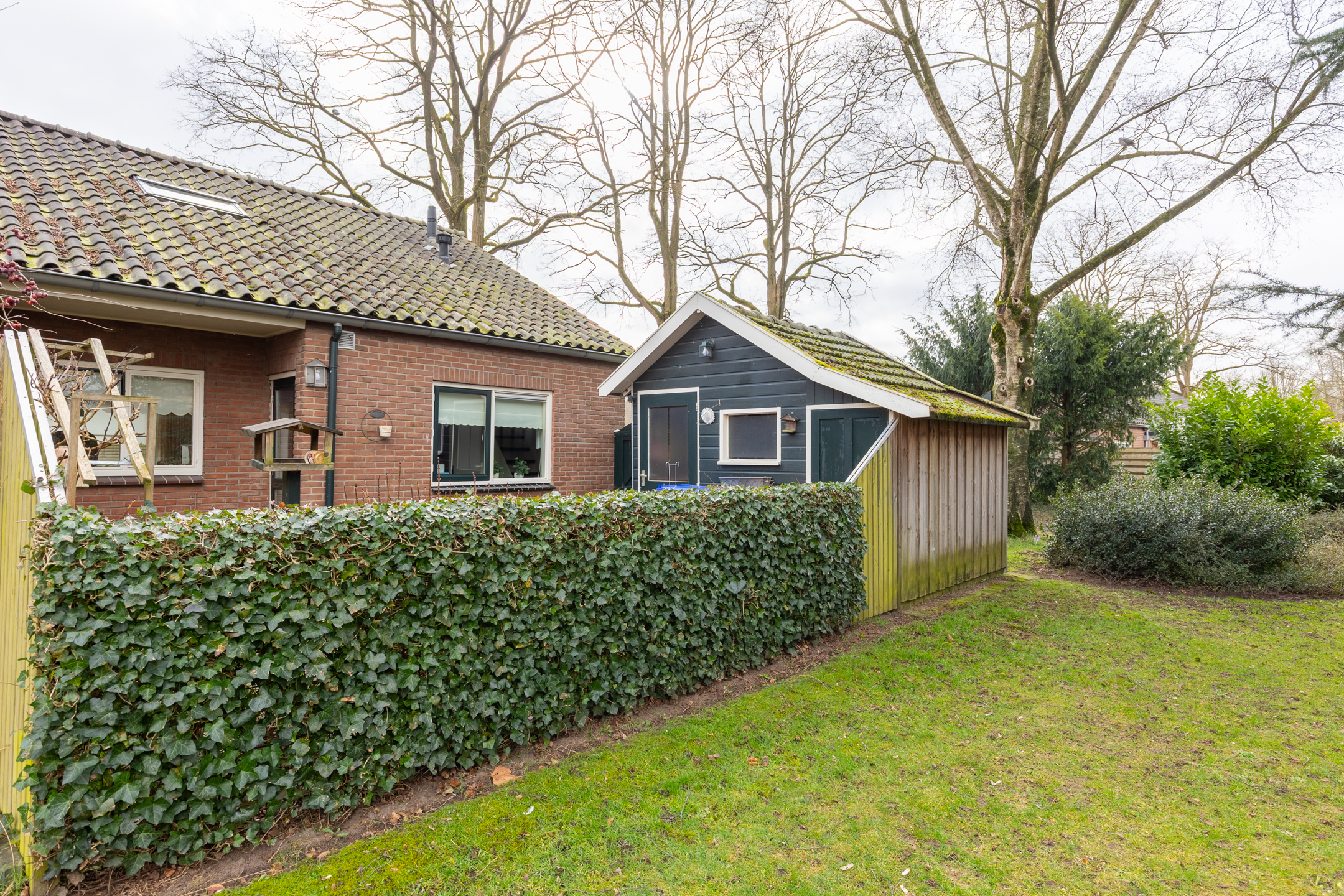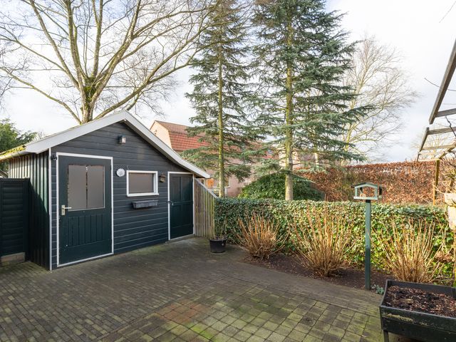 De houten schuur/berging in de achtertuin heeft 2 afsluitbare ruimtes. De compacte, onderhoudsvriendelijk ingerichte achtertuin is omheind middels een schutting, heg en afsluitbare houten poort.