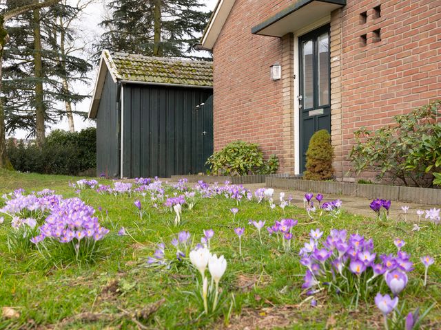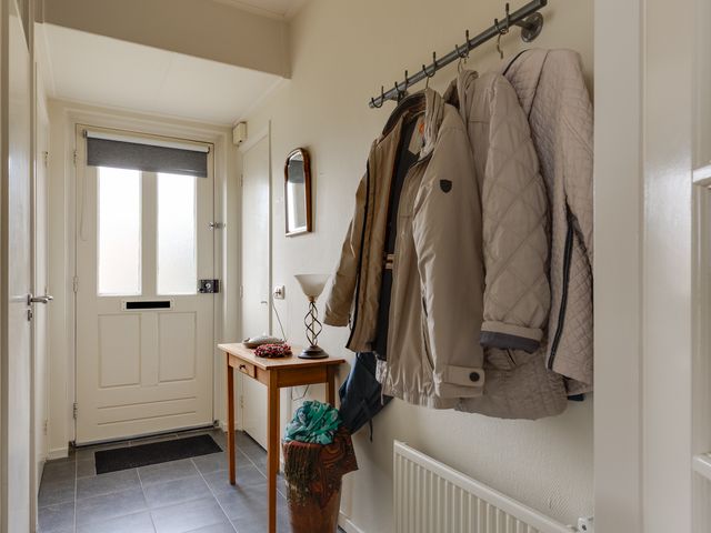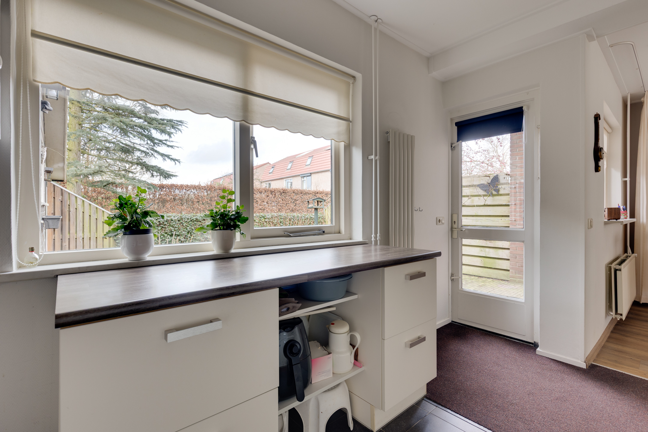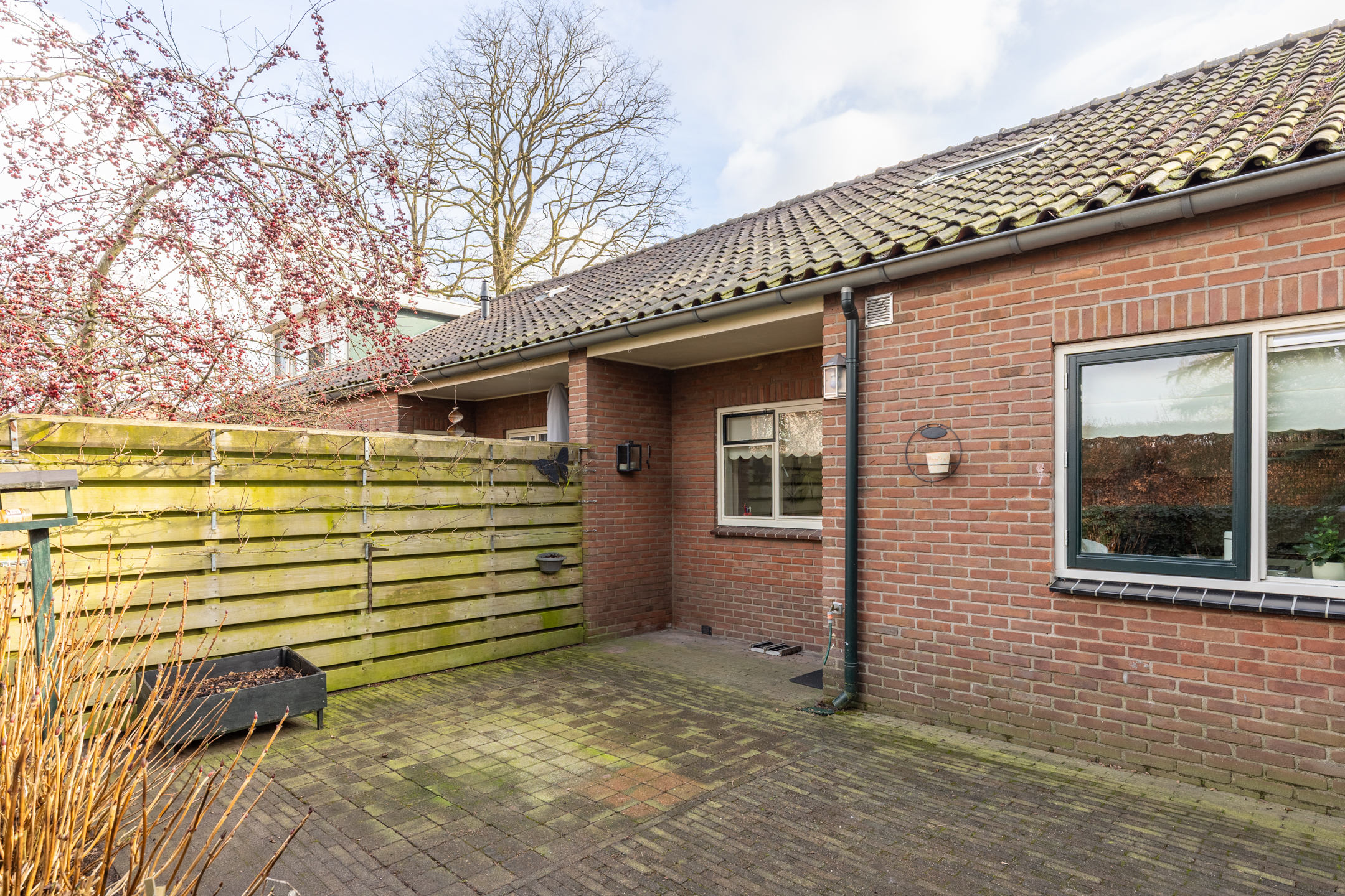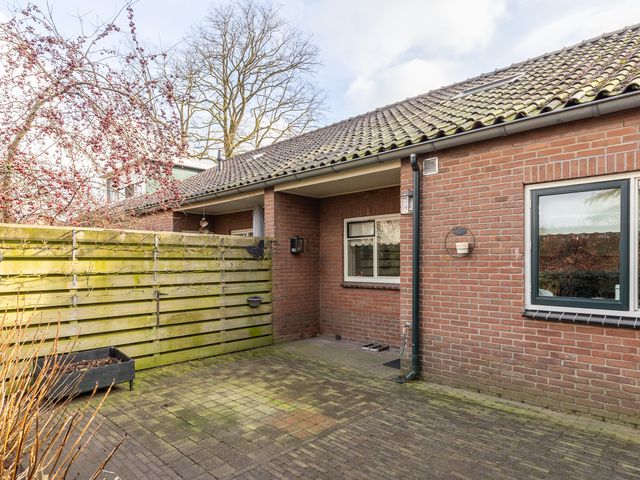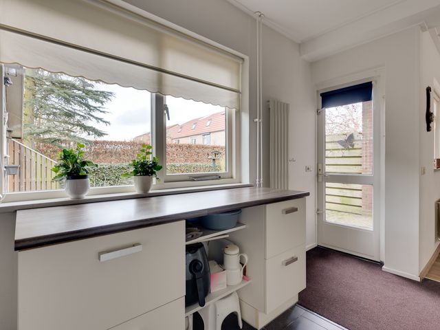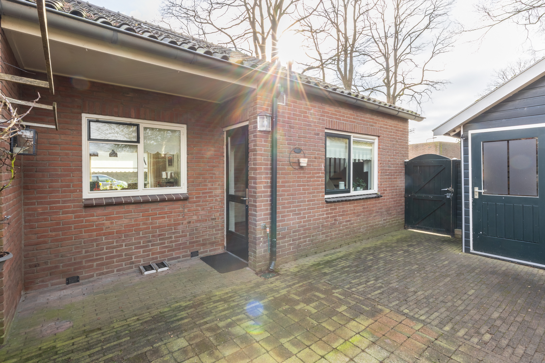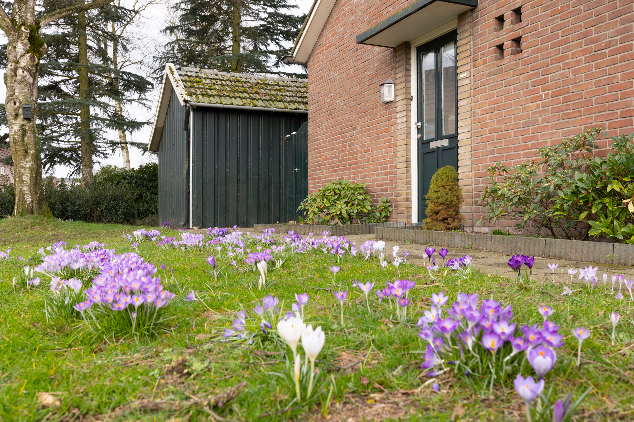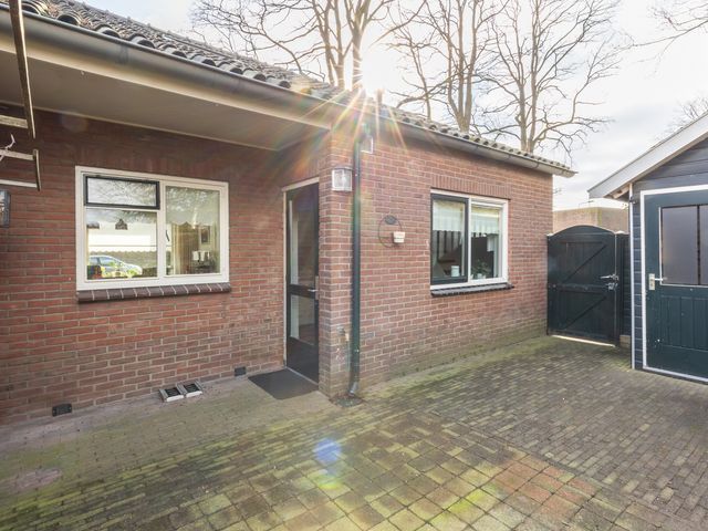 De houten schuur/berging in de achtertuin heeft 2 afsluitbare ruimtes. De compacte, onderhoudsvriendelijk ingerichte achtertuin is omheind middels een schutting, heg en afsluitbare houten poort.