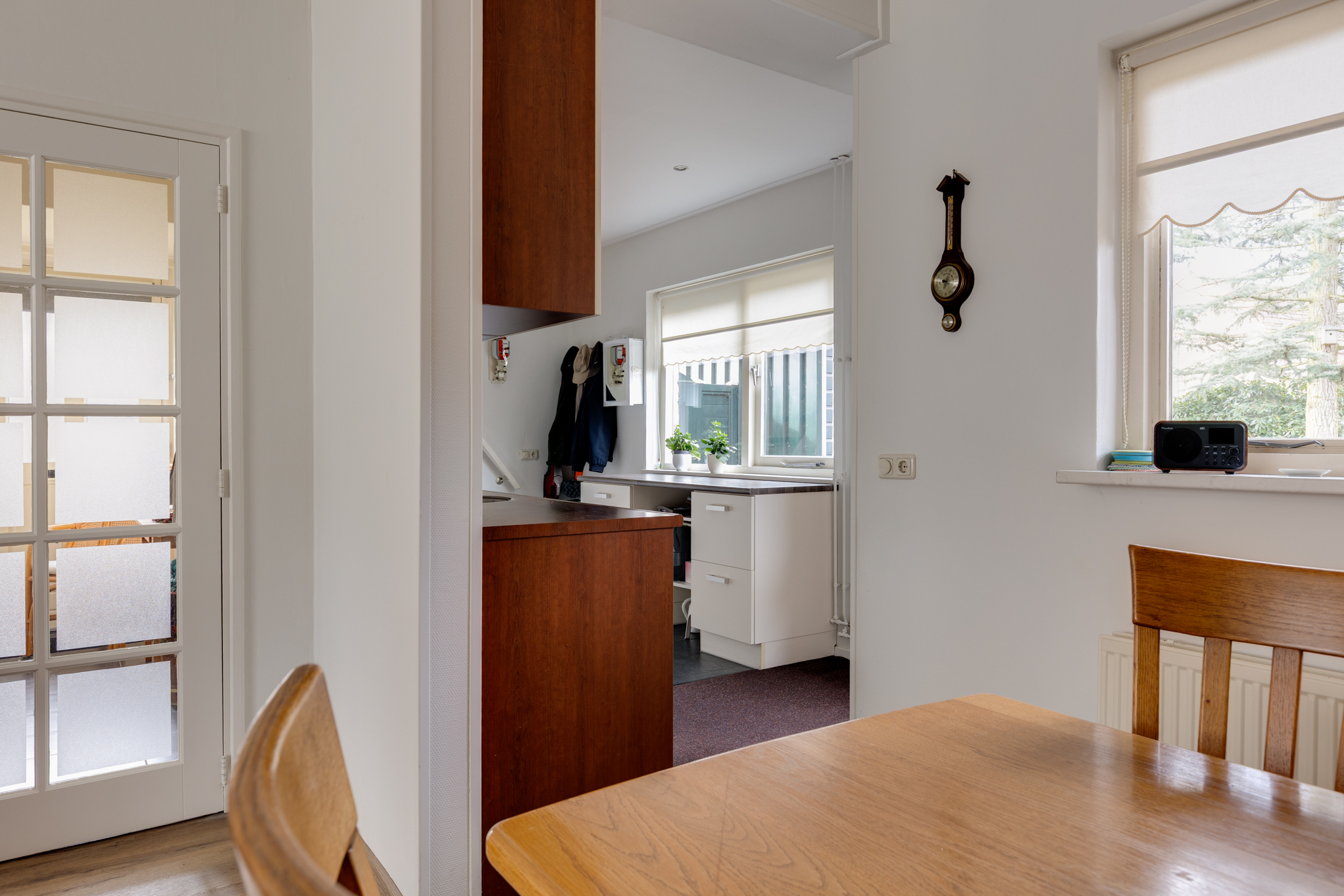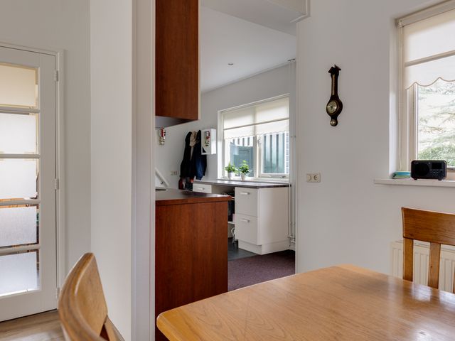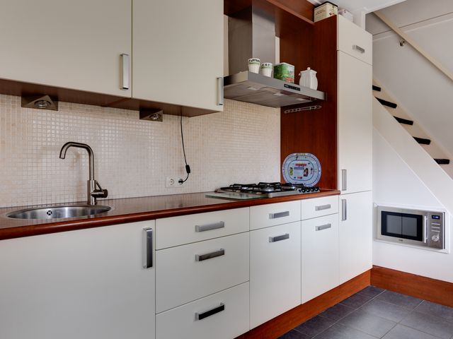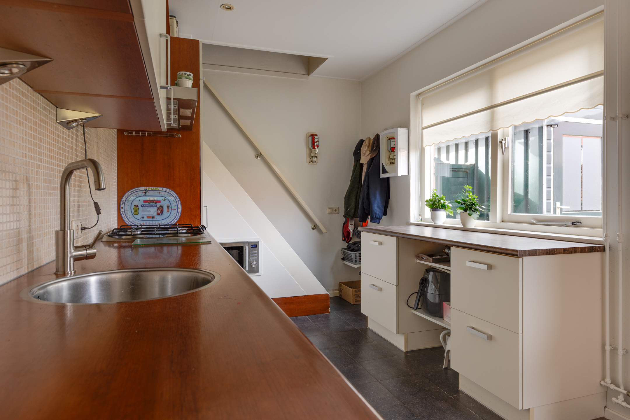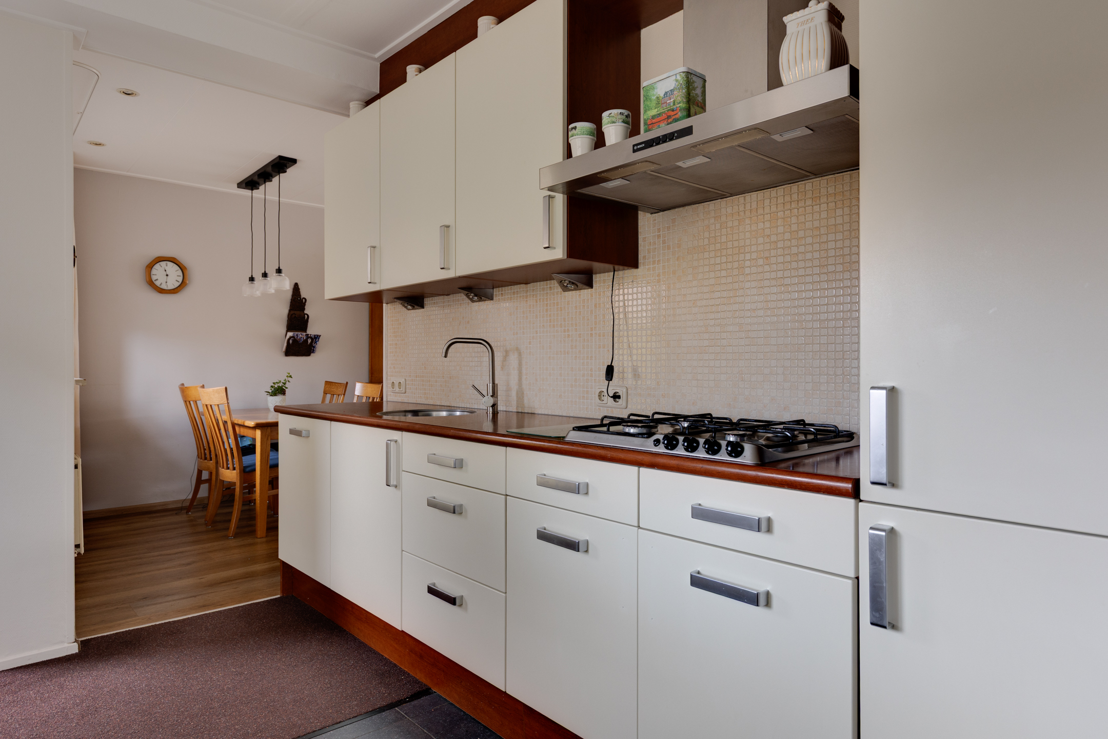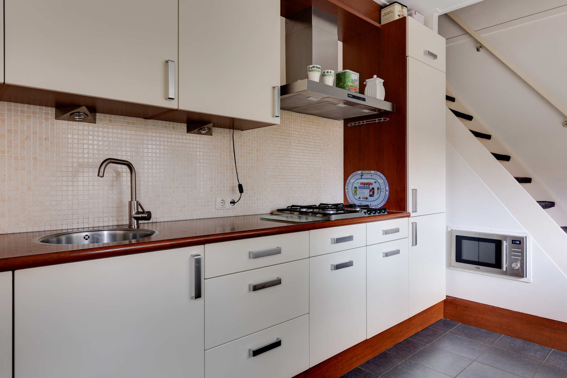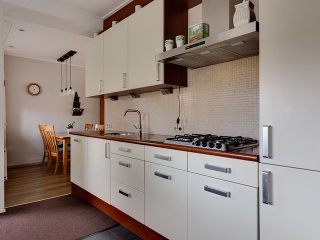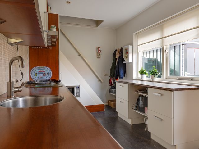 Vanuit de woonkamer is er toegang tot de halfopen keuken welke is voorzien van een inbouwkeuken met diverse apparatuur, plavuizenvloer en trapopgang naar de verdieping. De keuken biedt eveneens toegang tot het terras/tuin aan de achterzijde.