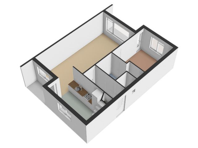 Deze woning beschikt over 2 slaapkamers waarvan één op de begane grond. Ook de badkamer bevindt zich op de begane grond.