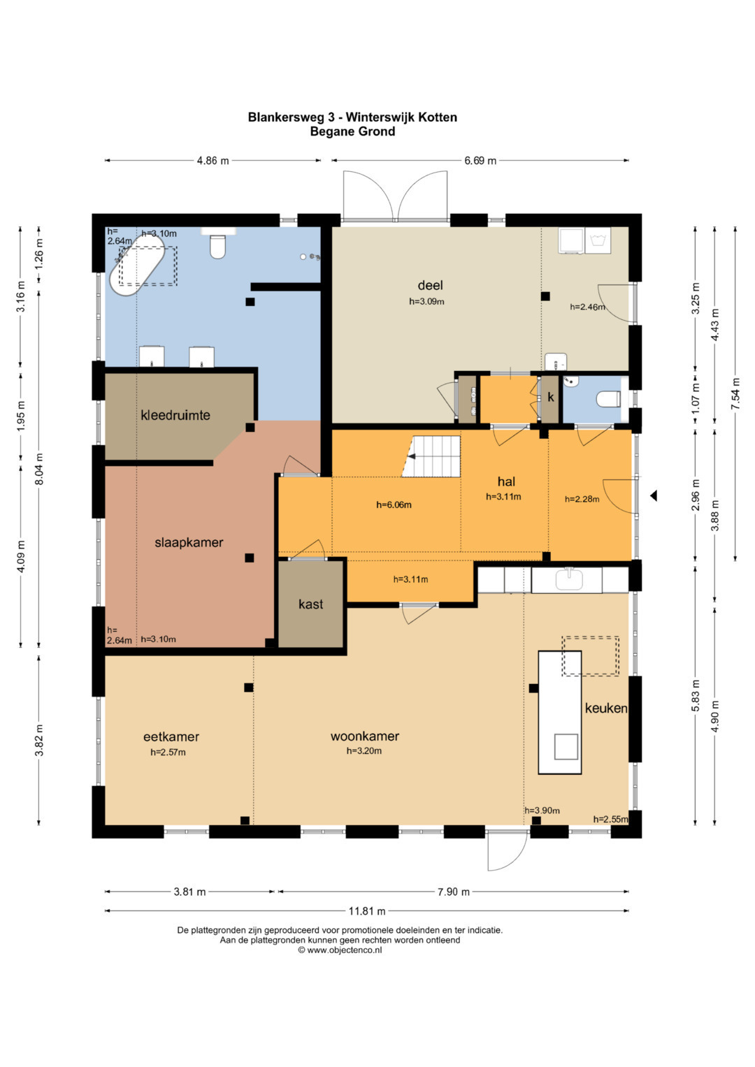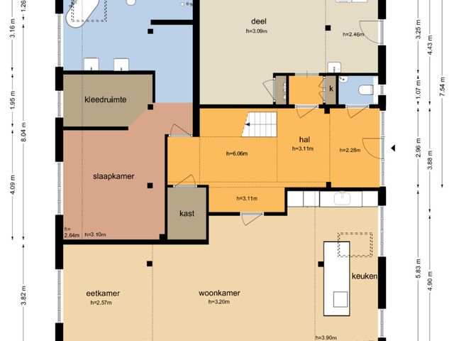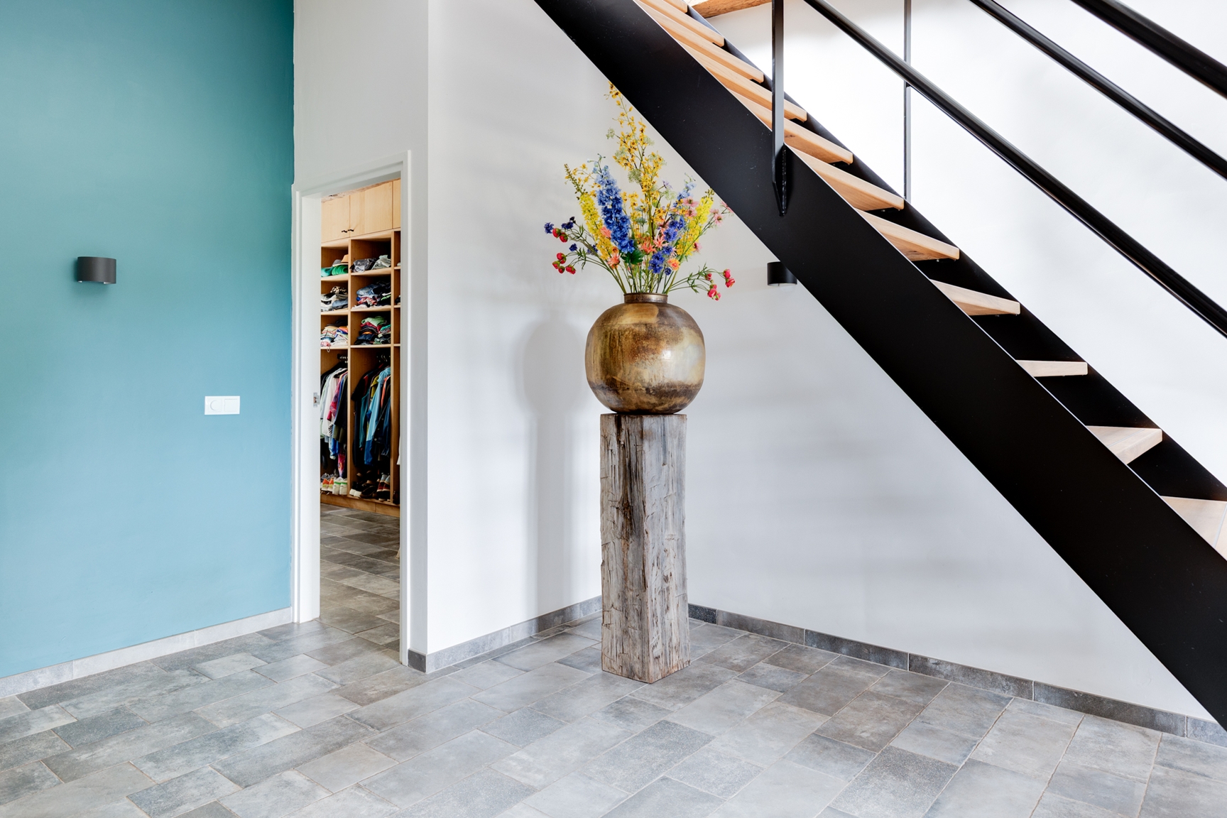 De hal biedt verder toegang tot een inbouwkast, portaal naar de deel en trapopgang naar vide.