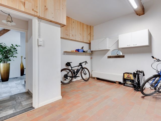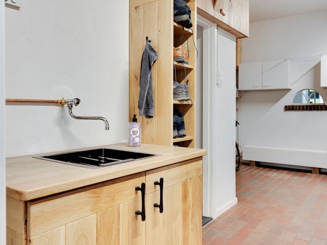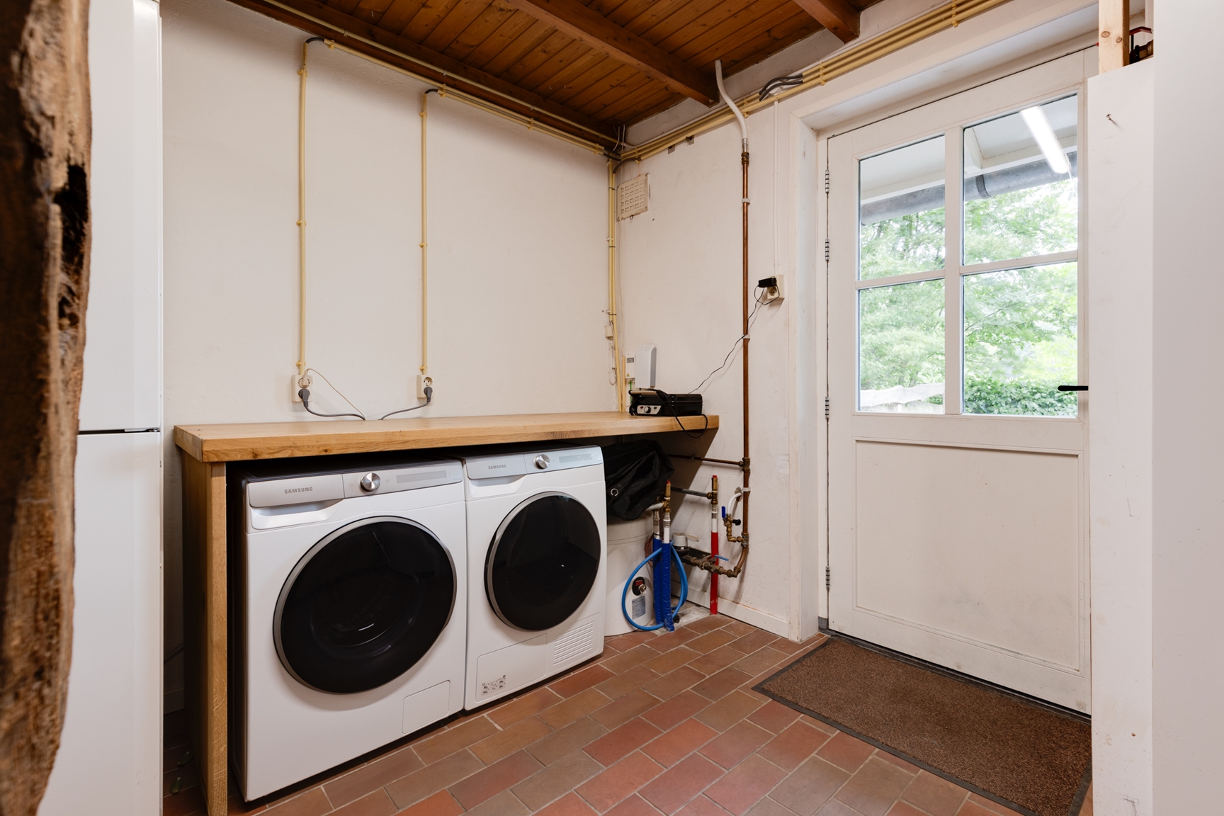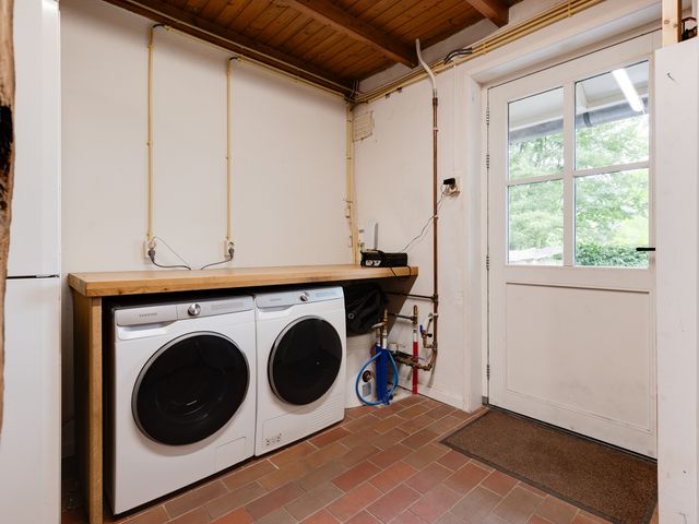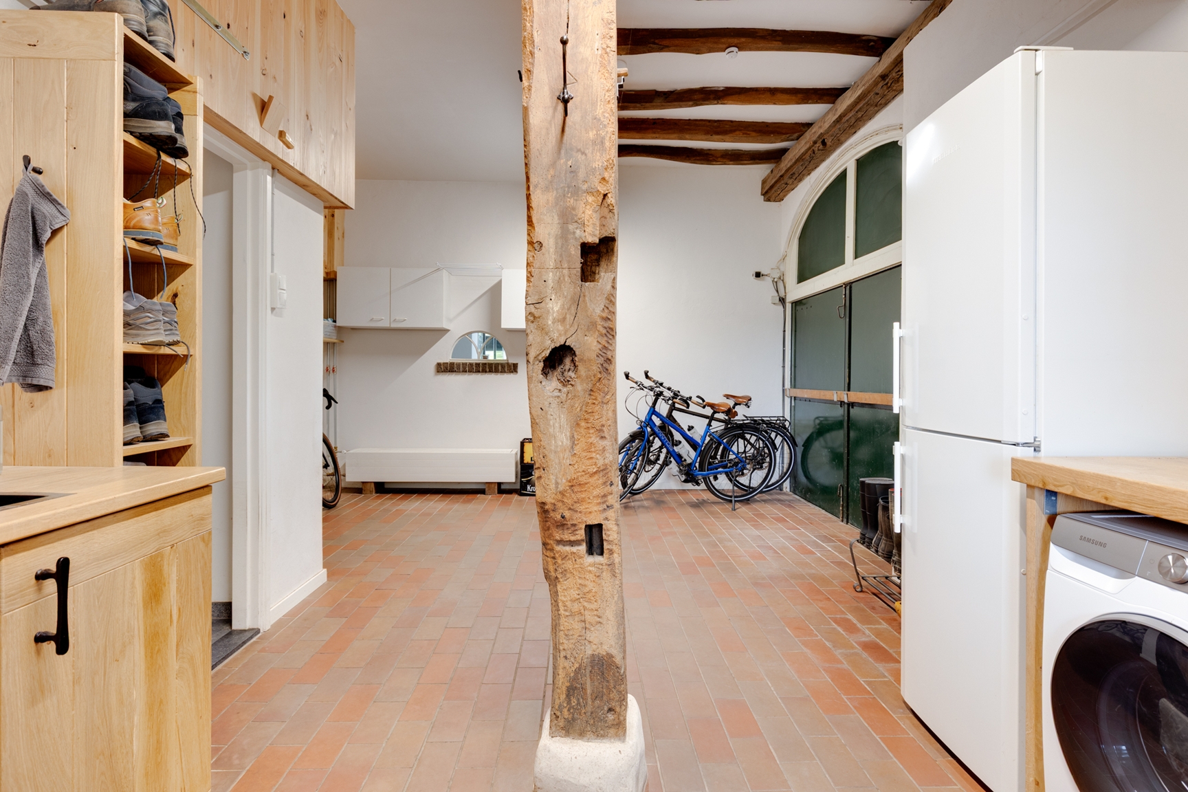 De deelruimte is in gebruik als bijkeuken en berging. In deze ruimte bevinden zich o.a. de meterkast en een aansluiting voor wasmachine en -droger. Ook is hier een keukenblokje en vaste kastruimte gerealiseerd.