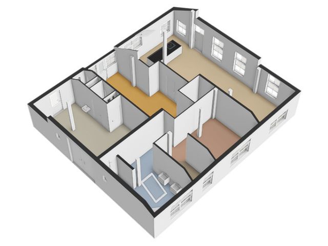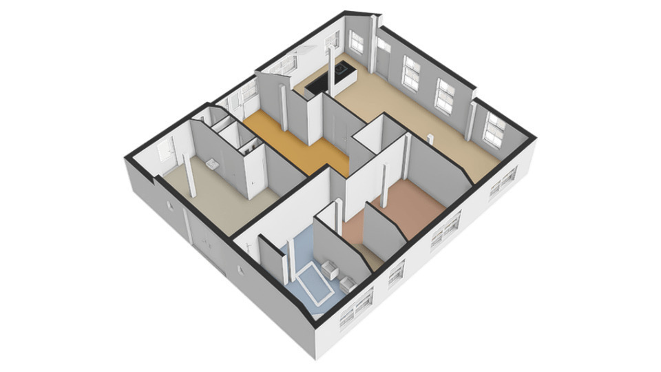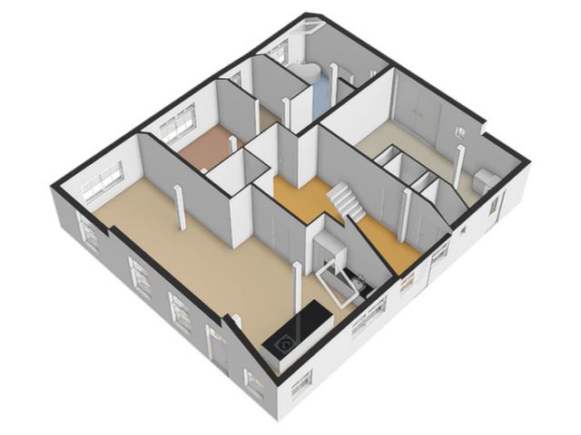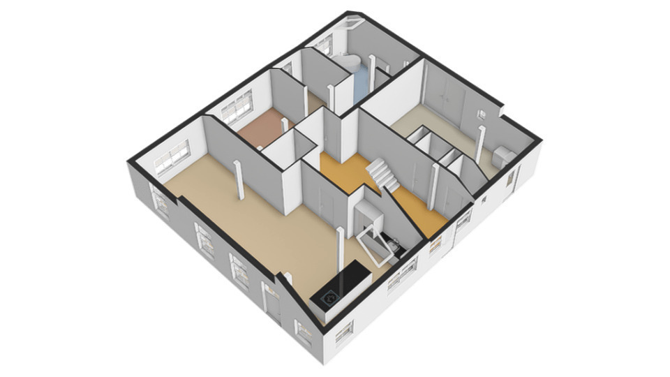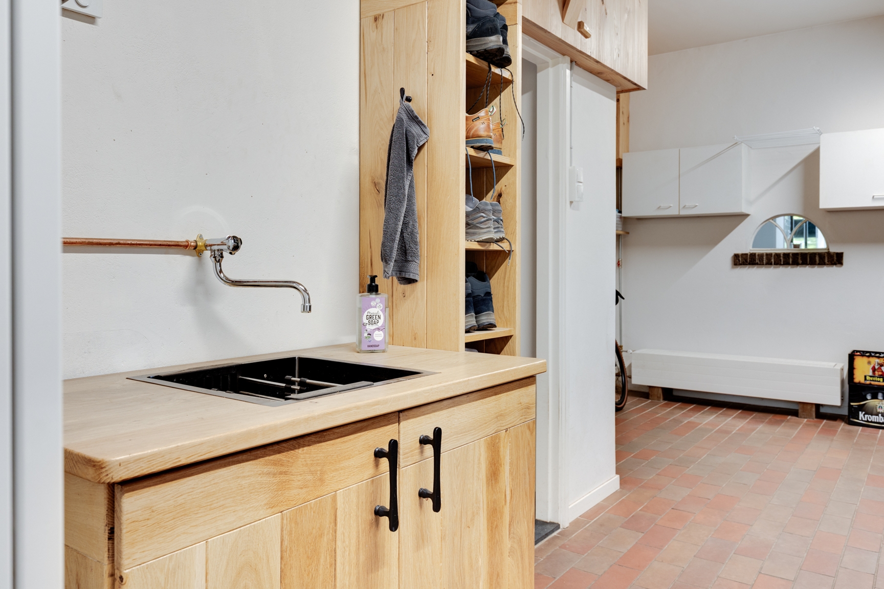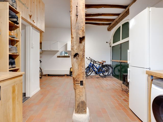 De deelruimte is in gebruik als bijkeuken en berging. In deze ruimte bevinden zich o.a. de meterkast en een aansluiting voor wasmachine en -droger. Ook is hier een keukenblokje en vaste kastruimte gerealiseerd.