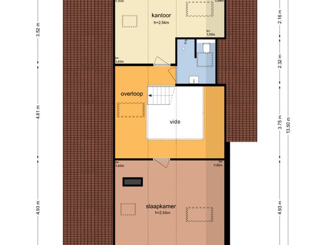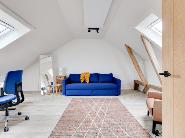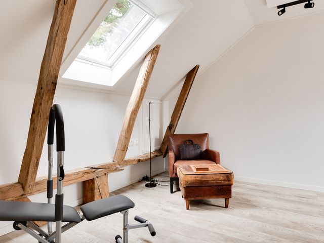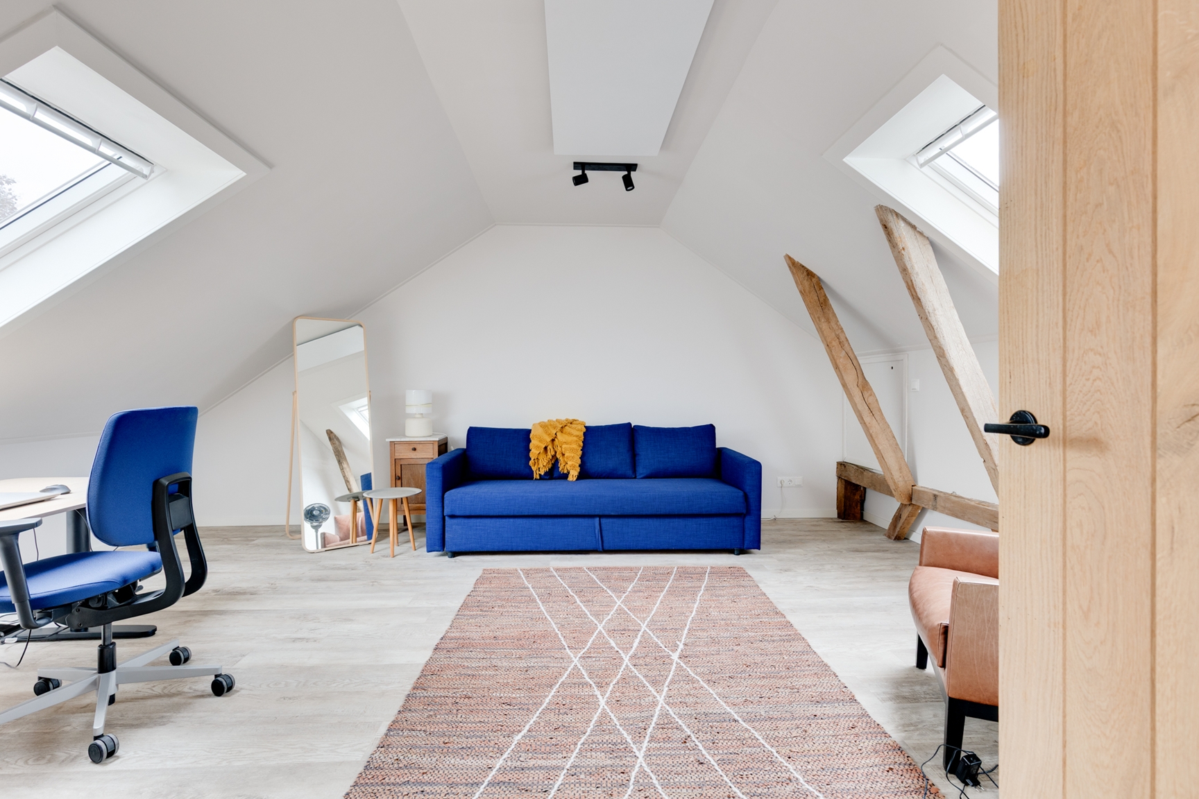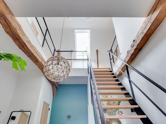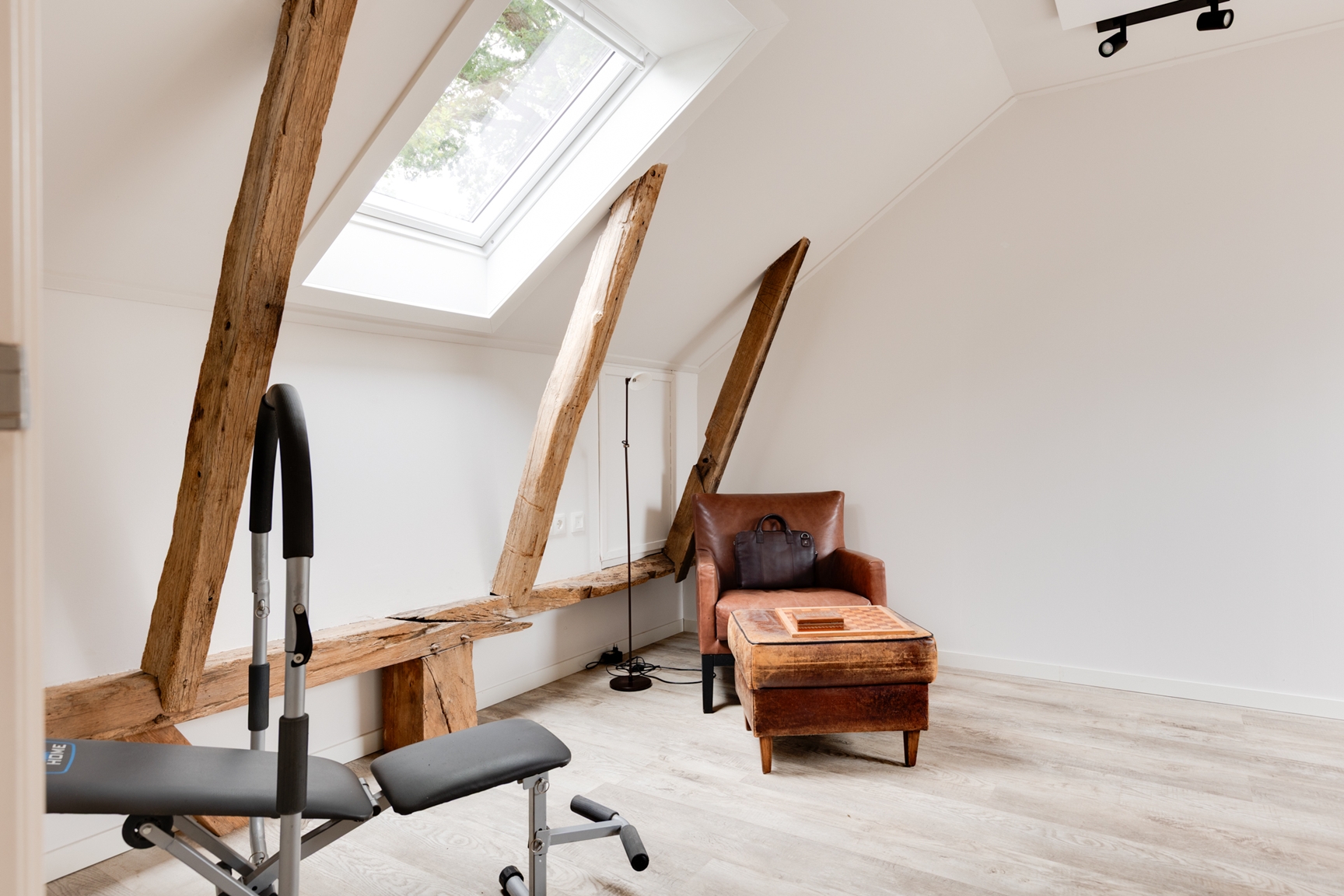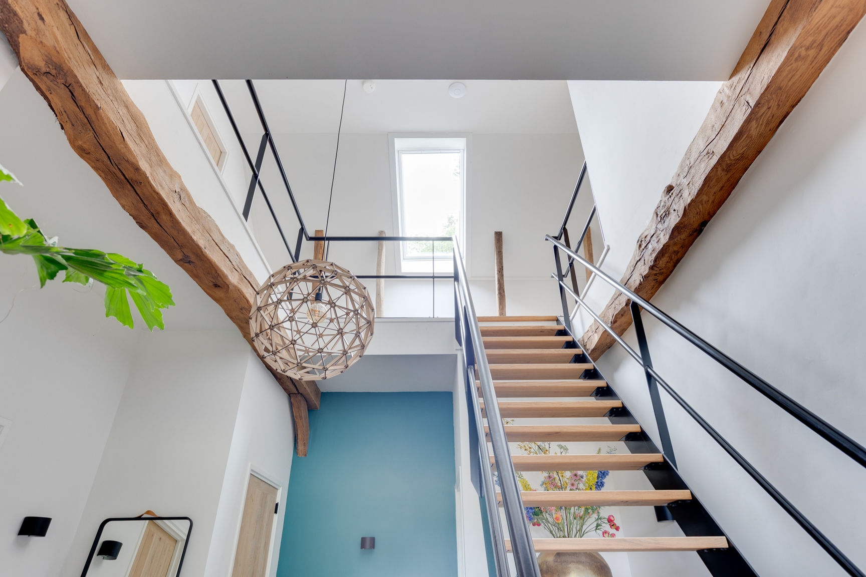 Verdieping: Via de trapopgang in de hal is er toegang tot de vide. Hoewel de trap en balustrade modern zijn uitgevoerd past deze perfect in deze prachtig verbouwde woning. De vide biedt toegang tot 2 slaapkamers en een badkamer. Eén van de slaapkamers is momenteel in gebruik als kantoor. De badkamer is voorzien van een inloopdouche, wastafel en wandcloset. Door de in totaal 6 dakramen is er ook op deze etage een overvloed aan natuurlijk daglicht.