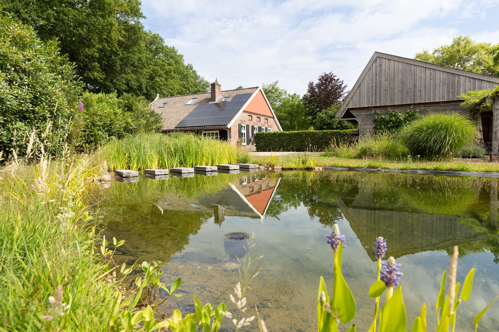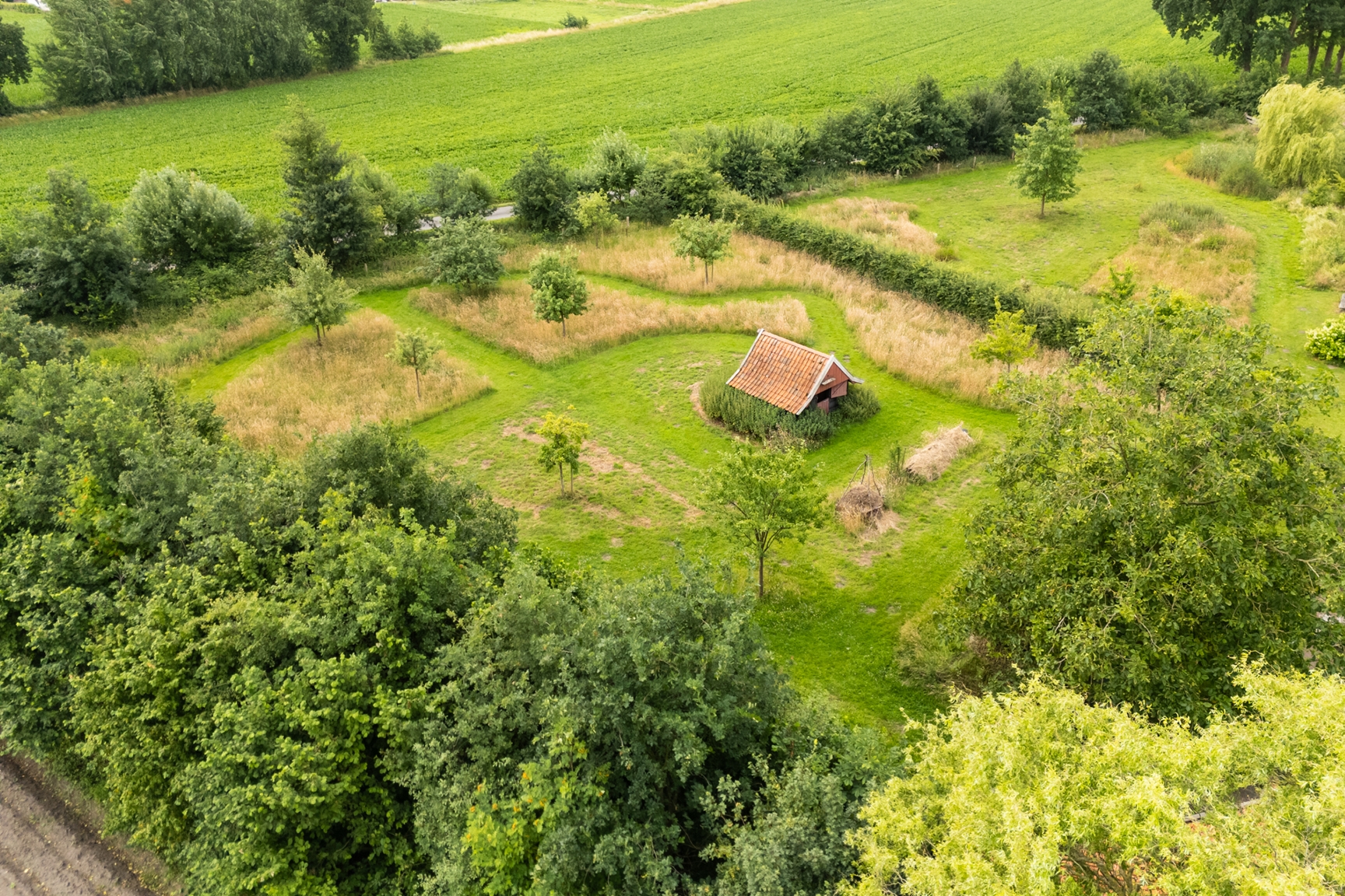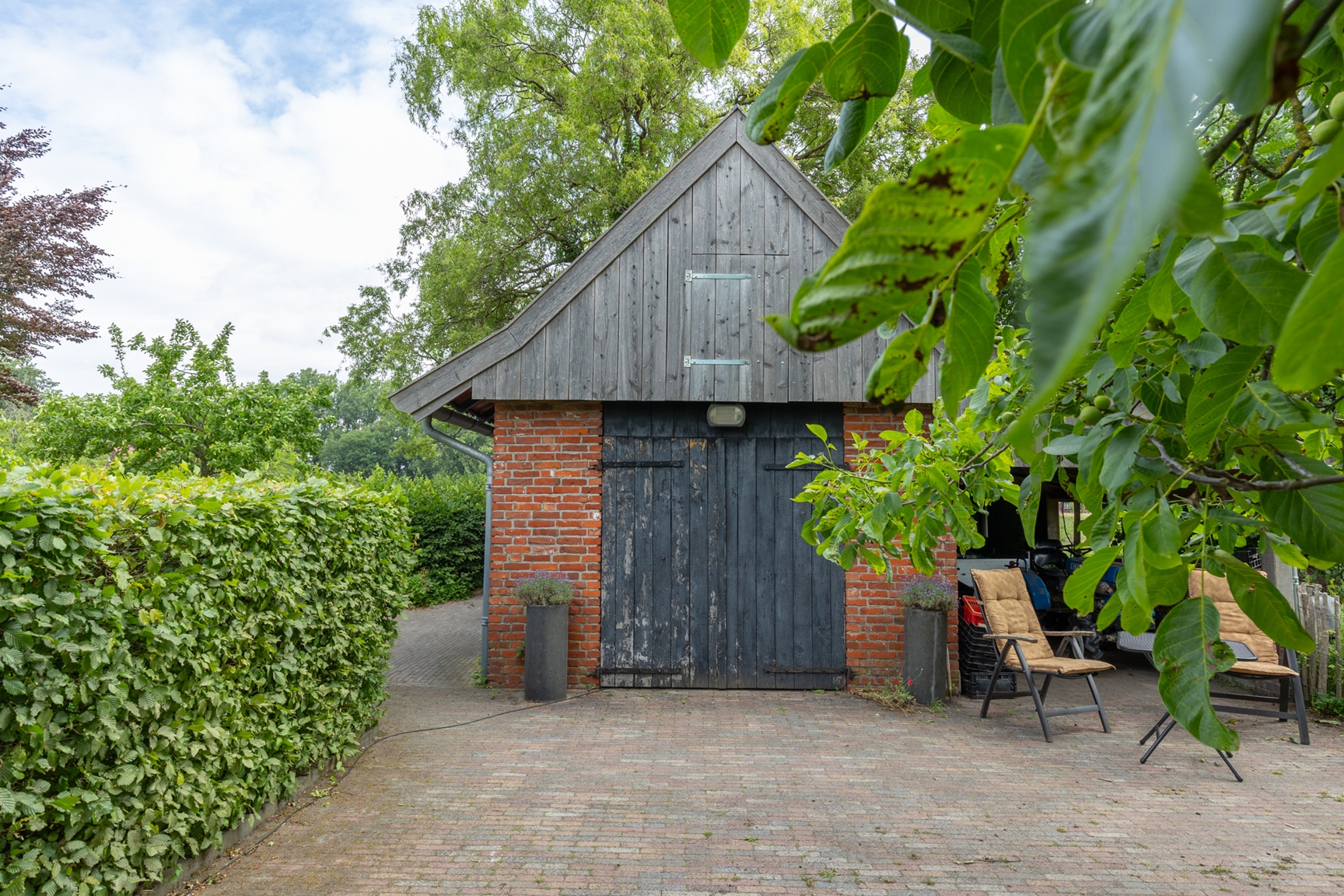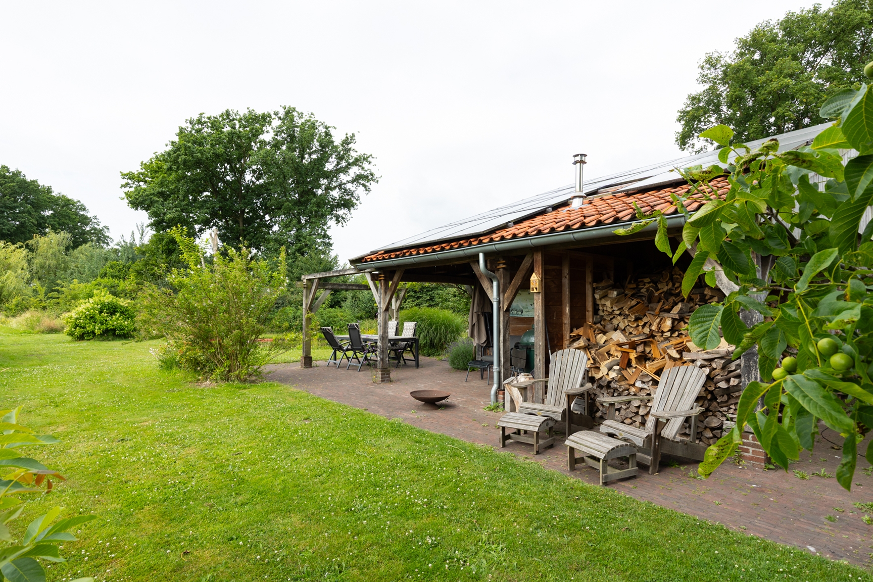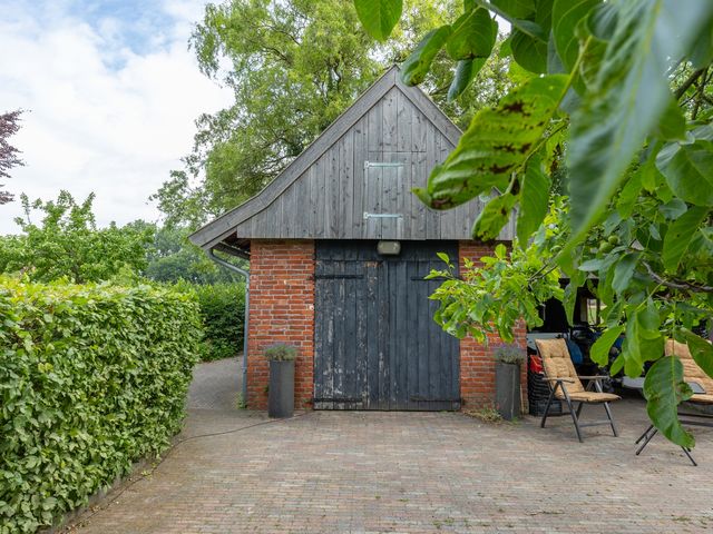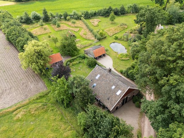 Het geheel omvat een perceel van 6.340 m² en is omgetoverd tot een oase van biodiversiteit. Door de aanplant van inheemse boompjes, heesters en struiken is dit een plek geworden waar zelfs de steenuil zich thuisvoelt. Op het perceel bevinden zich behalve een kraakheldere zwemvijver ook nog 3 bijgebouwen waaronder een houten karloods met ruimte voor 2 auto’s en aan de achterzijde een overdekt terras en houtopslag. De vrijstaande stenen schuur is voorzien van openslaande deuren en ook aan deze schuur is een aanbouw gerealiseerd.