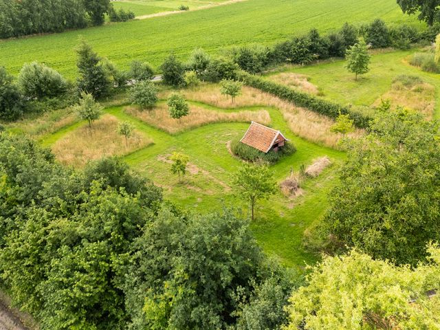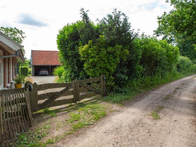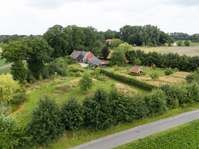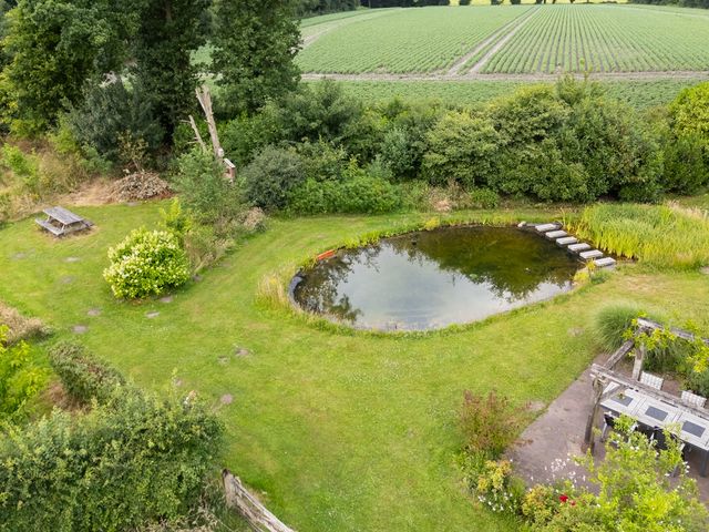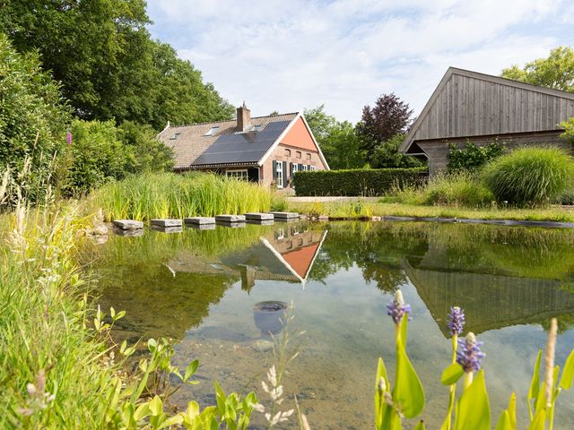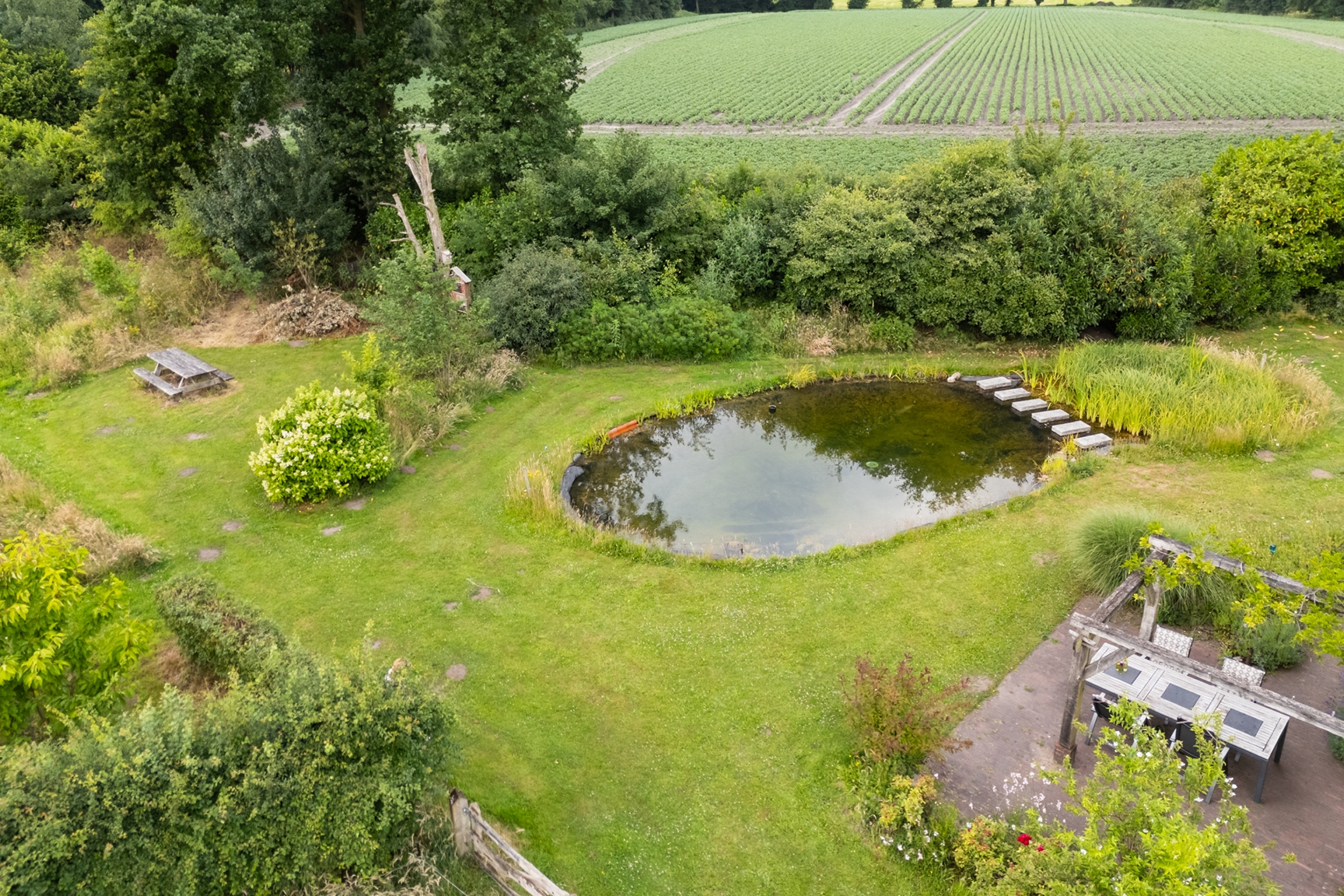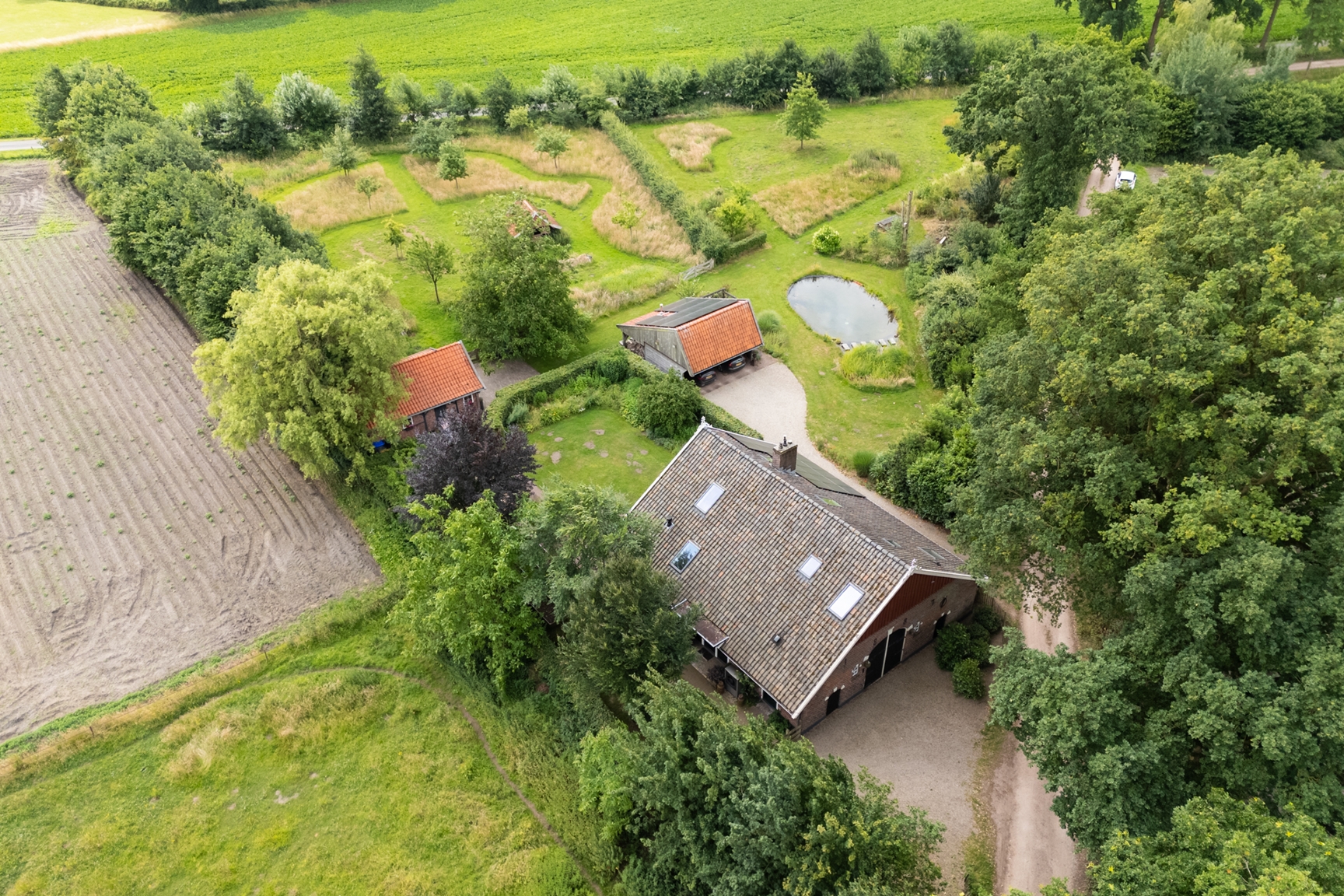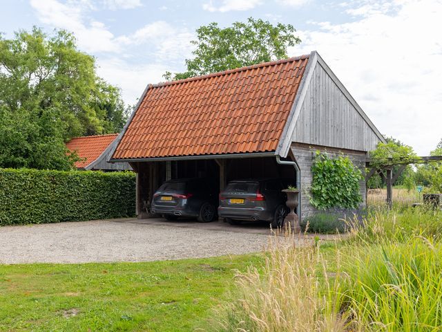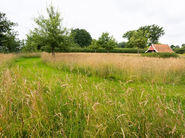 Het geheel omvat een perceel van 6.340 m² en is omgetoverd tot een oase van biodiversiteit. Door de aanplant van inheemse boompjes, heesters en struiken is dit een plek geworden waar zelfs de steenuil zich thuisvoelt. Op het perceel bevinden zich behalve een kraakheldere zwemvijver ook nog 3 bijgebouwen waaronder een houten karloods met ruimte voor 2 auto’s en aan de achterzijde een overdekt terras en houtopslag. De vrijstaande stenen schuur is voorzien van openslaande deuren en ook aan deze schuur is een aanbouw gerealiseerd.