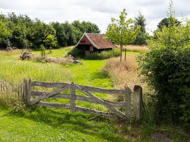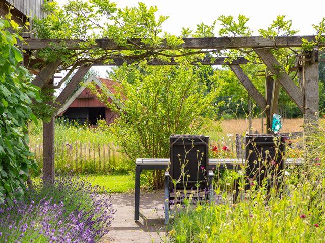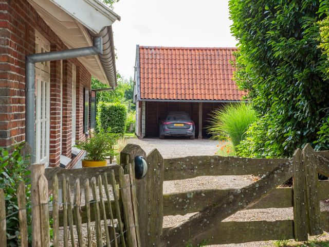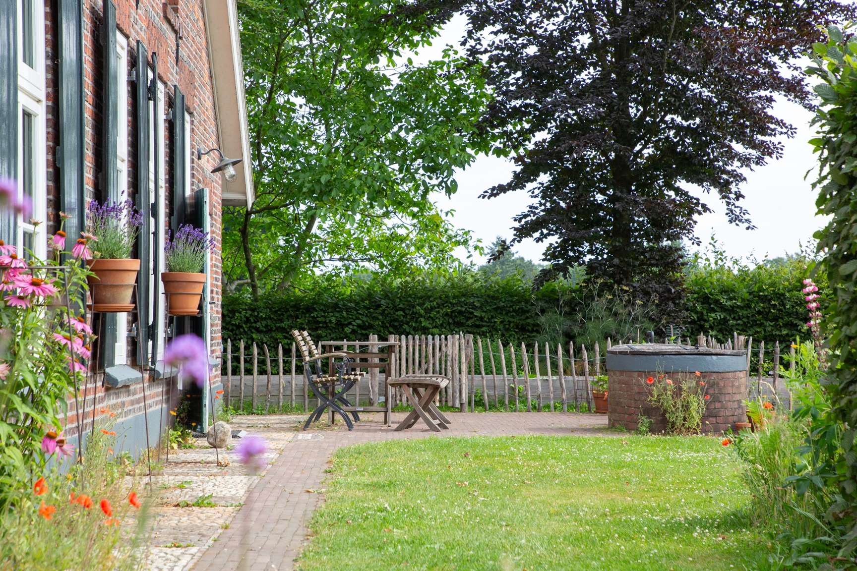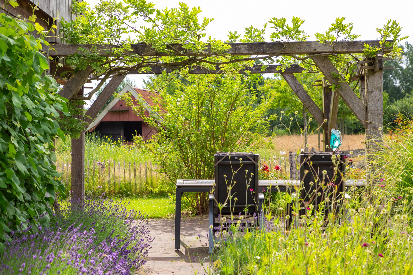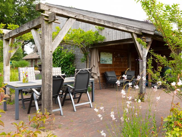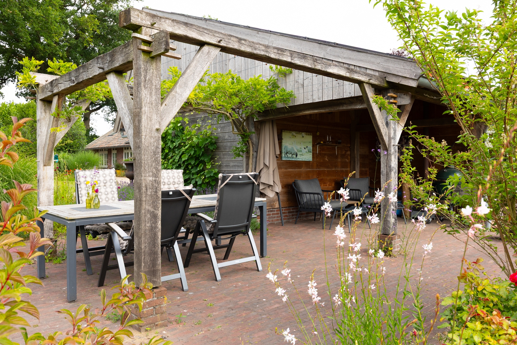 Het geheel omvat een perceel van 6.340 m² en is omgetoverd tot een oase van biodiversiteit. Door de aanplant van inheemse boompjes, heesters en struiken is dit een plek geworden waar zelfs de steenuil zich thuisvoelt. Op het perceel bevinden zich behalve een kraakheldere zwemvijver ook nog 3 bijgebouwen waaronder een houten karloods met ruimte voor 2 auto’s en aan de achterzijde een overdekt terras en houtopslag. De vrijstaande stenen schuur is voorzien van openslaande deuren en ook aan deze schuur is een aanbouw gerealiseerd.