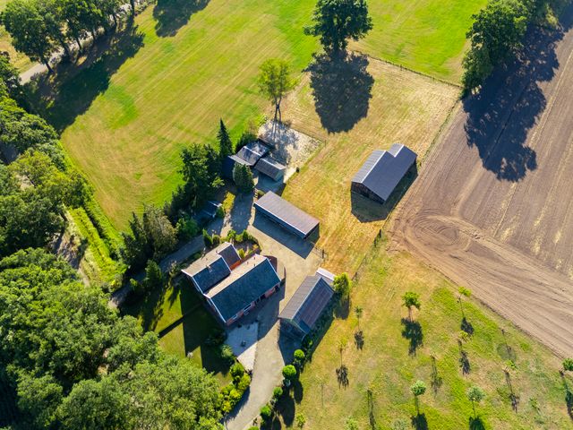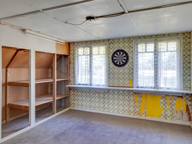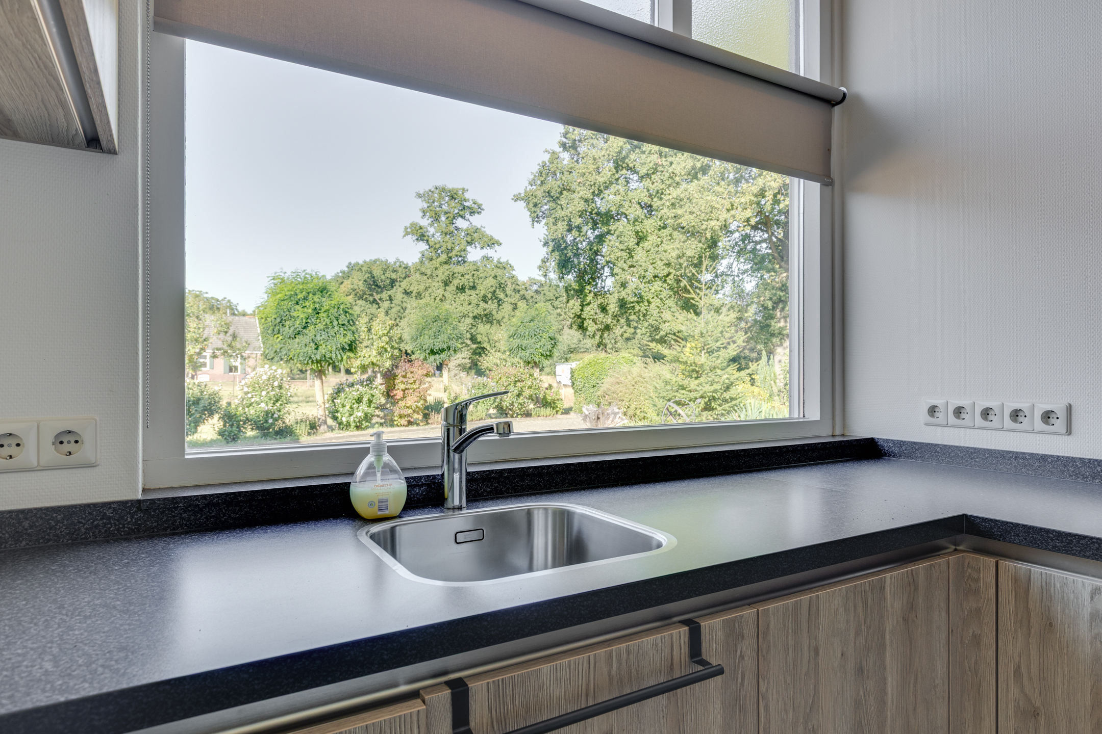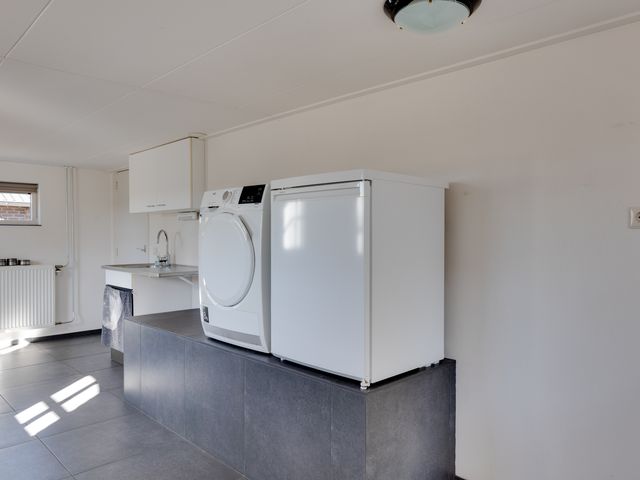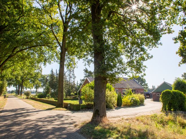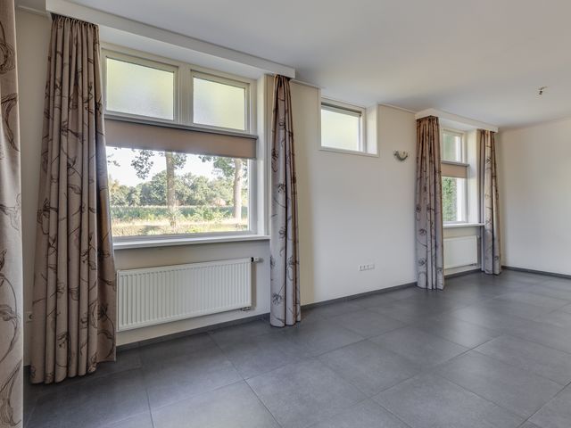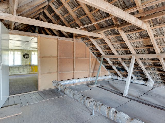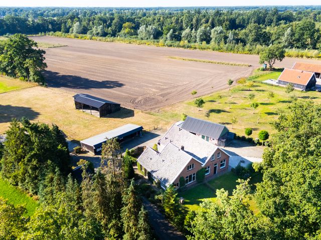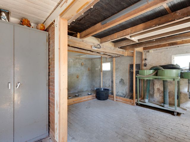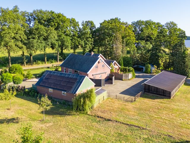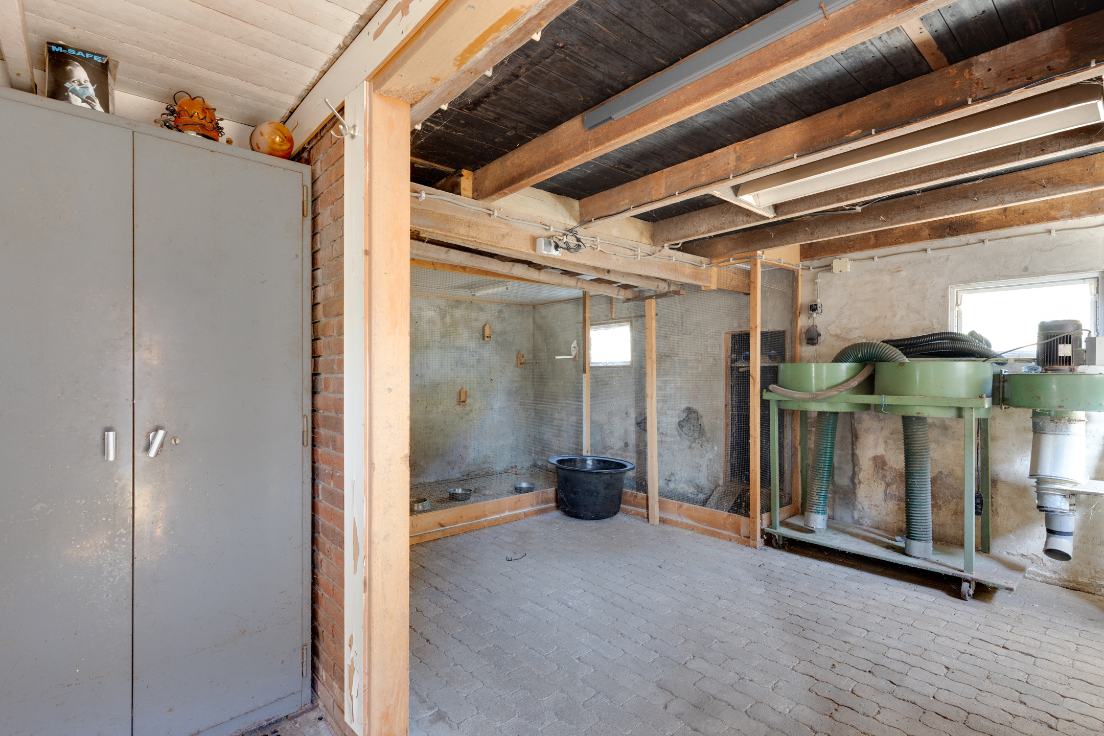 De lichte woonkamer biedt een mooi uitzicht, terwijl de aanwezige schuur met werkplaats, dubbele carport en loods volop mogelijkheden geeft voor hobby’s of opslag. Een ideale plek voor wie landelijk en vrij wil wonen.