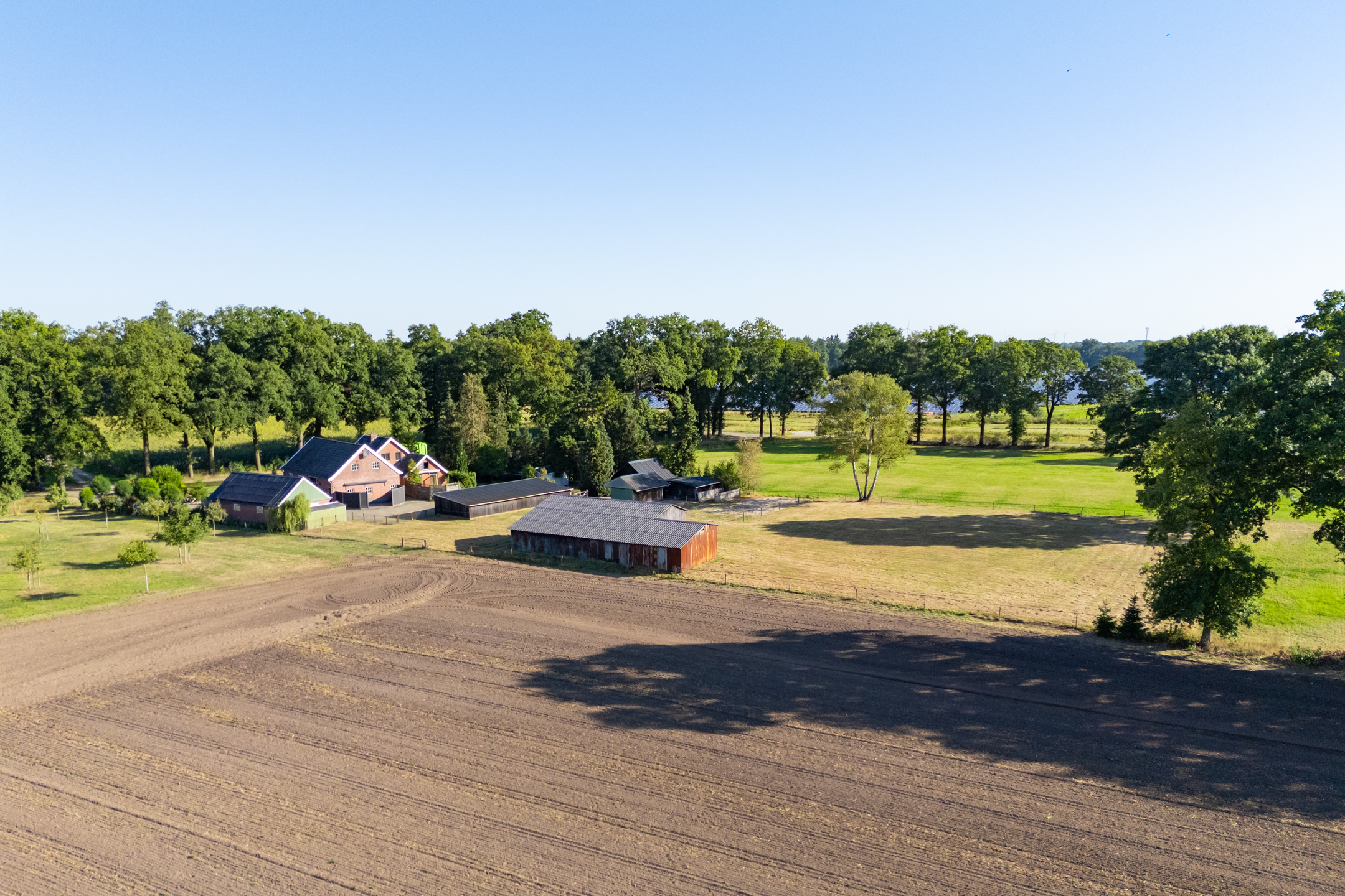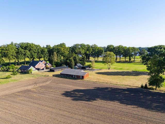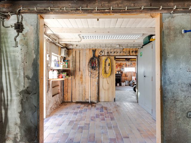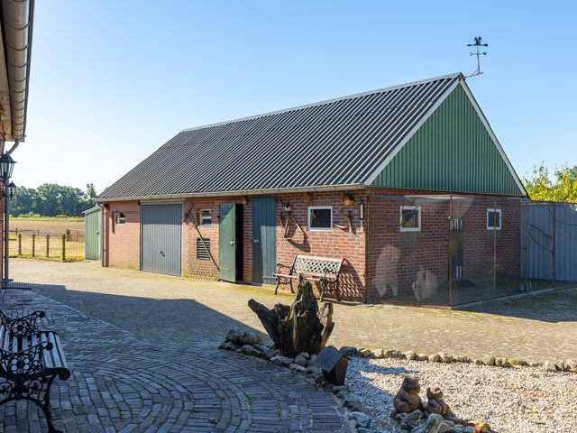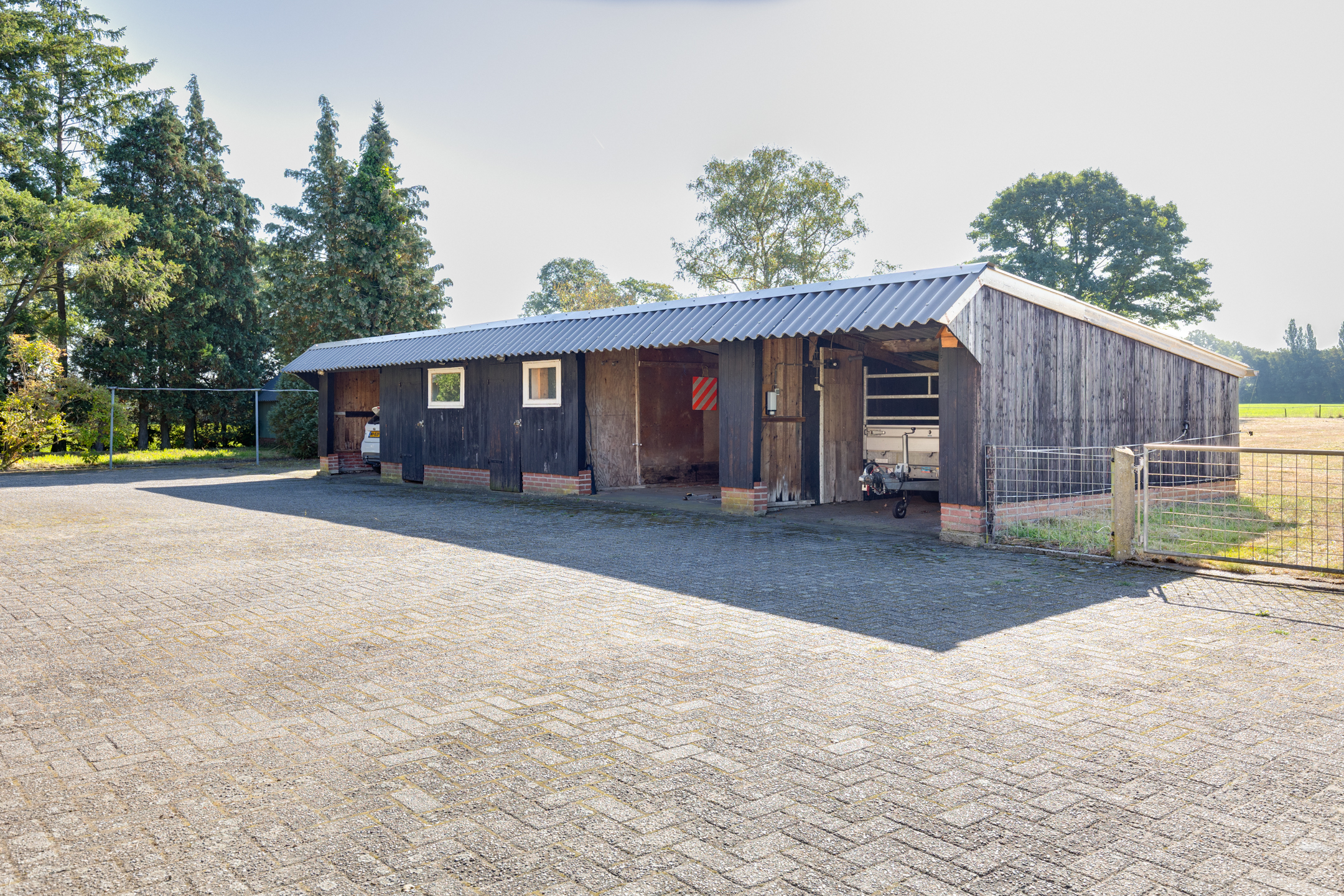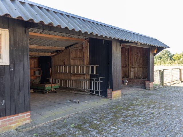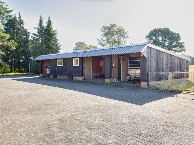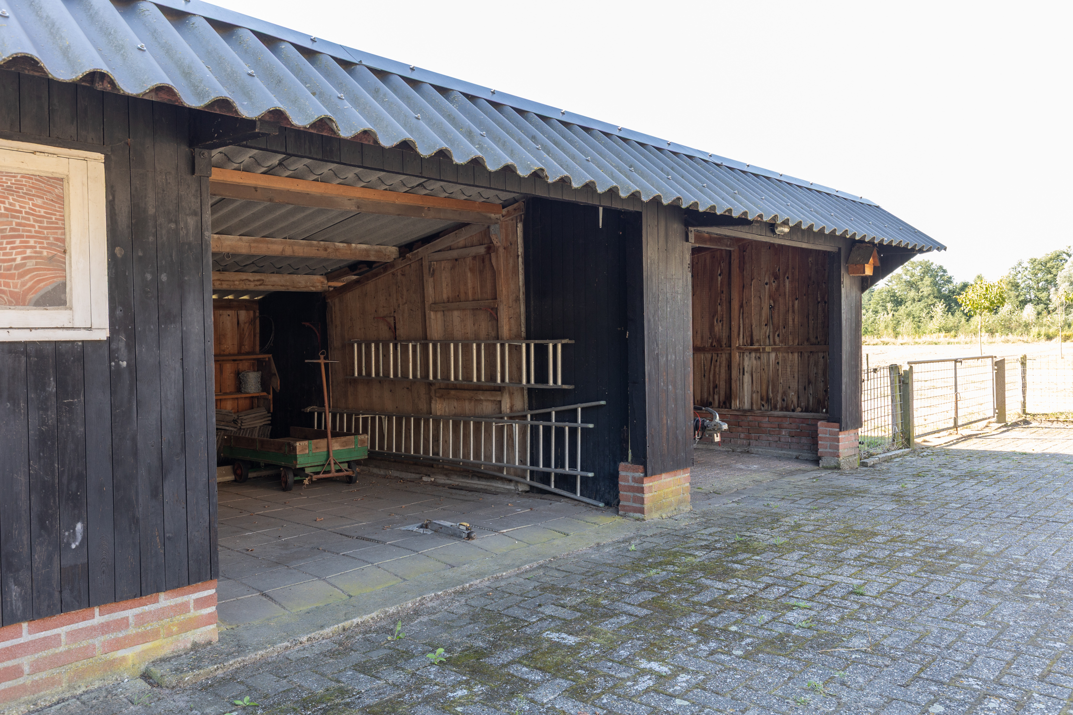 Verderop op het perceel, in het bijbehorende stukje wei, is een grote houten kapschuur/karloods aanwezig met een hoogte van 4 meter.