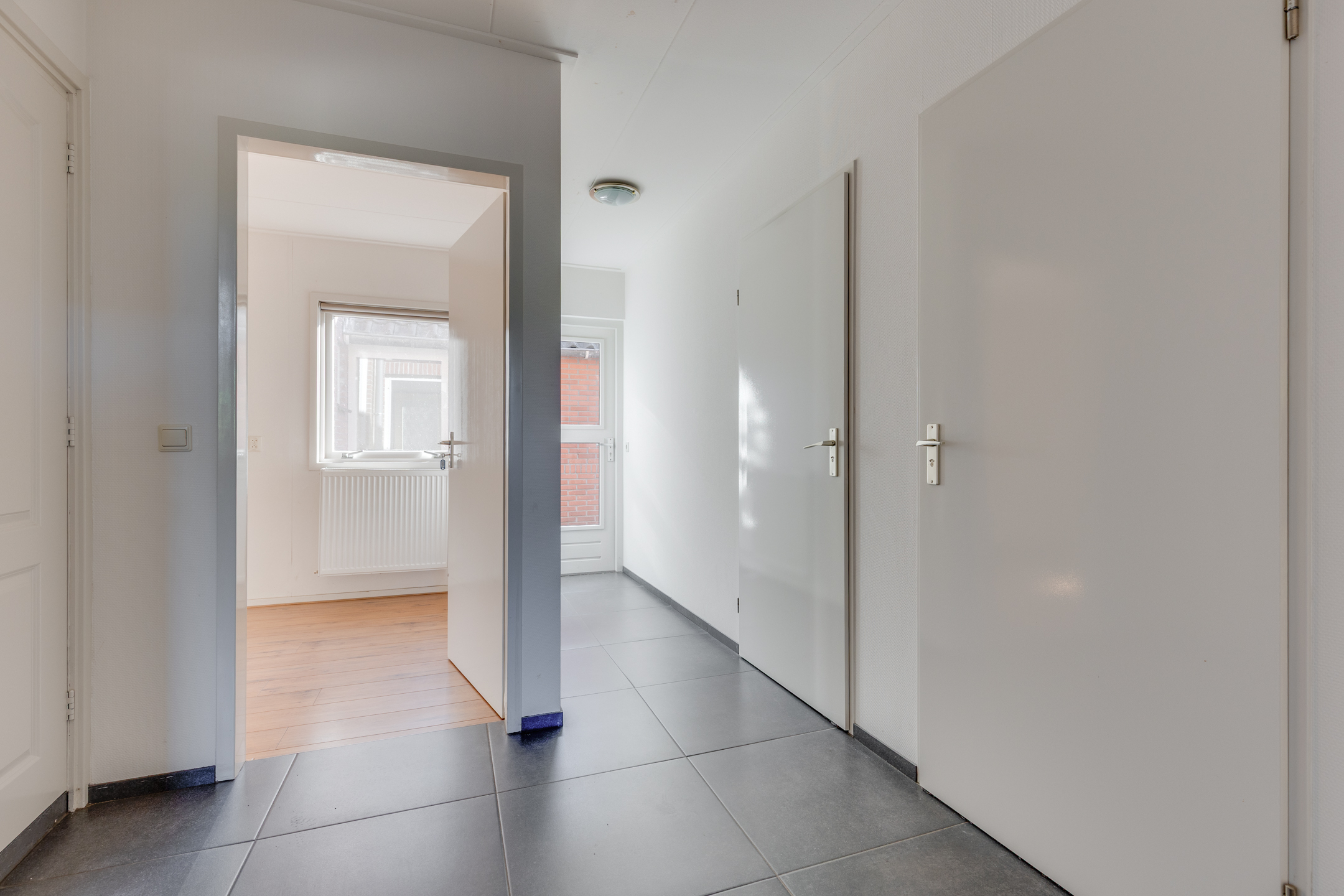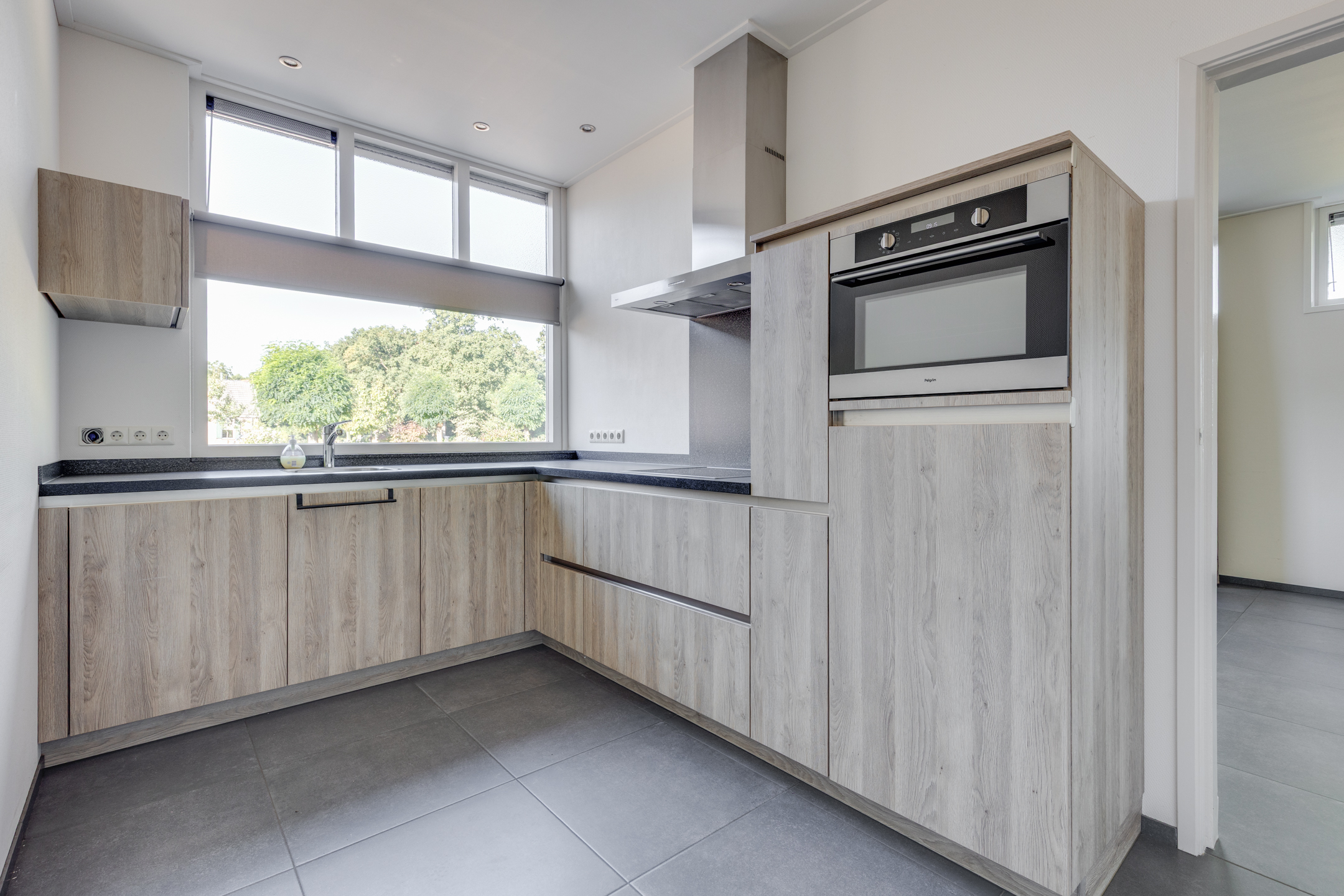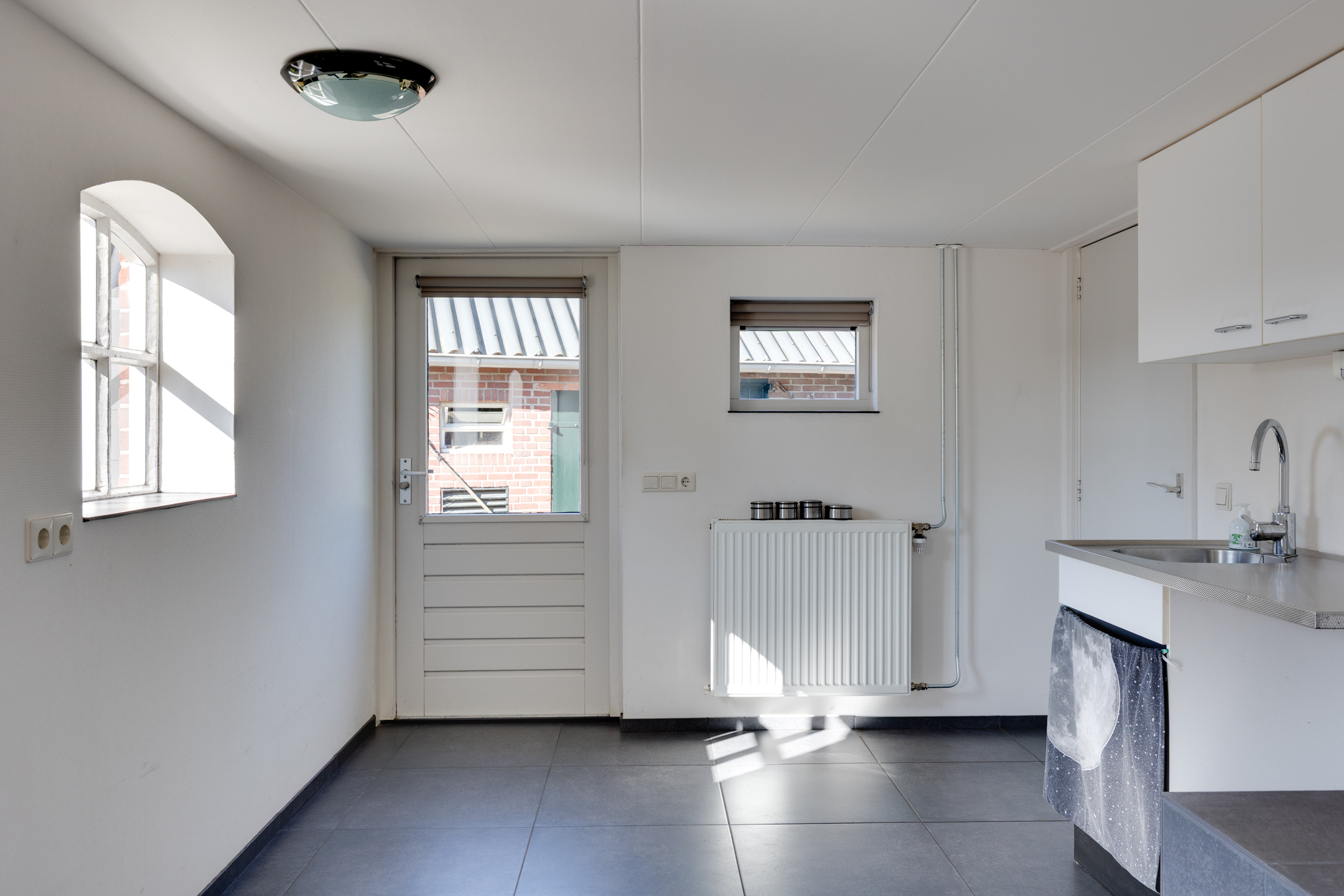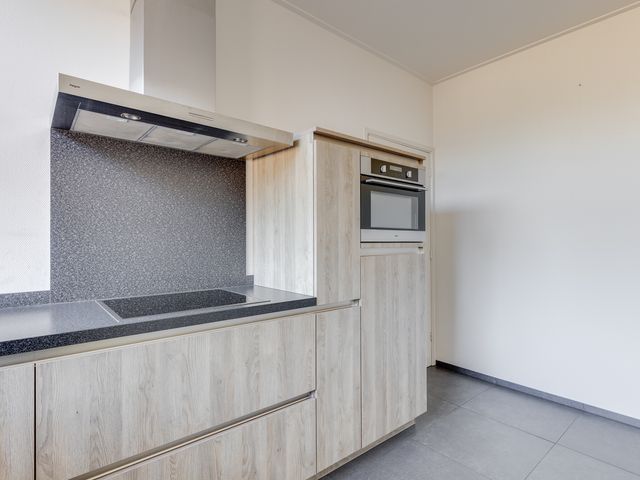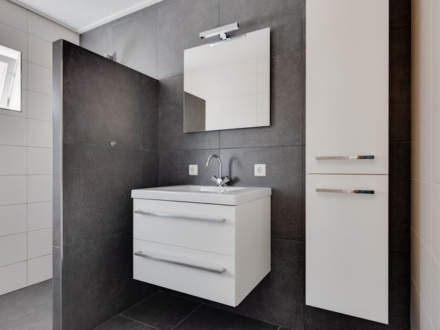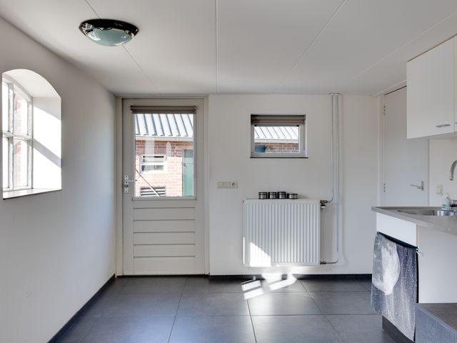 De toiletruimte is modern ingericht en voorzien van wandcloset, urinoir en fonteintje. De naastgelegen badkamer is vernieuwd in 2015 en voorzien van een inloopdouche, wastafelmeubel en kast en net als de toiletruimte in moderne kleurstelling uitgevoerd. Tegenover de sanitaire ruimtes bevindt zich de slaapkamer welke is voorzien van een praktische inbouwkast. Aan de rechterzijde van centrale hal is er toegang tot de keuken. De keuken is eveneens in 2015 vernieuw en voorzien van een inbouwkeuken in L-opstelling met diverse inbouwapparatuur.