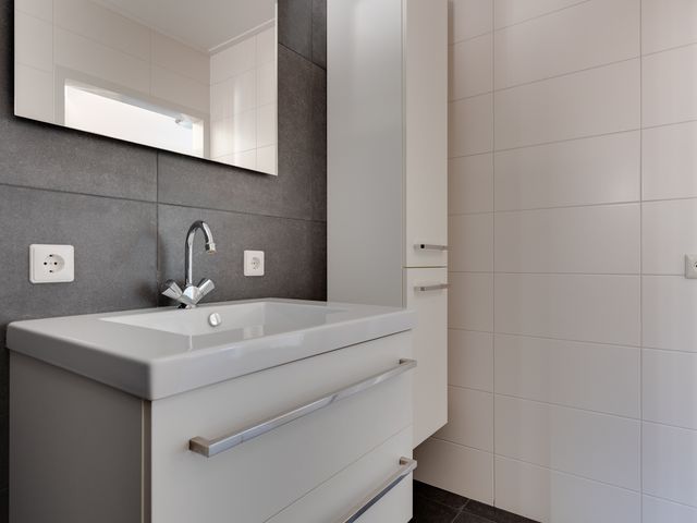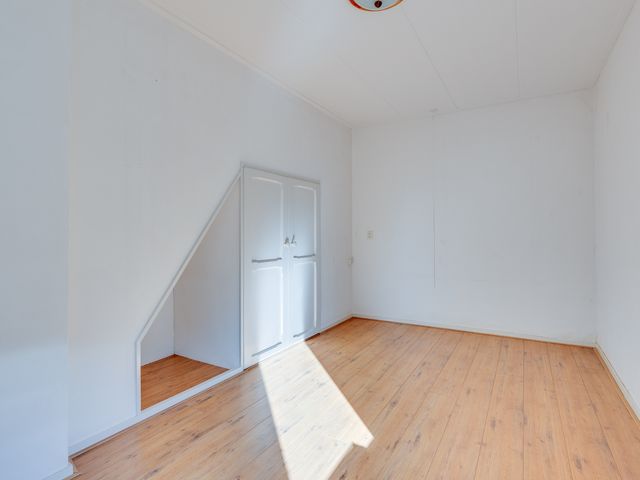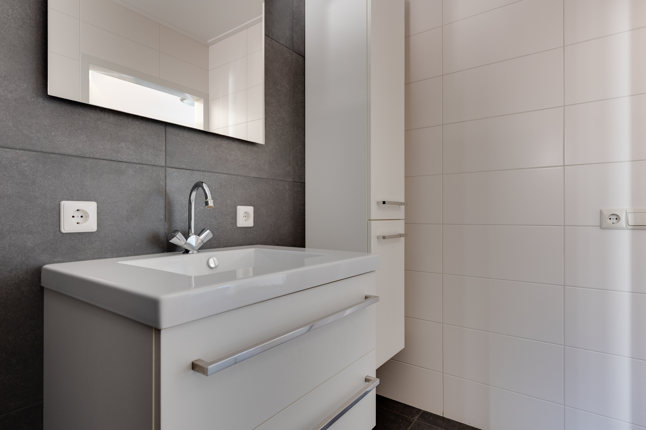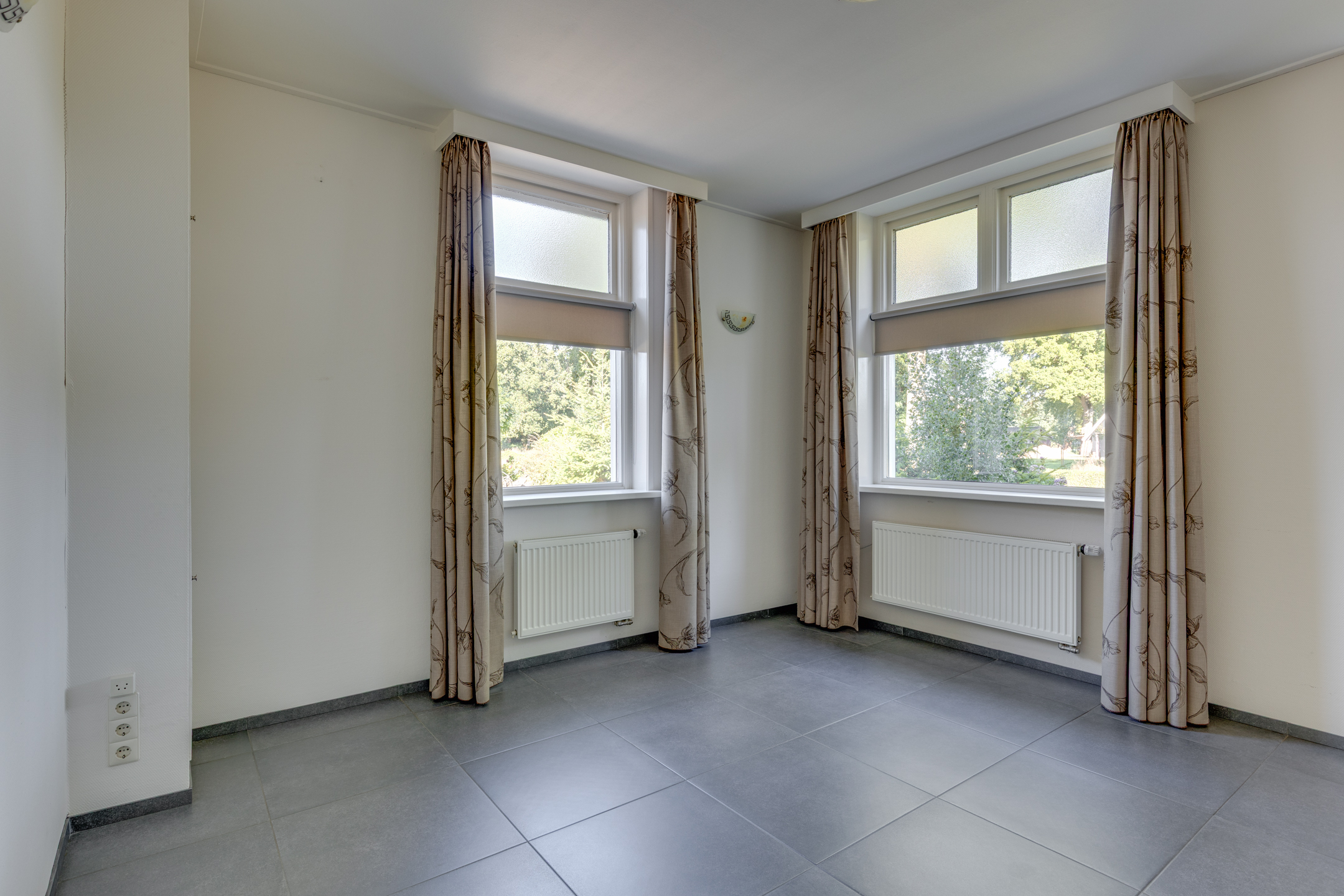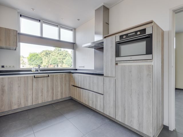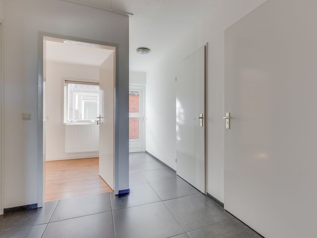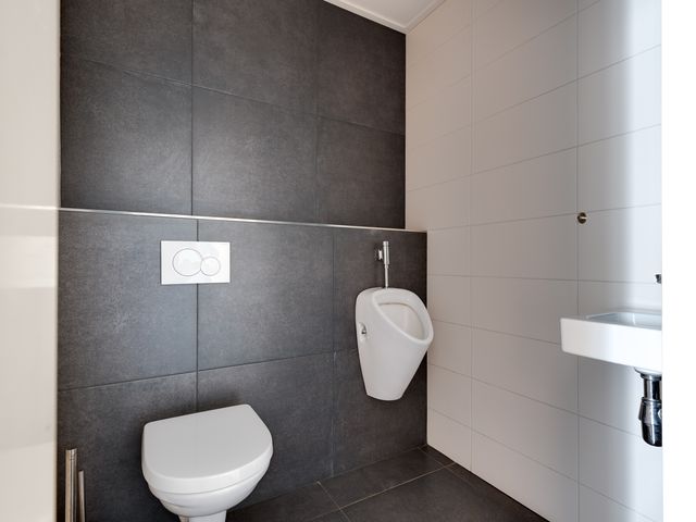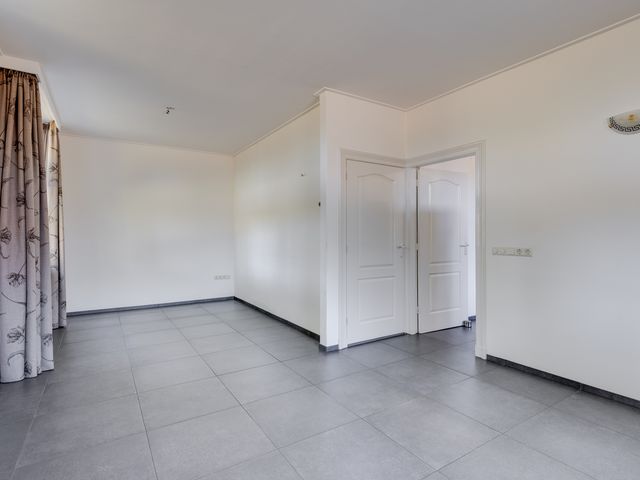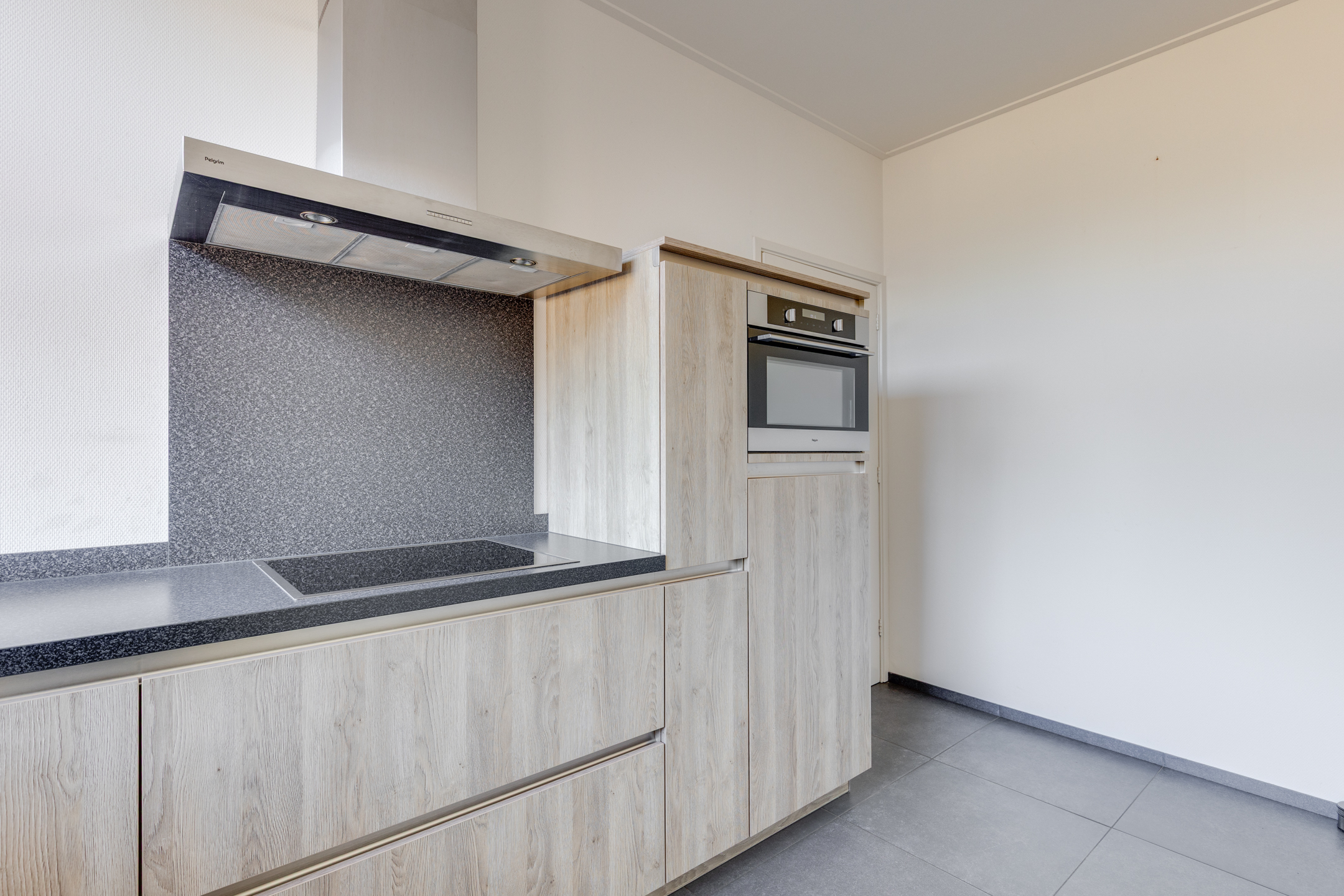 De toiletruimte is modern ingericht en voorzien van wandcloset, urinoir en fonteintje. De naastgelegen badkamer is vernieuwd in 2015 en voorzien van een inloopdouche, wastafelmeubel en kast en net als de toiletruimte in moderne kleurstelling uitgevoerd. Tegenover de sanitaire ruimtes bevindt zich de slaapkamer welke is voorzien van een praktische inbouwkast. Aan de rechterzijde van centrale hal is er toegang tot de keuken. De keuken is eveneens in 2015 vernieuw en voorzien van een inbouwkeuken in L-opstelling met diverse inbouwapparatuur.
