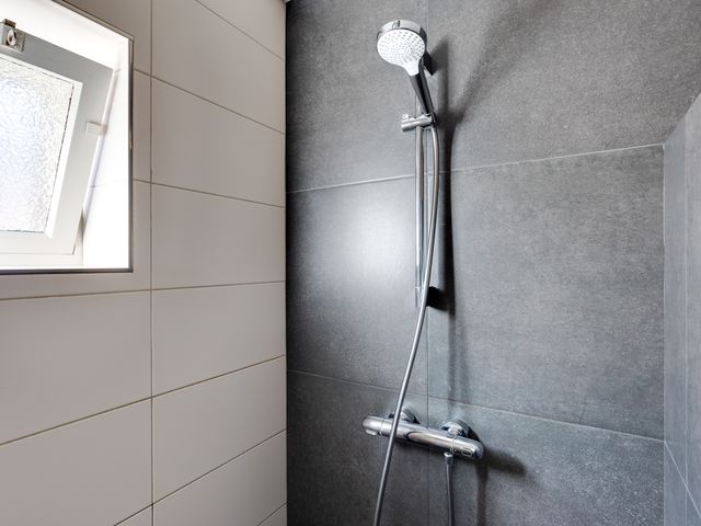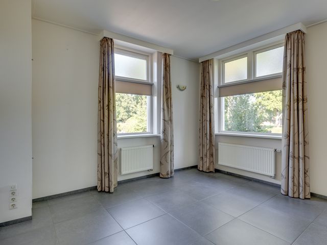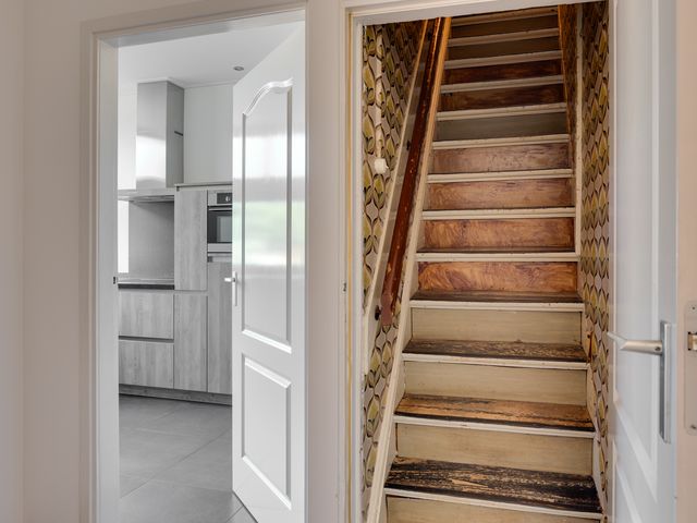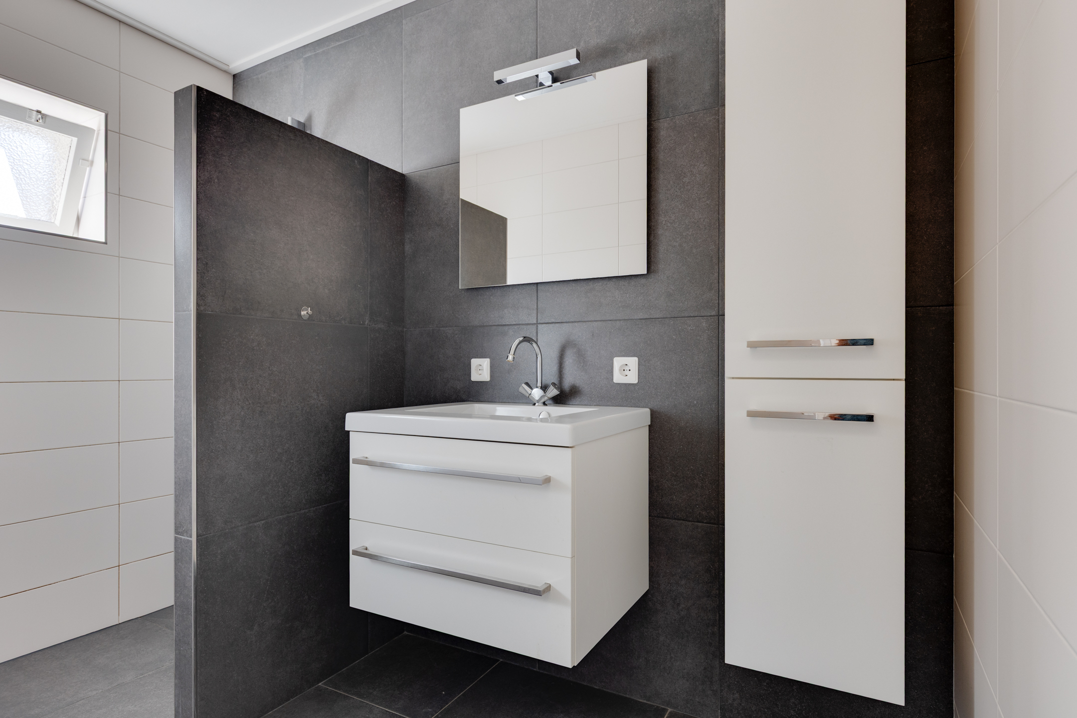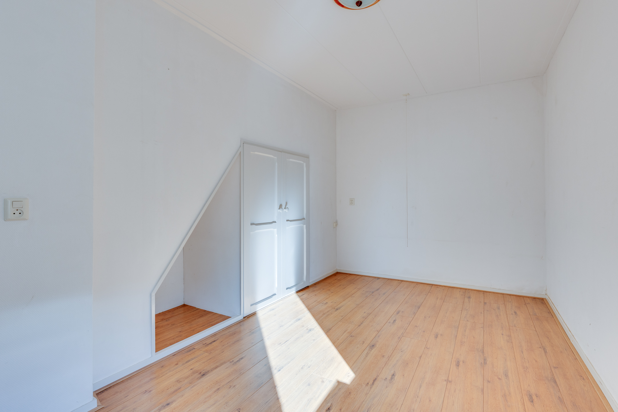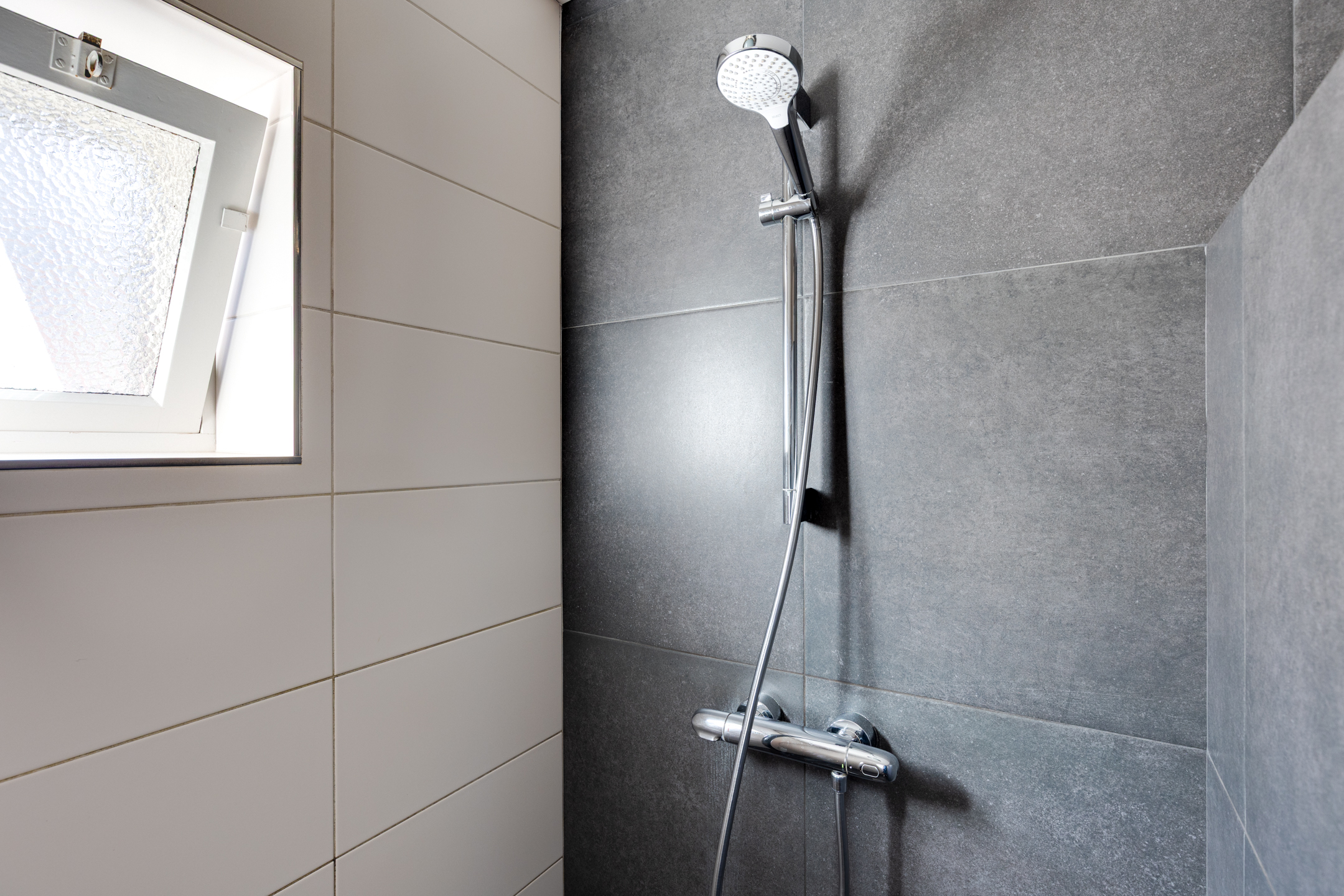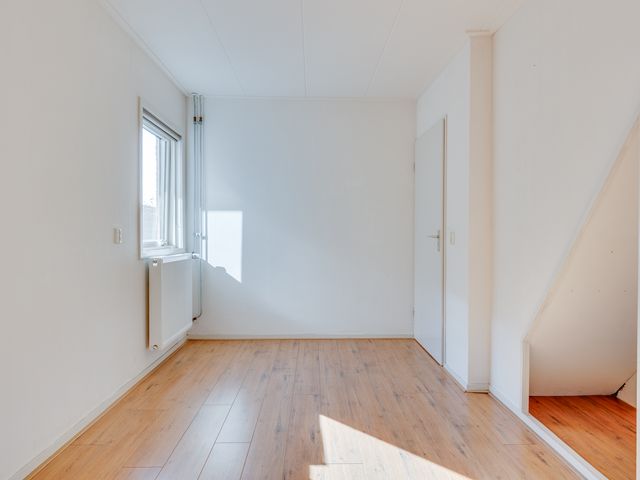 De toiletruimte is modern ingericht en voorzien van wandcloset, urinoir en fonteintje. De naastgelegen badkamer is vernieuwd in 2015 en voorzien van een inloopdouche, wastafelmeubel en kast en net als de toiletruimte in moderne kleurstelling uitgevoerd. Tegenover de sanitaire ruimtes bevindt zich de slaapkamer welke is voorzien van een praktische inbouwkast. Aan de rechterzijde van centrale hal is er toegang tot de keuken. De keuken is eveneens in 2015 vernieuw en voorzien van een inbouwkeuken in L-opstelling met diverse inbouwapparatuur.
