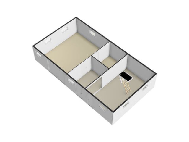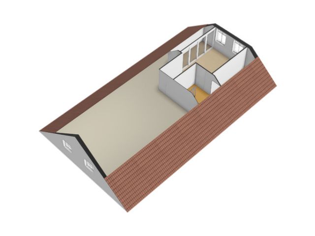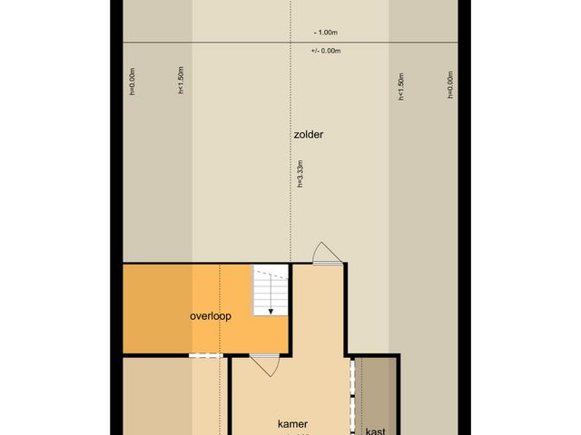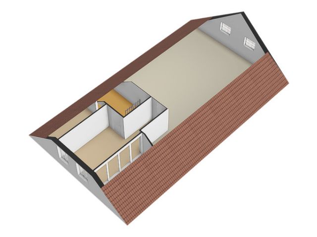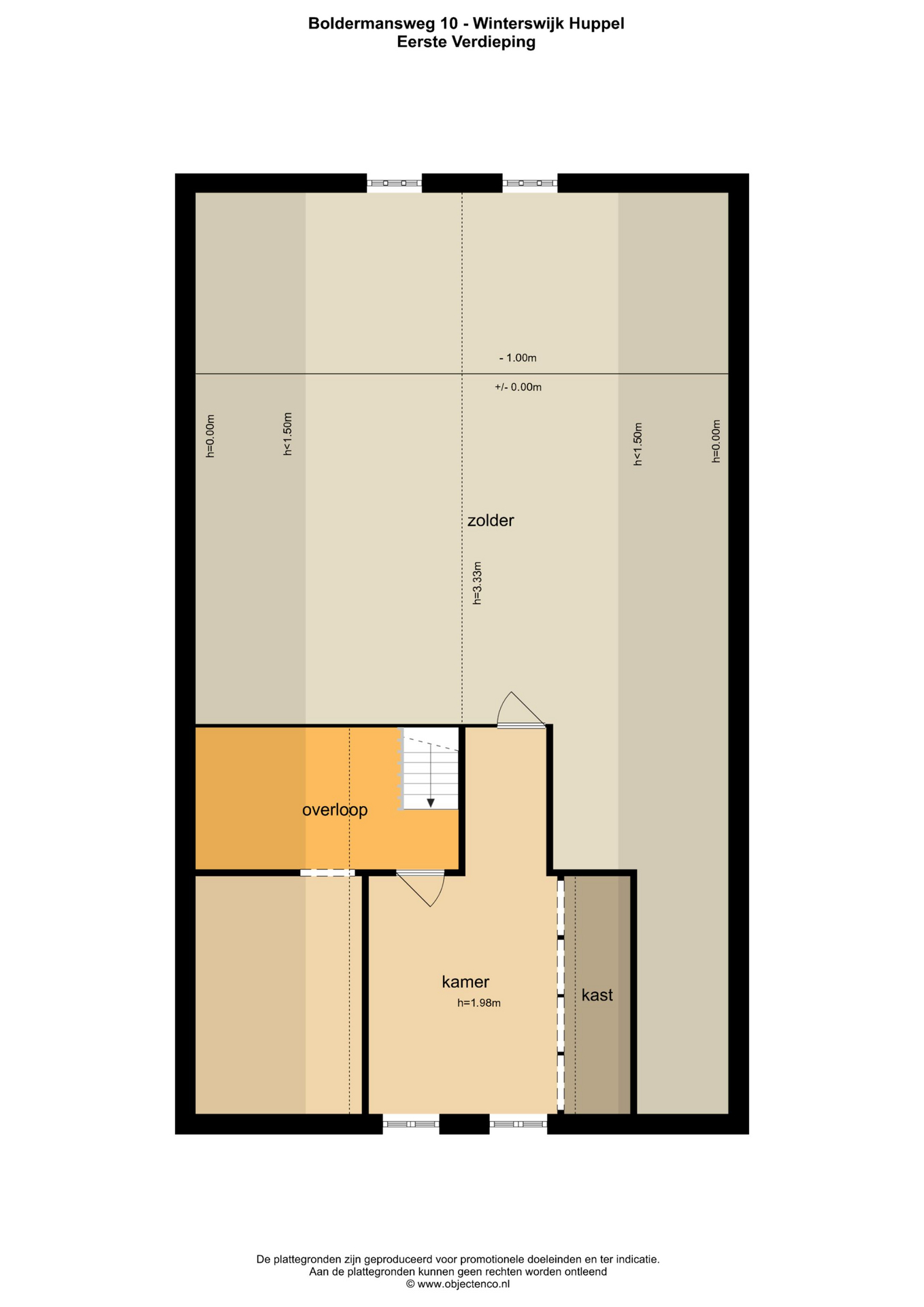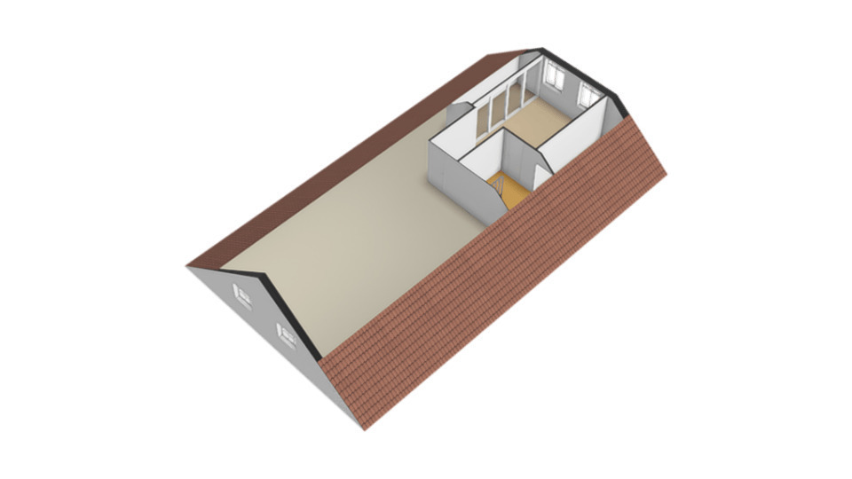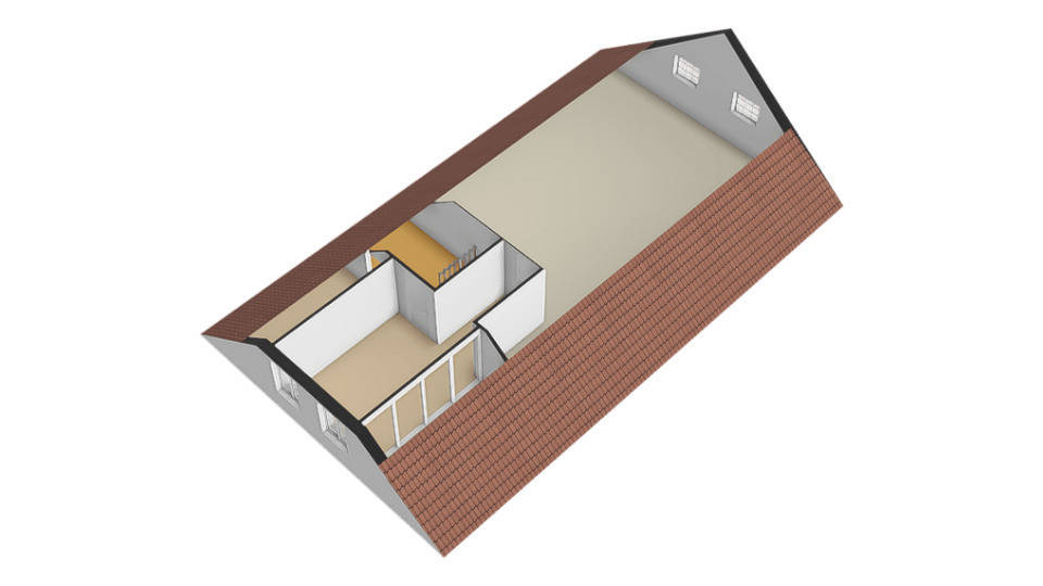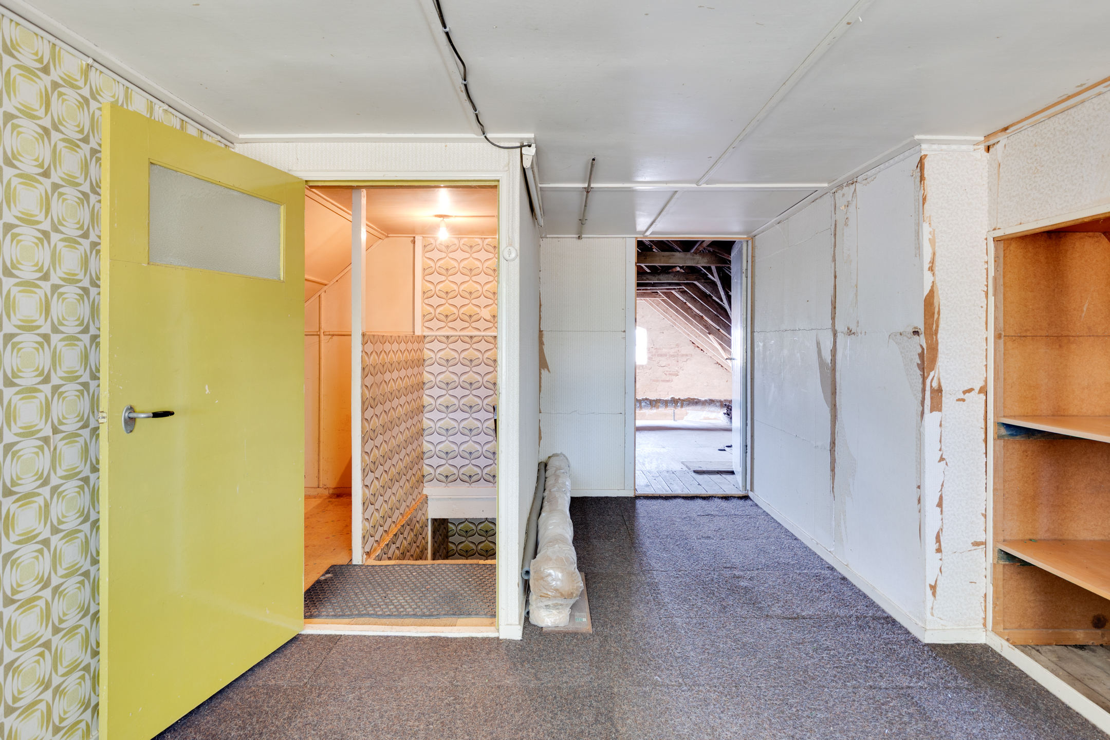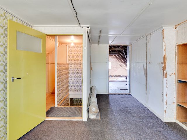 Eerste verdieping: Via de trapopgang in de centrale hal bereikt u de overloop. Op deze verdieping bevindt zich een slaap-/hobbykamer en bergruimte is er voldoende ruimte voor het realiseren van meerdere (slaap)kamers.
