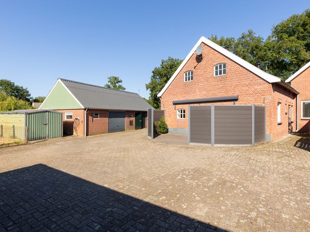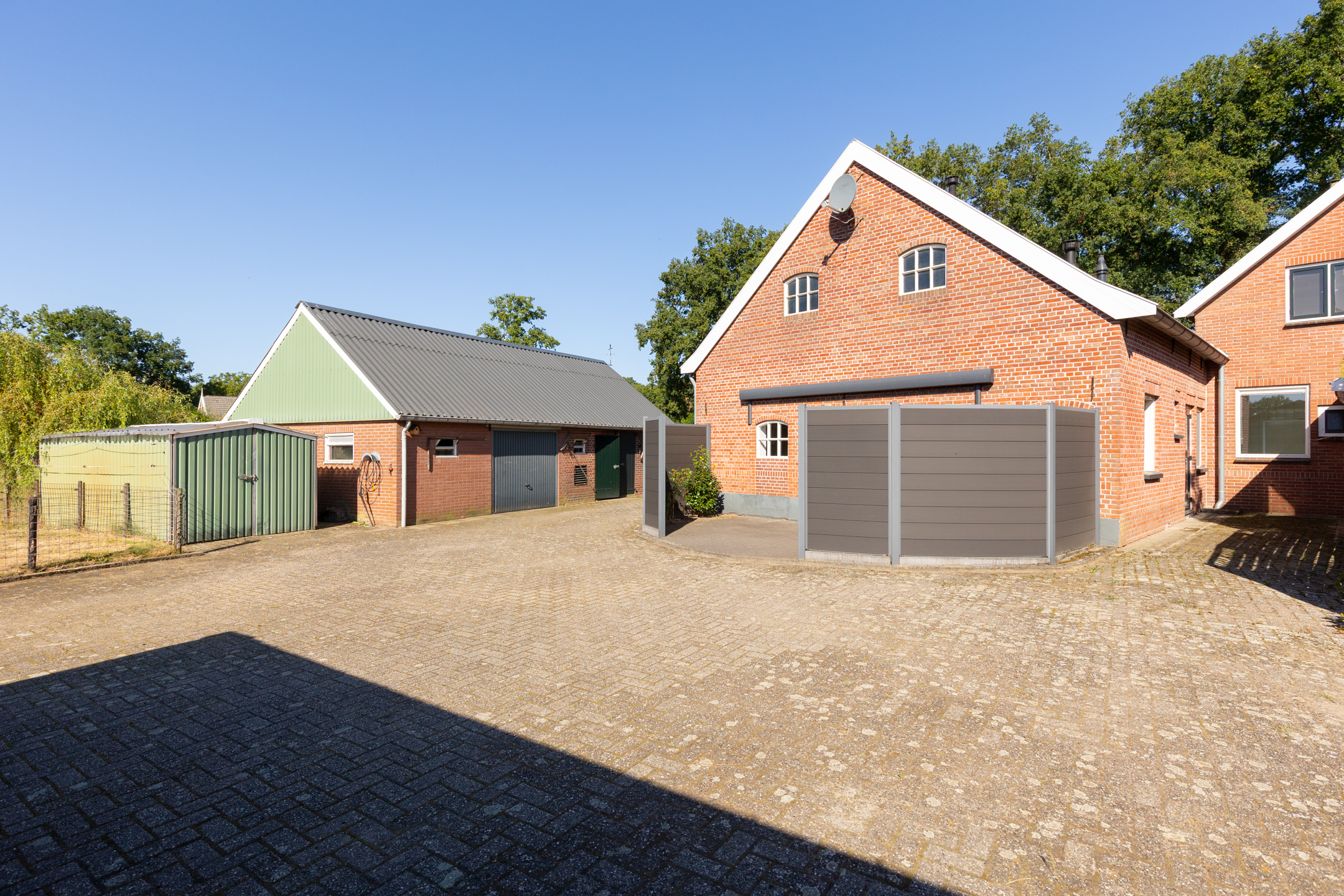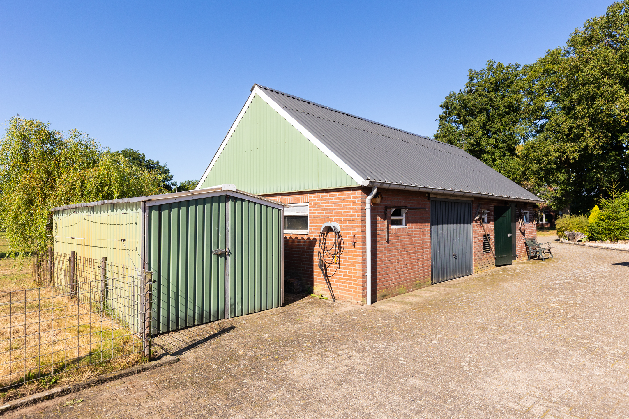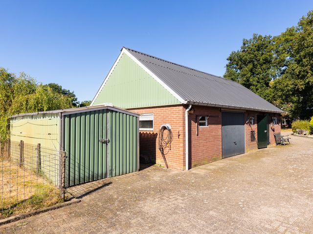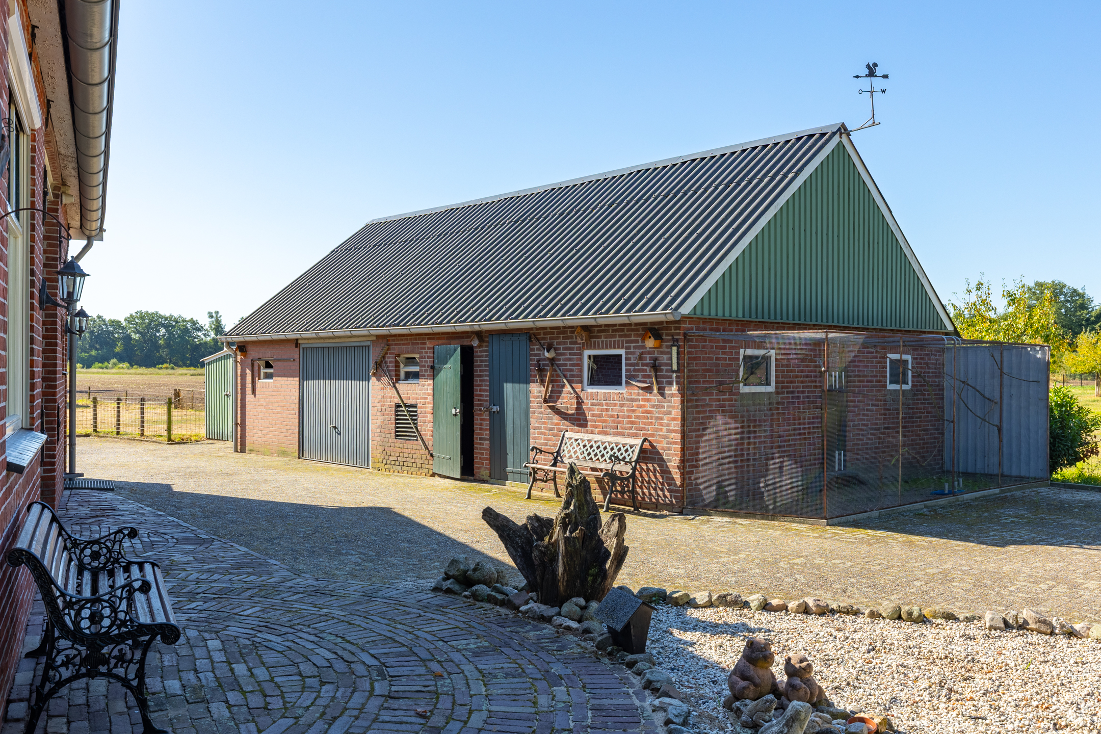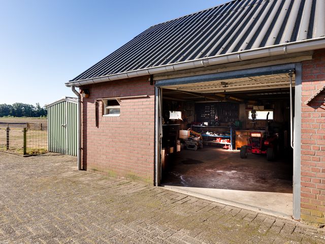 Op het bijbehorende perceel zijn meerdere bijgebouwen aanwezig waaronder een vrijstaande stenen schuur met kanteldeur, thans in gebruik als werkplaats en garage voor (kleine) voertuigen. De schuur is voorzien van elektra en een vliering.