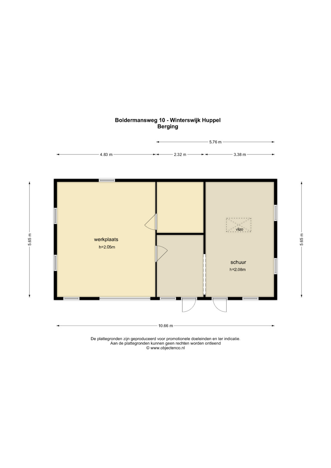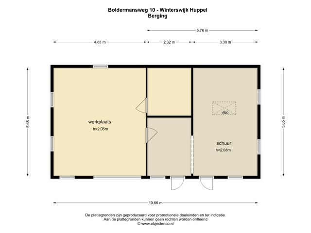 Ook is een gedeelde (samen met nr. 12) vrijstaande houten kapschuur aanwezig. Twee carports van deze kapschuur behoren bij nr. 10.