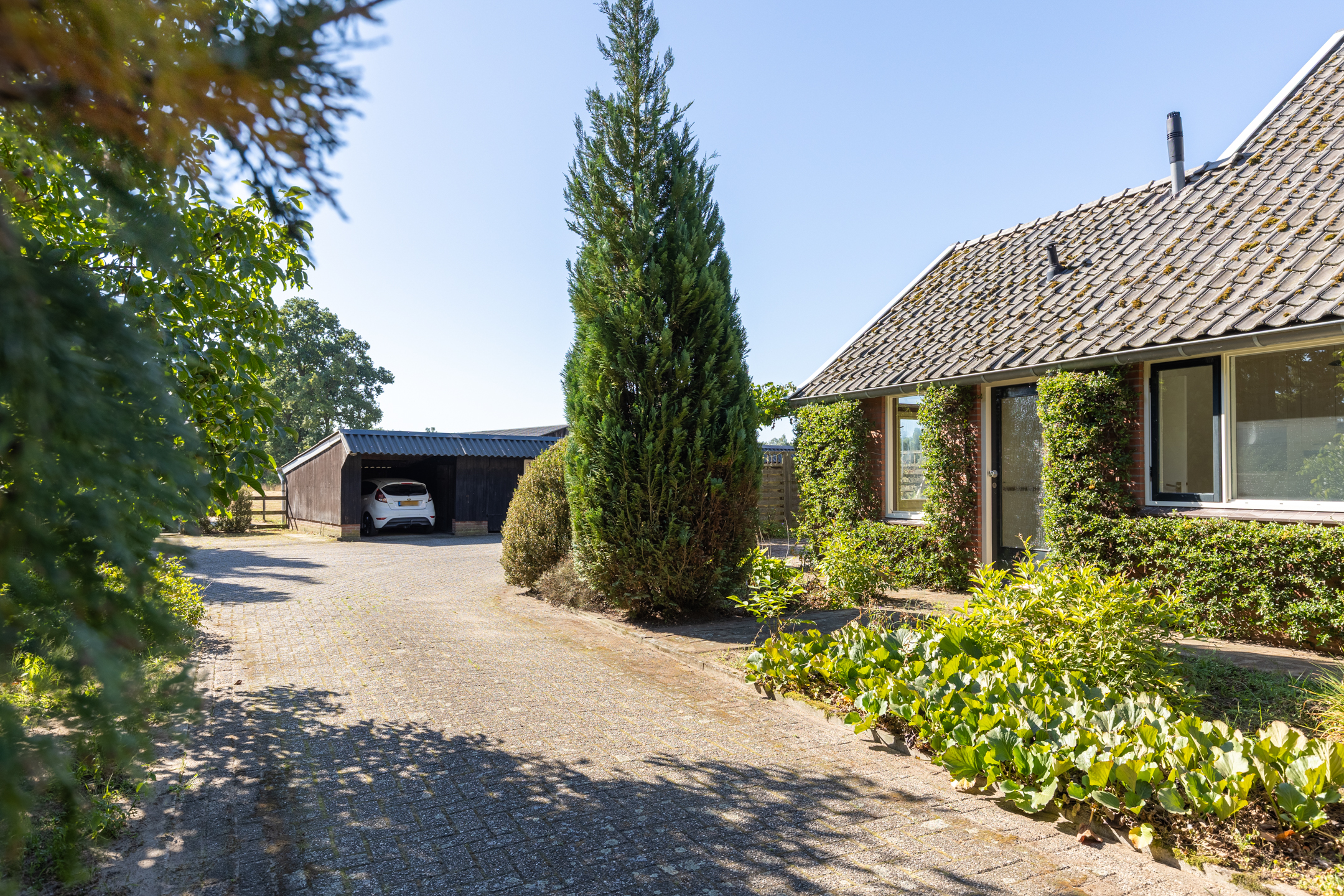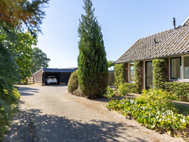 HELFT VAN DUBBEL WOONHUIS op een ruim perceel van 2.265 m² in het buitengebied van Winterswijk. De woning beschikt over een slaap- en badkamer op de begane grond en twee slaapkamers boven. Op het erf vindt u diverse bijgebouwen, waaronder een houten schuur (v.m. schapenstal) met aangebouwde opslagruimte, paardenstalling met paddock en carport met 2 aangrenzende bergruimtes.