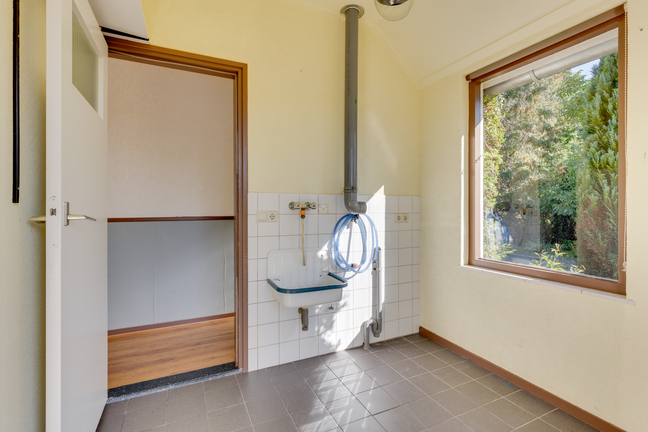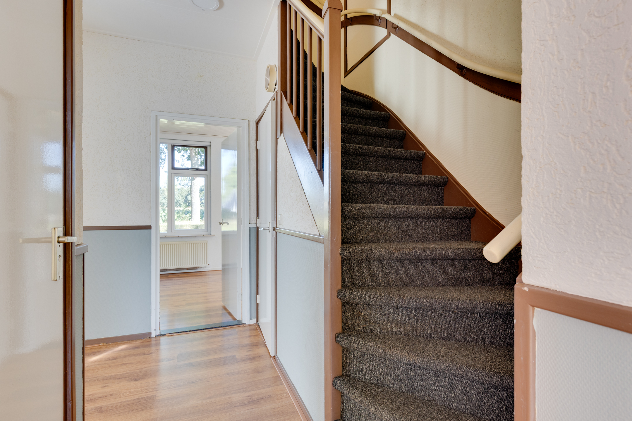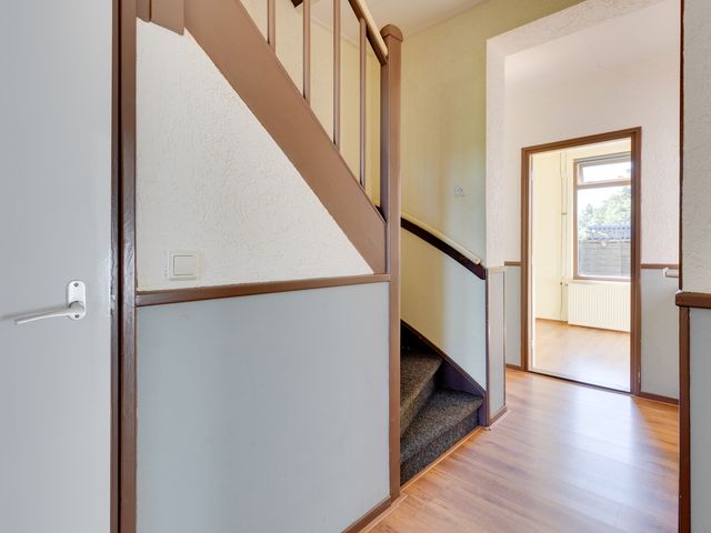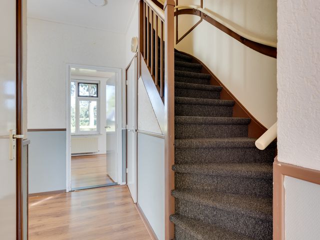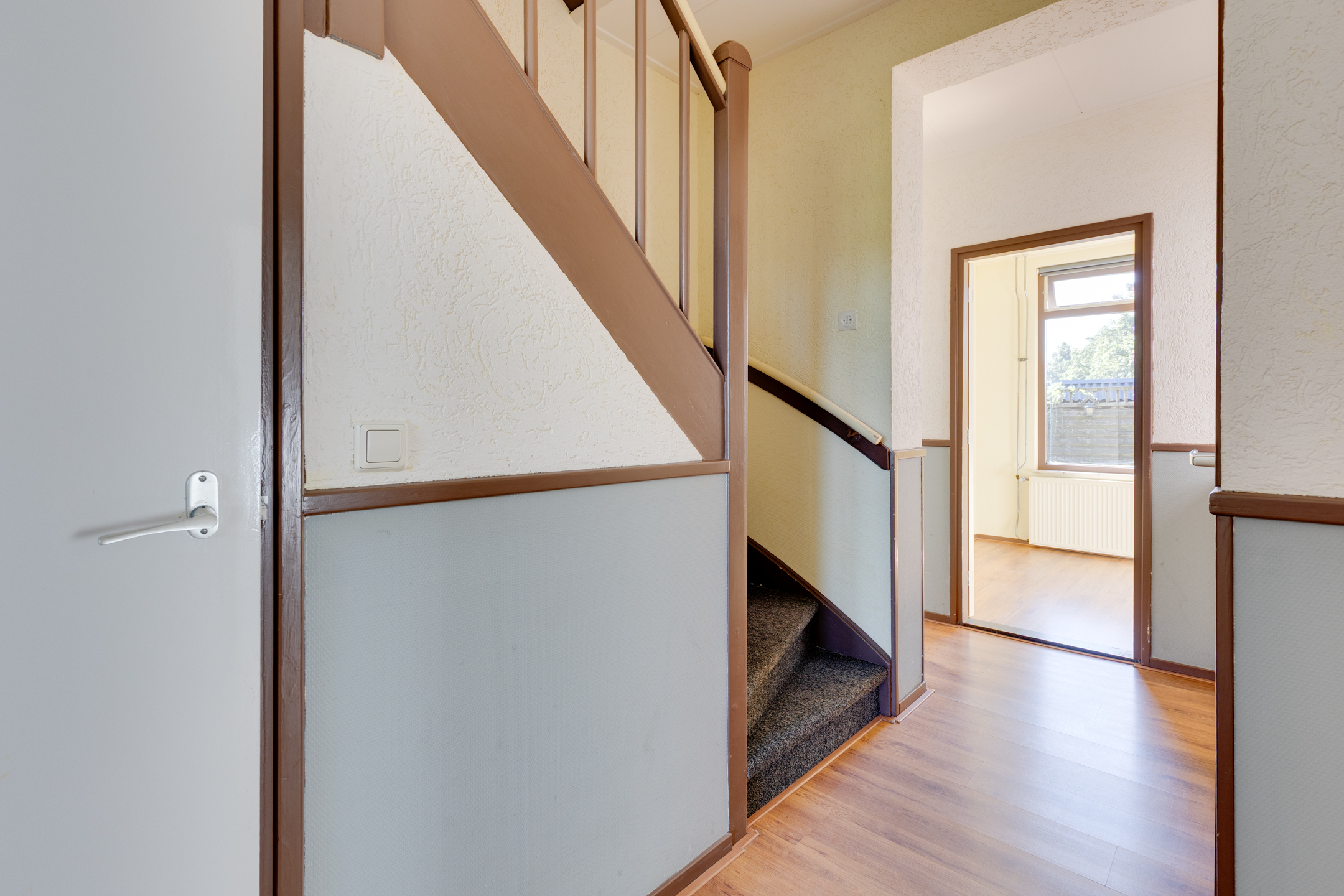 Onder de trapopgang is een praktische inbouwkast gerealiseerd en hier bevindt zich ook de meterkast.