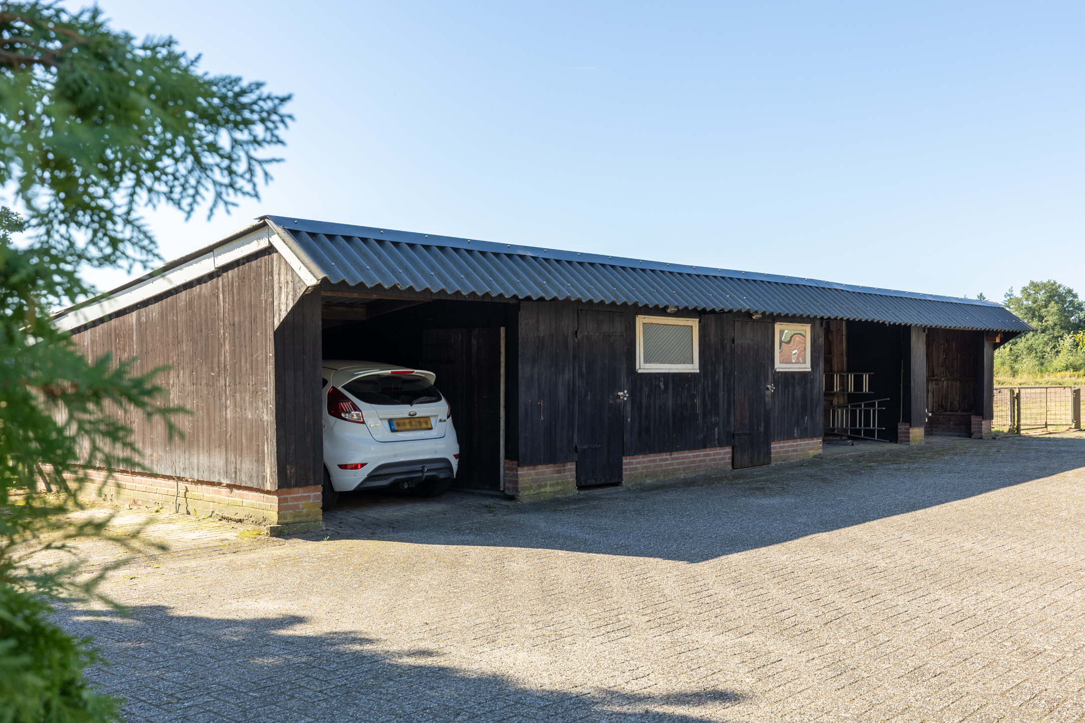 - Ruim perceel met o.a. paardenstalling, houten schuur en opslag voor hooi e.d. en paddock, ideaal voor het houden van hobbydieren.