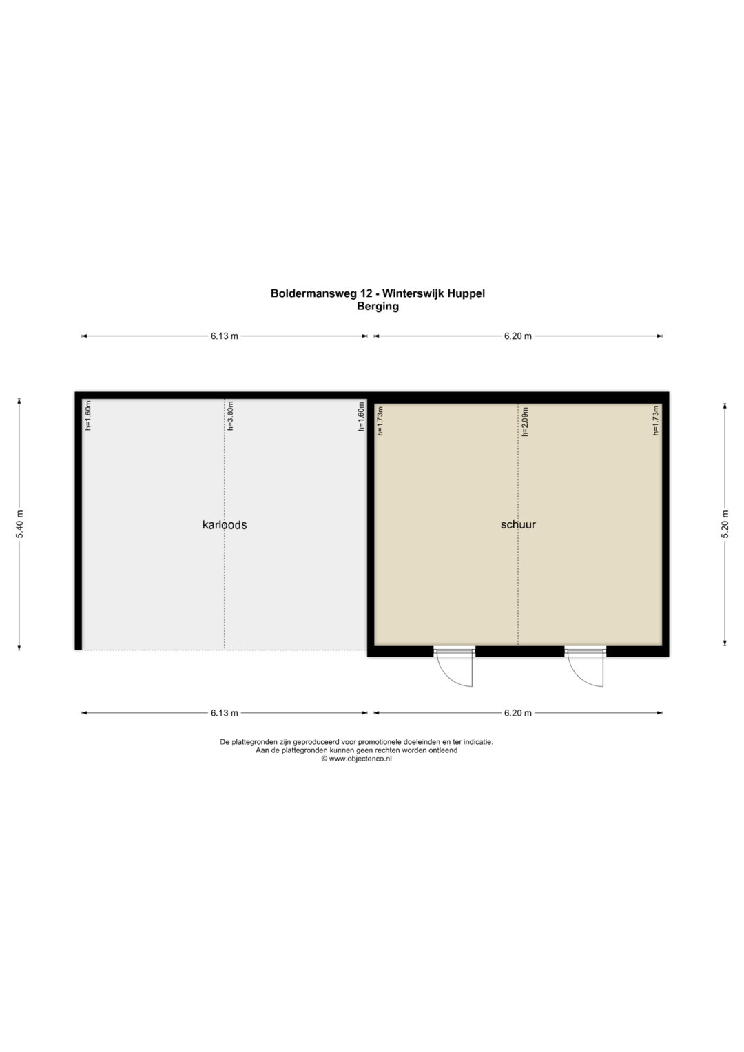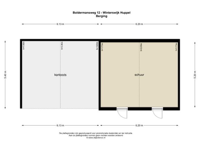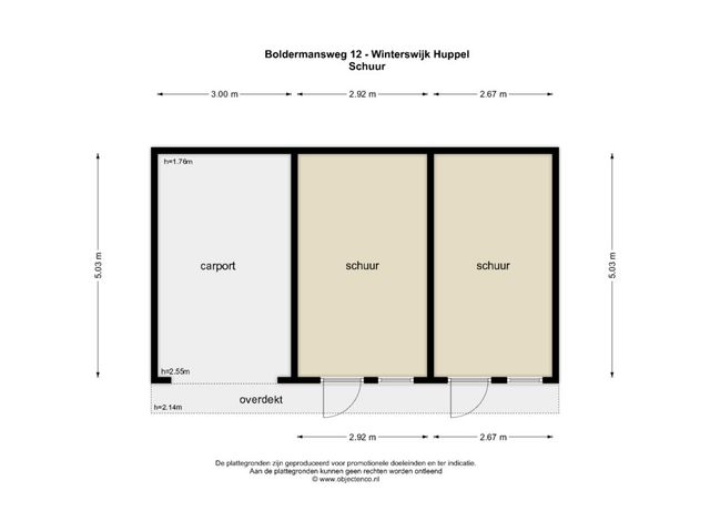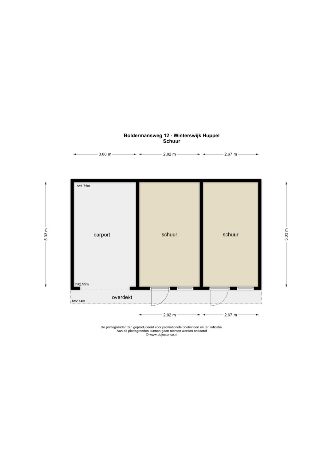 Ook is een gedeelde (met nr. 10) vrijstaande houten kapschuur aanwezig waarvan één carport en twee opbergruimtes bij Boldermansweg 12 behoren.