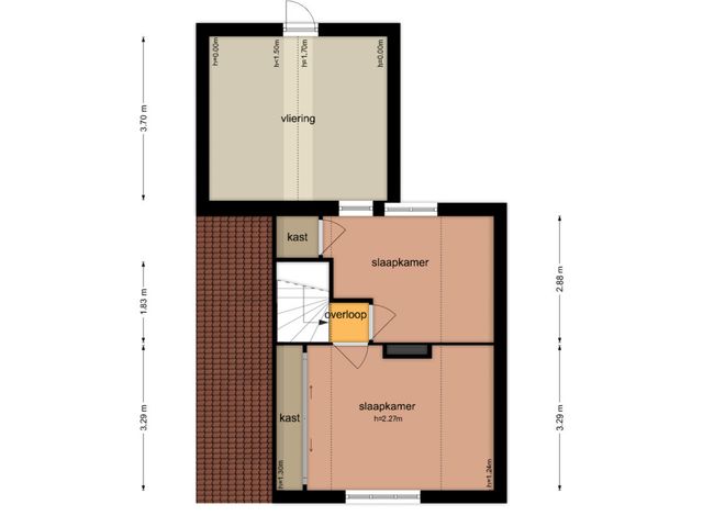 Boven de bijkeuken en slaapkamer aan de achterzijde van de woning bevindt zich een vliering.