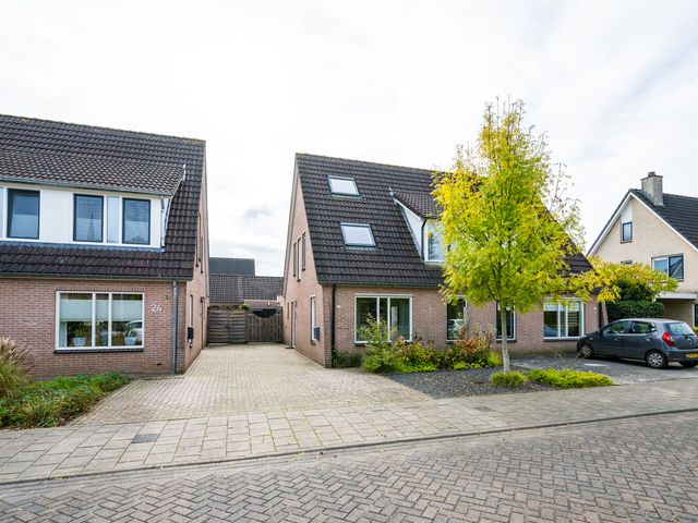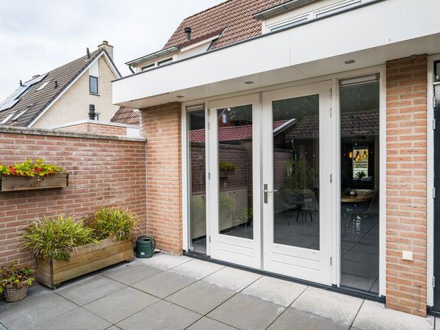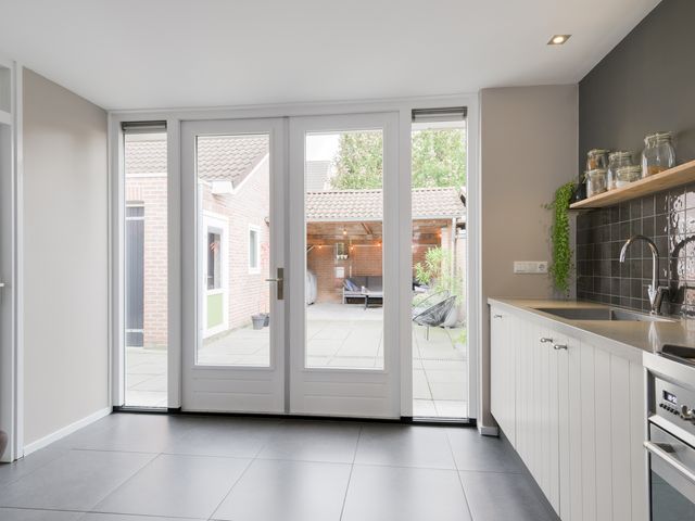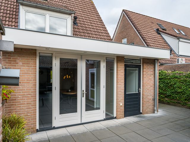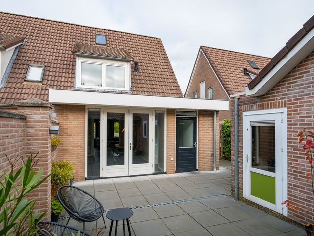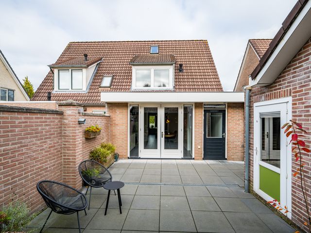 Deze degelijk gebouwde en goed onderhouden woning is gelegen in een fijne woonwijk. De uitbouw aan de achterzijde biedt extra ruimte op de begane grond, waardoor er een fijne woonkeuken is ontstaan die middels een schuifdeuren is verbonden met de woonkamer. De grote garage/hobbyruimte biedt veel ruimte voor bijvoorbeeld de doe-het-zelver of voor het stallen van kleine voertuigen. De onderhoudsvriendelijke achtertuin met overdekt terras is gelegen op het zuiden en middels een houten poort bereikbaar.