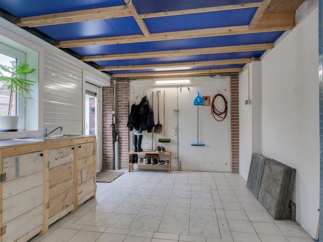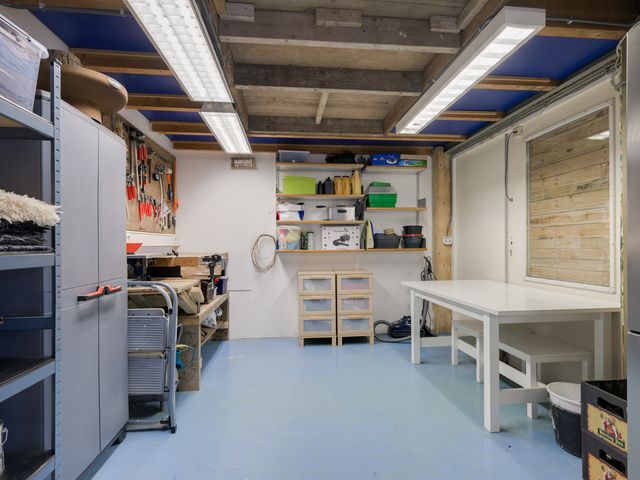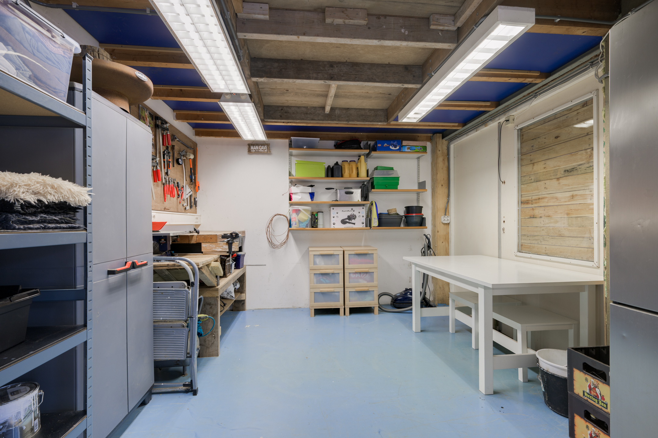 De berging/hobbyruimte is zo’n 7 meter diep en heeft dubbele deuren aan de voorzijde, een deur naar de tuin en een praktische bergzolder. Ideaal als werkplaats/hobbyruimte.