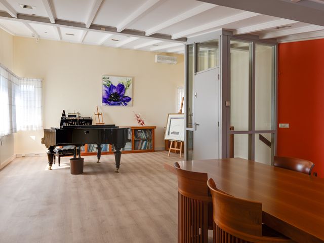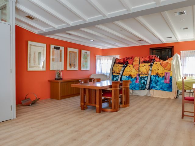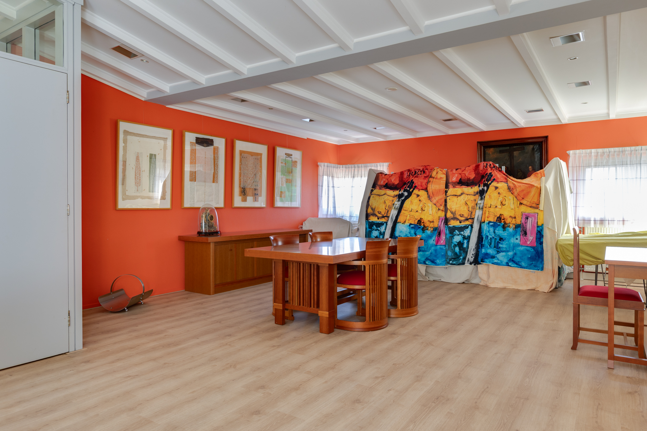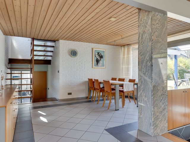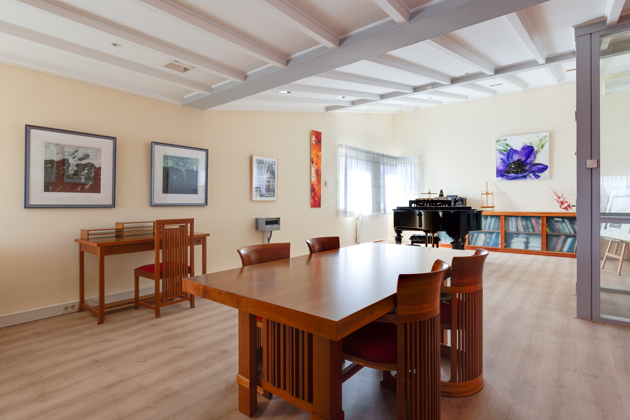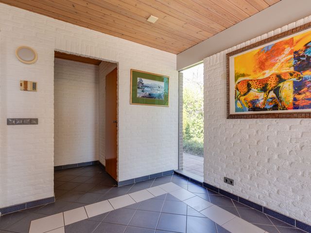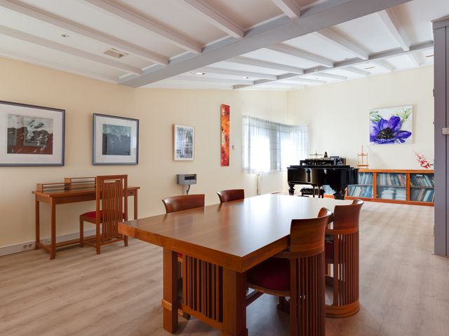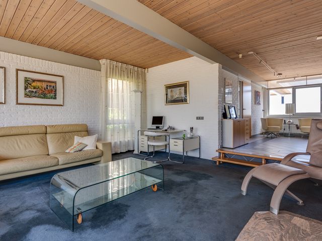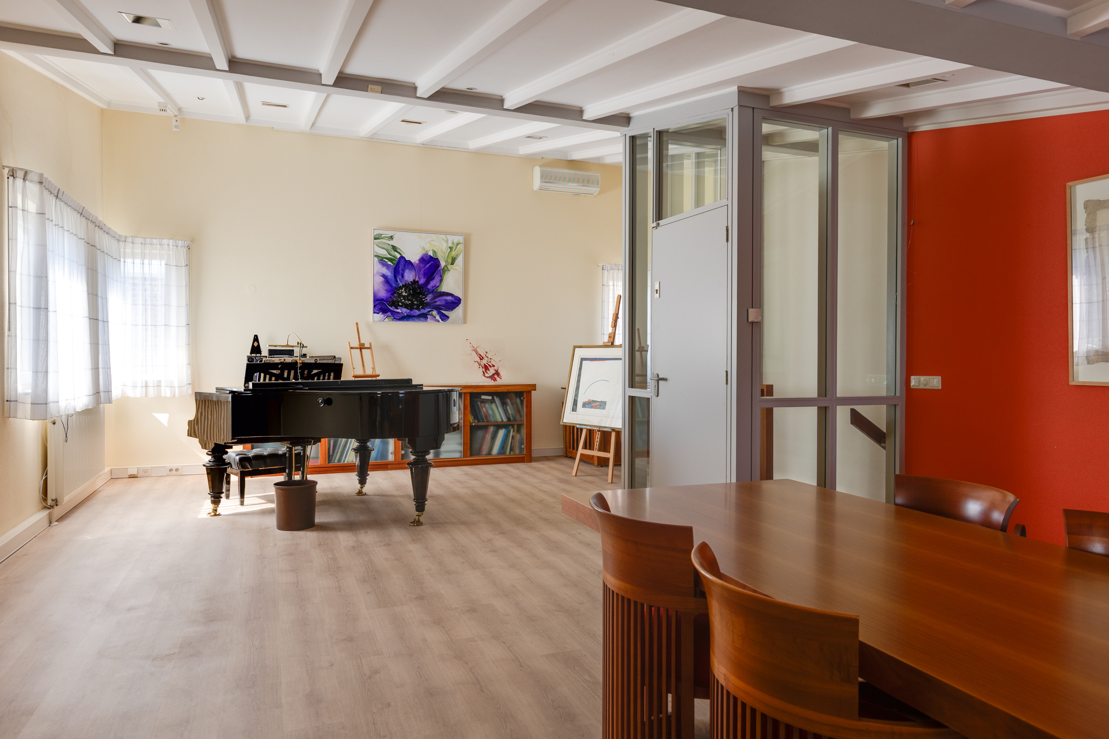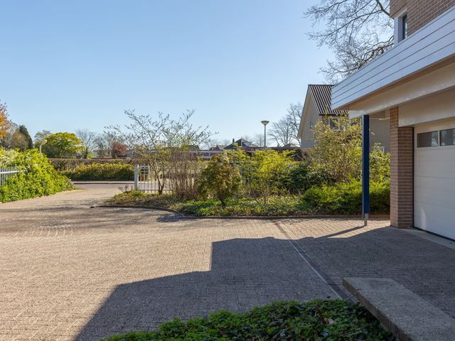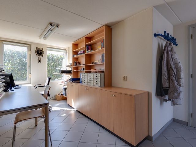 Een woning met zeer veel mogelijkheden voor werken aan huis. Het perceel biedt een royale oprit met ruimte voor meerdere auto’s. De kantoorruimte is via een eigen ingang bereikbaar. Het grote atelier bevindt zich boven de garage en het kantoor en is via de trapopgang in de kantoorruimte toegankelijk.