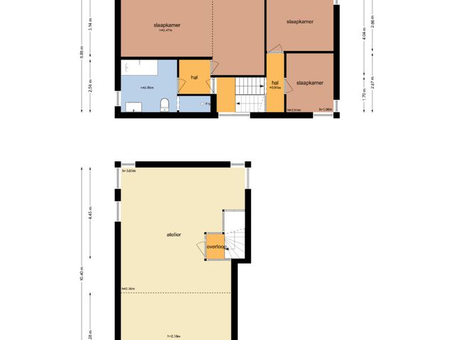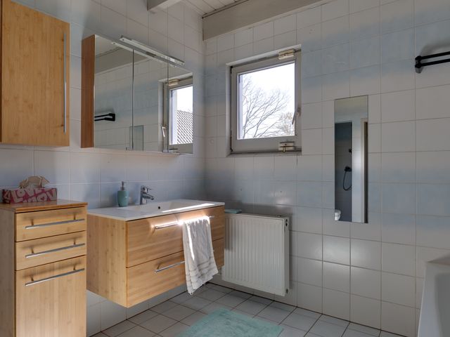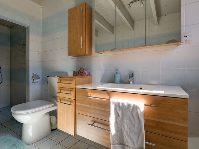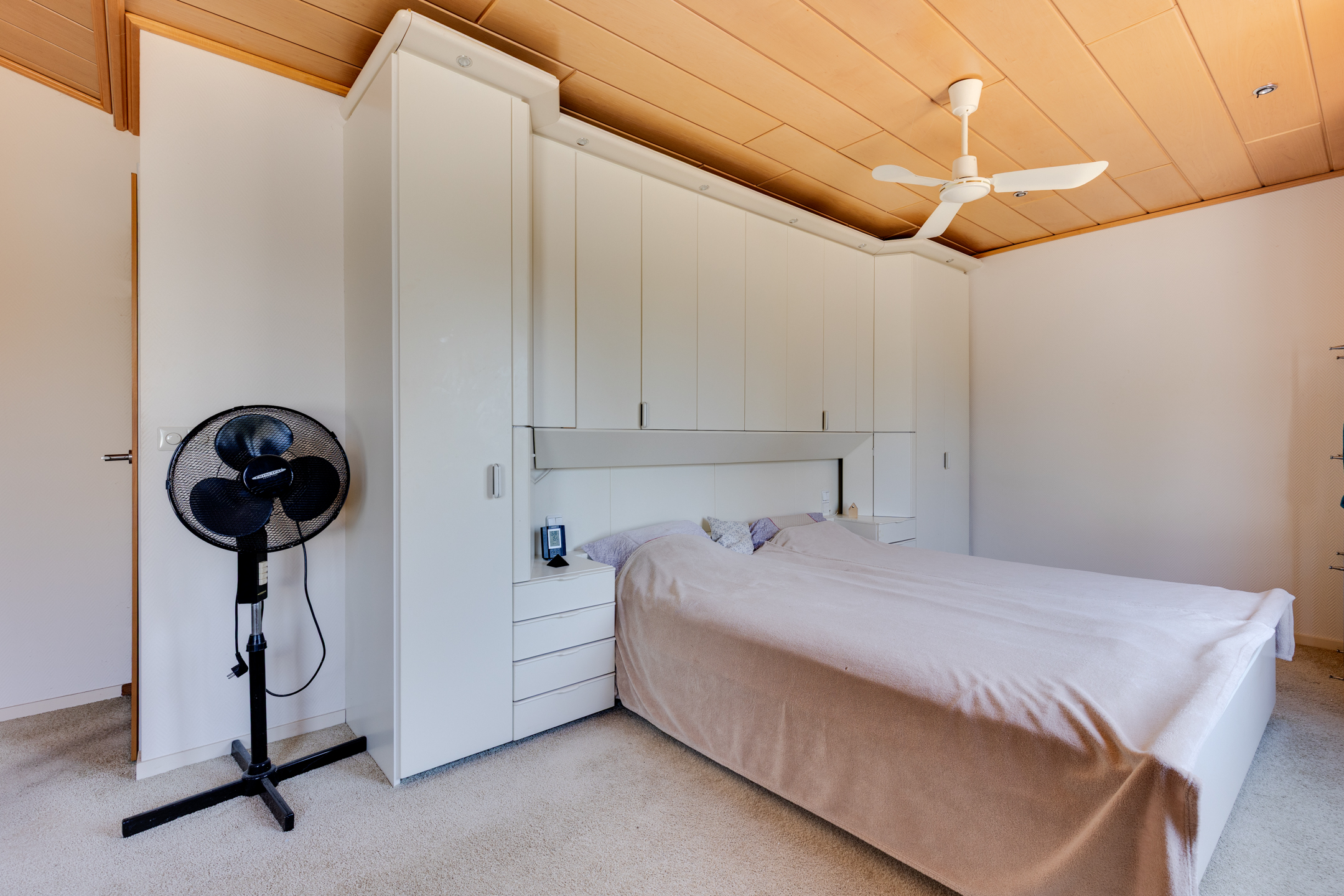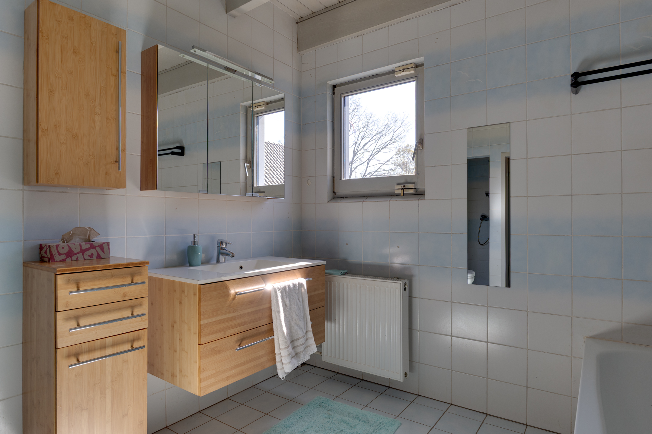 De woonruimte beschikt over 3 slaapkamers. Via de trapopgang bereikt u de overloop met aan weerszijden een portaaltje. Aan de rechterzijde is er toegang tot 2 slaapkamers en via het portaaltje links is er toegang tot de grote slaapkamer aan de achterzijde en de badkamer. De grote masterbedroom is voorzien van een balkon met uitzicht op de achtertuin. De badkamer beschikt over een ligbad, inloopdouche, wastafelmeubel en een toilet en is voorzien van vloerverwarming.