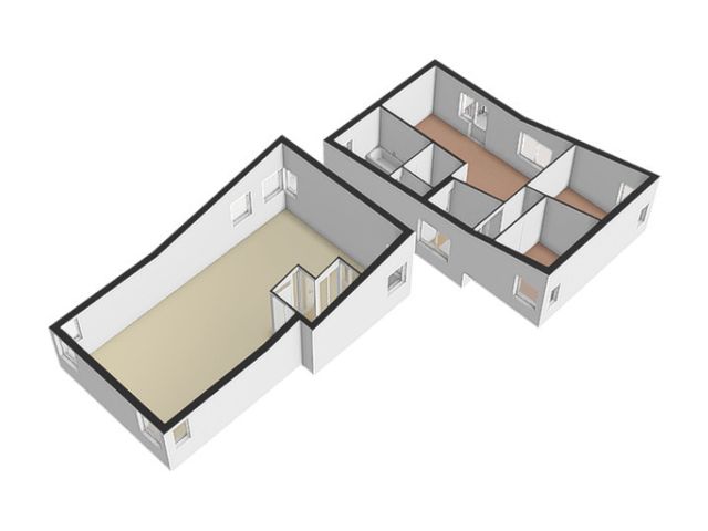 Via de trapopgang in het kantoor is er toegang tot de grote atelierruimte. Deze multifunctionele ruimte heeft een oppervlakte circa 50 m² en is geheel voorzien van een laminaatvloer.