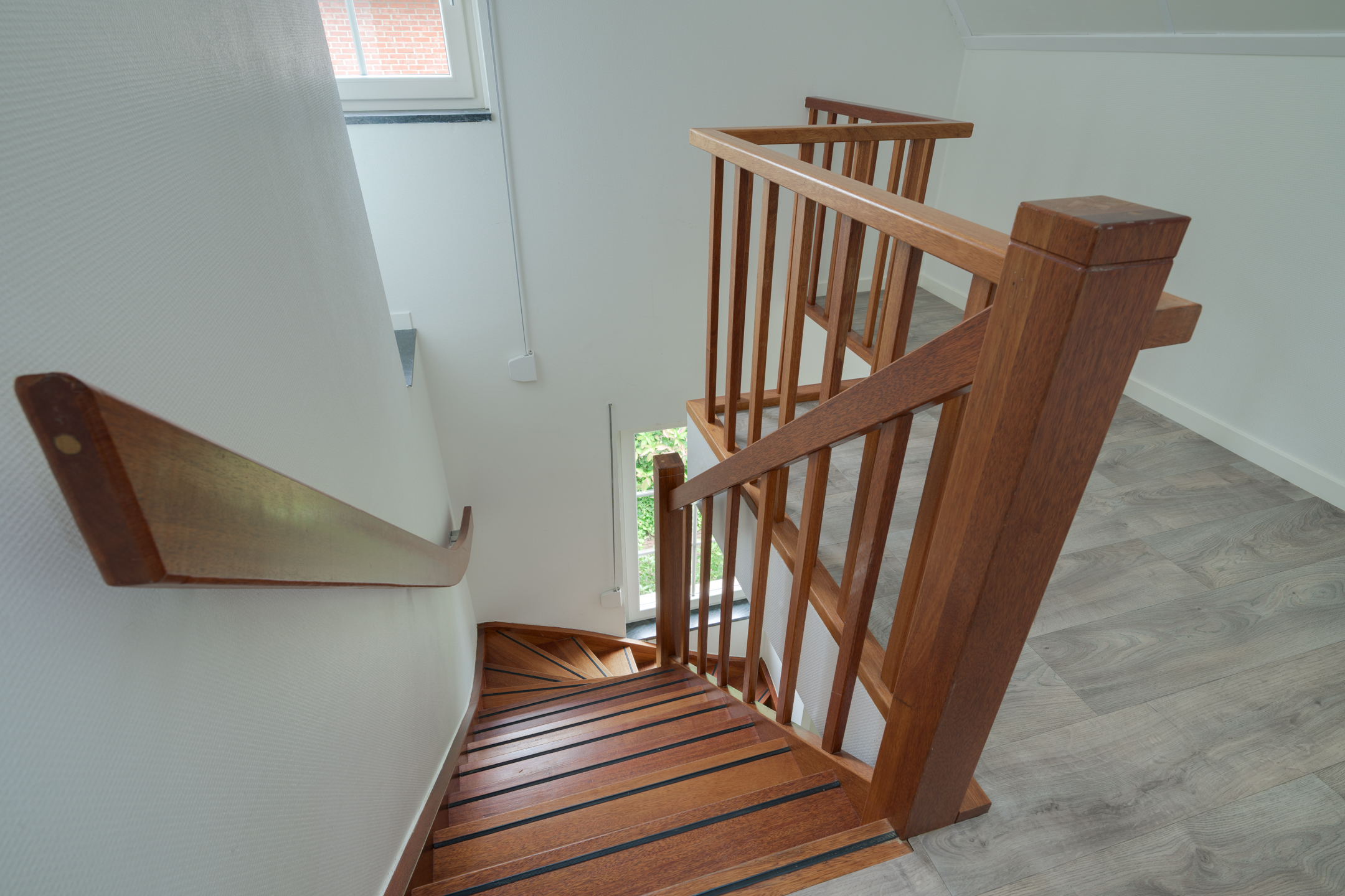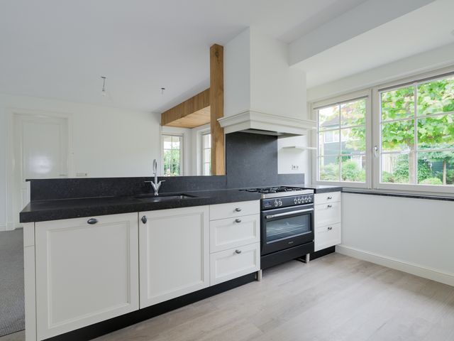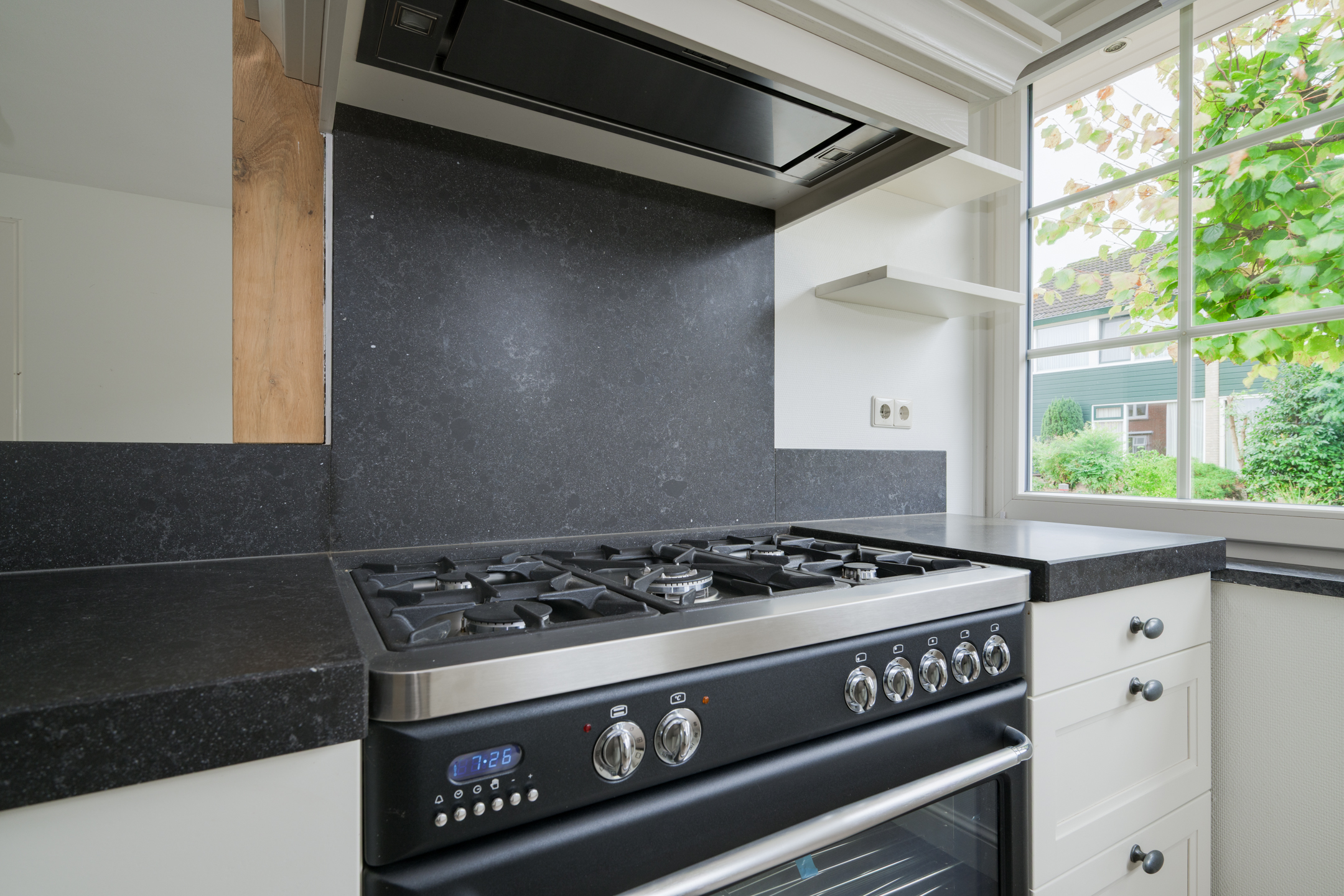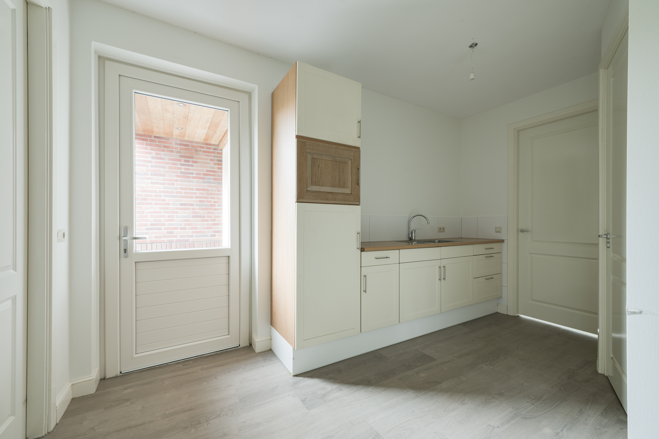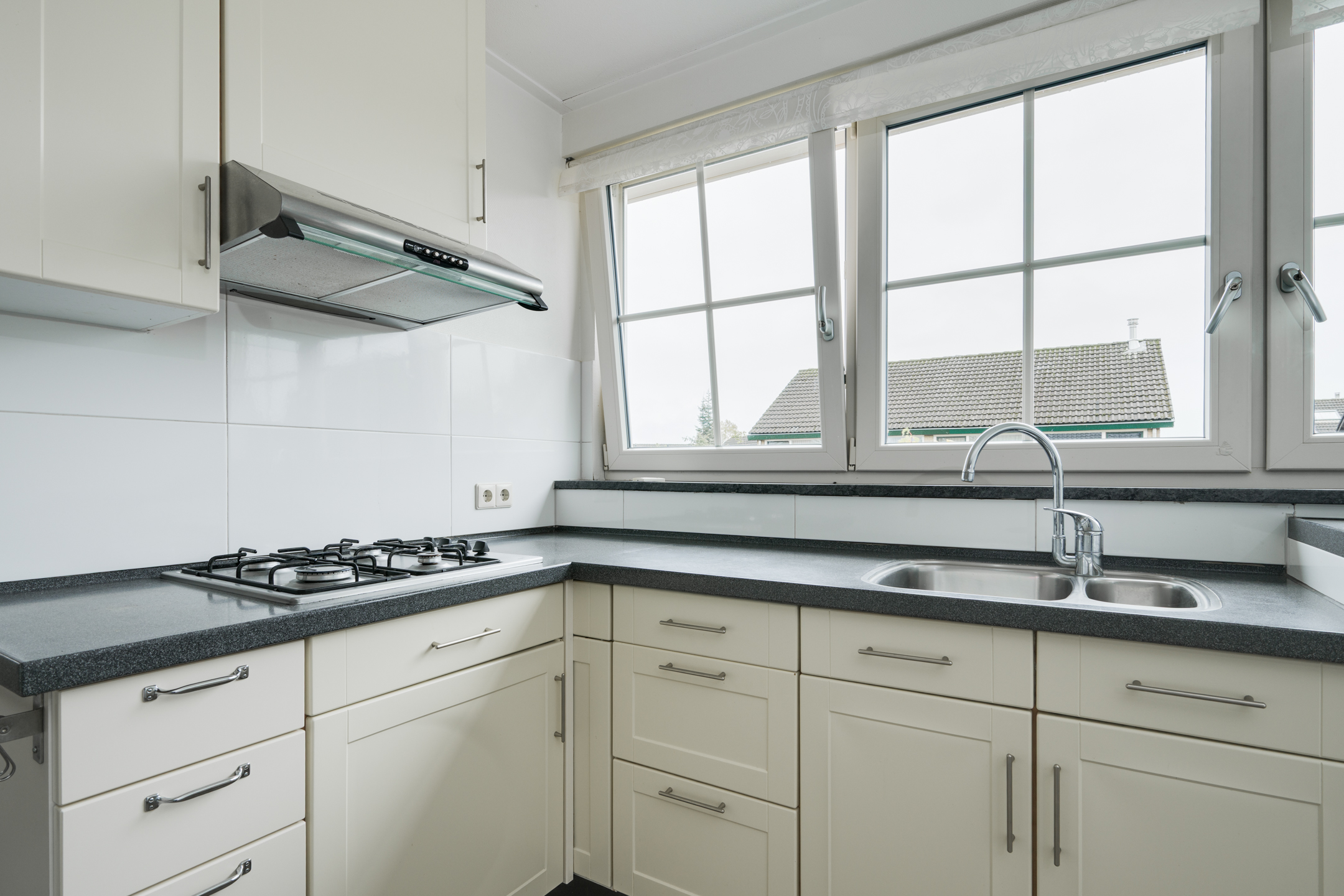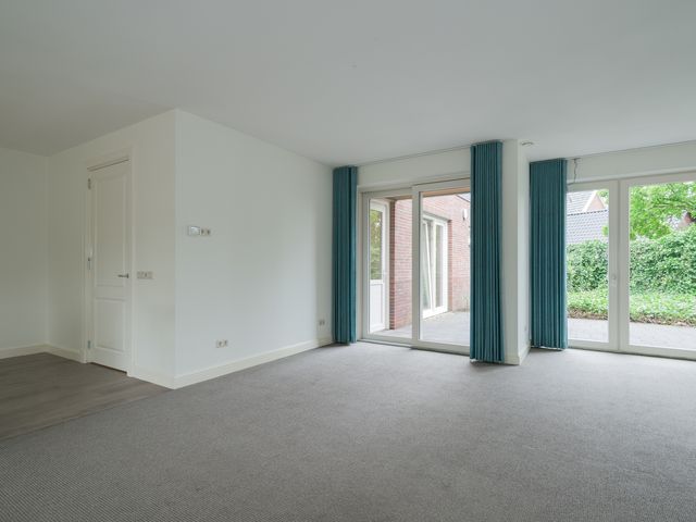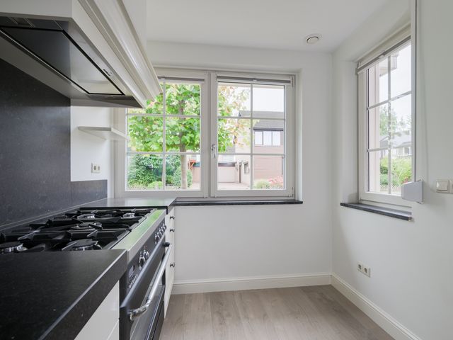 Begane grond: Via de overdekte entree betreedt u de woning. U komt binnen in een ruime en lichte hal met trapopgang naar de eerste verdieping en toegang tot de meterkast. Vanuit de hal bereikt u de royale, Z-vormige woonkamer die dankzij de grote raampartijen bijzonder veel lichtinval geniet. Een schuifpui biedt hier direct toegang tot de achtertuin. De woonkamer staat in open verbinding met de keuken, die is voorzien van diverse inbouwapparatuur, waaronder een hoogwaardig gasfornuis van het merk 'Fratelli'. Diverse raamkozijnen zijn voorzien van rolluiken en (binnen)screens. Aansluitend aan de keuken bevindt zich een tweede hal met toegang tot de voortuin en de aangebouwde garage. De garage beschikt over een praktische inbouwkast en een elektrische garagedeur en leent zich uitstekend als werkplaats of voor het stallen van (smalle) voertuigen. Vanuit de keuken bereikt u tevens de bijkeuken, voorzien van een keukenblok met onder andere een wastafel en inbouwkoelkast. Vanuit de bijkeuken is er toegang tot een separate toiletruimte met fonteintje, de achtertuin én de slaapkamer op de begane grond. Deze ruime slaapkamer is sfeervol afgewerkt met inbouwspotjes en beschikt over een groot raamkozijn met uitzicht op de beschutte achtertuin. Direct aangrenzend vindt u de badkamer met inloopdouche, toilet en wastafel. Nagenoeg de gehele begane grond is voorzien van vloerverwarming, wat zorgt voor een aangenaam wooncomfort.