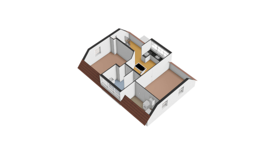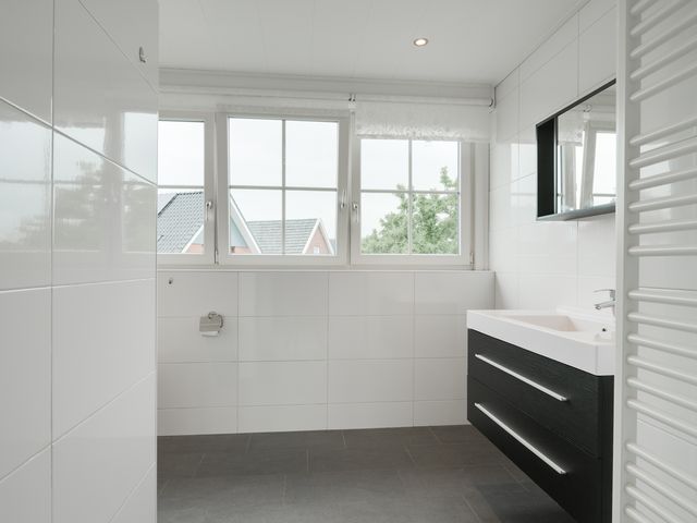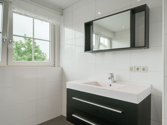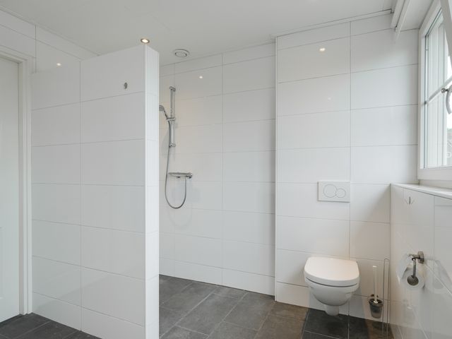 Eerste verdieping: Op de eerste verdieping biedt de ruime overloop toegang tot een open ruimte met keukenblok, voorzien van onder andere een wastafel en kookplaat. Vanuit de overloop zijn twee royale slaapkamers bereikbaar, waarvan één is uitgerust met een praktische kastruimte waarin tevens de cv-installatie is geplaatst. Daarnaast bevindt zich op deze verdieping een tweede badkamer, ingericht met een inloopdouche, toilet en wastafel.