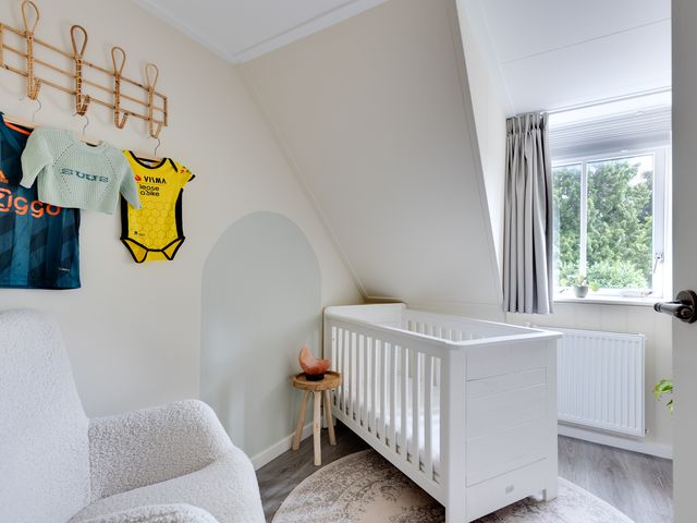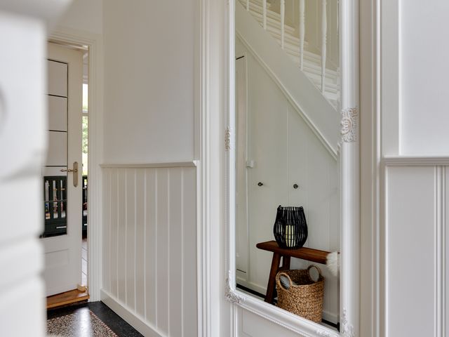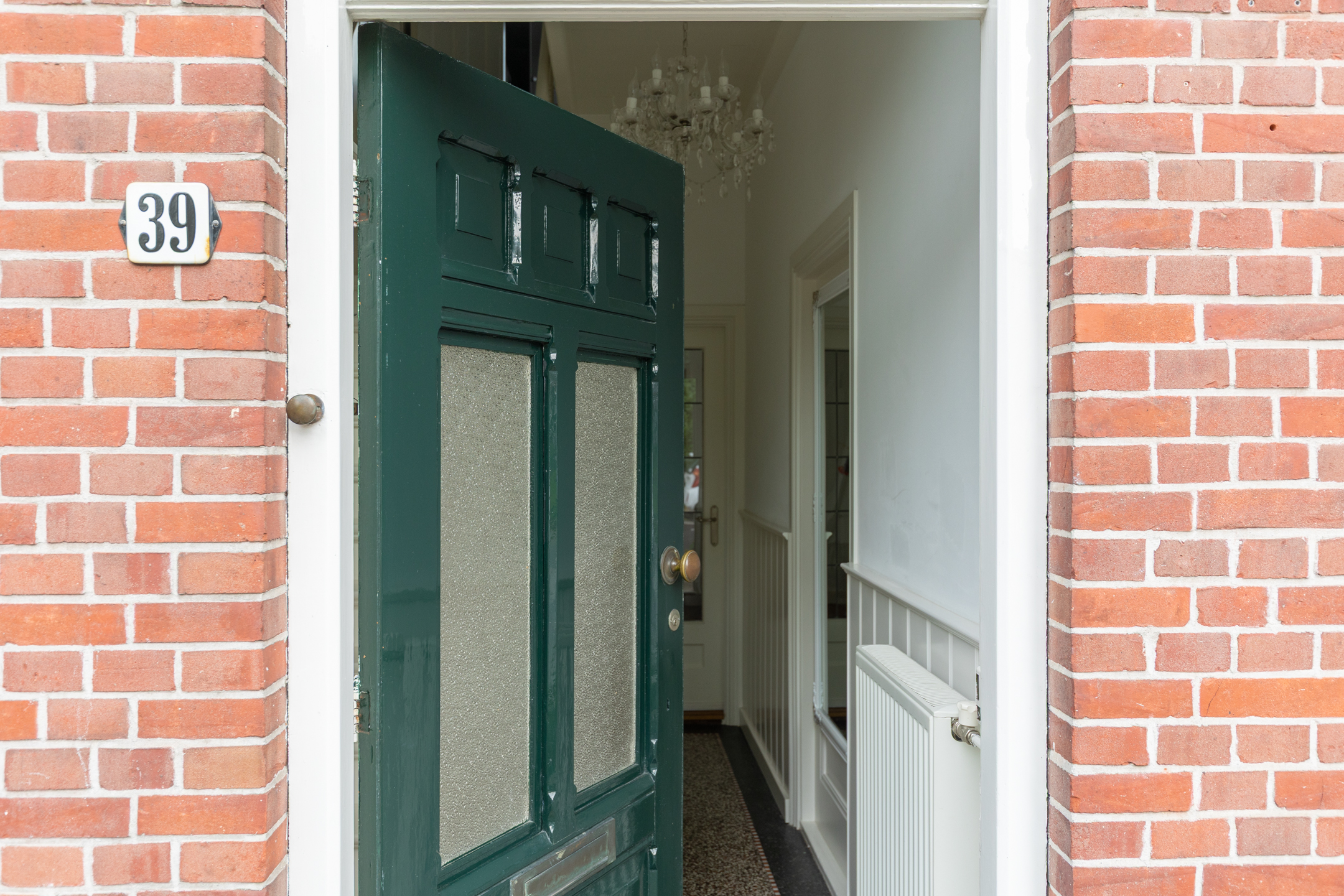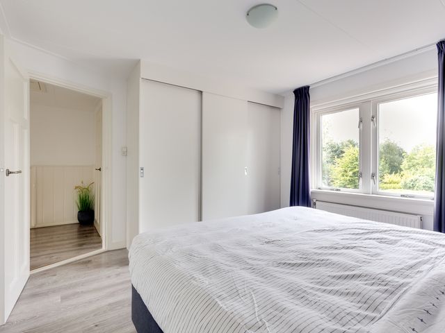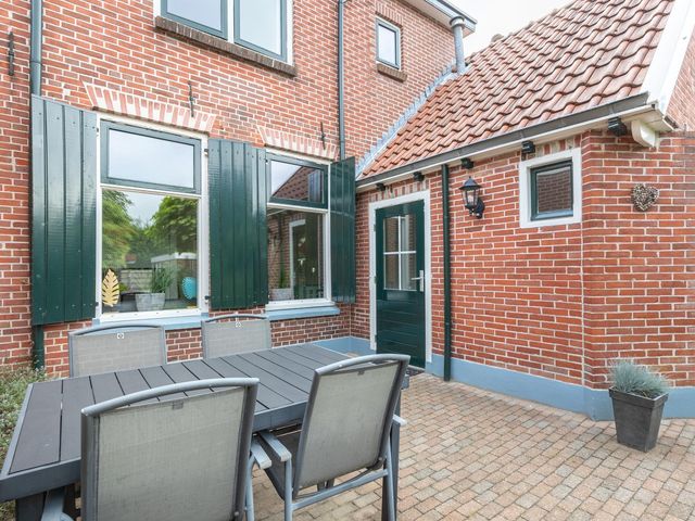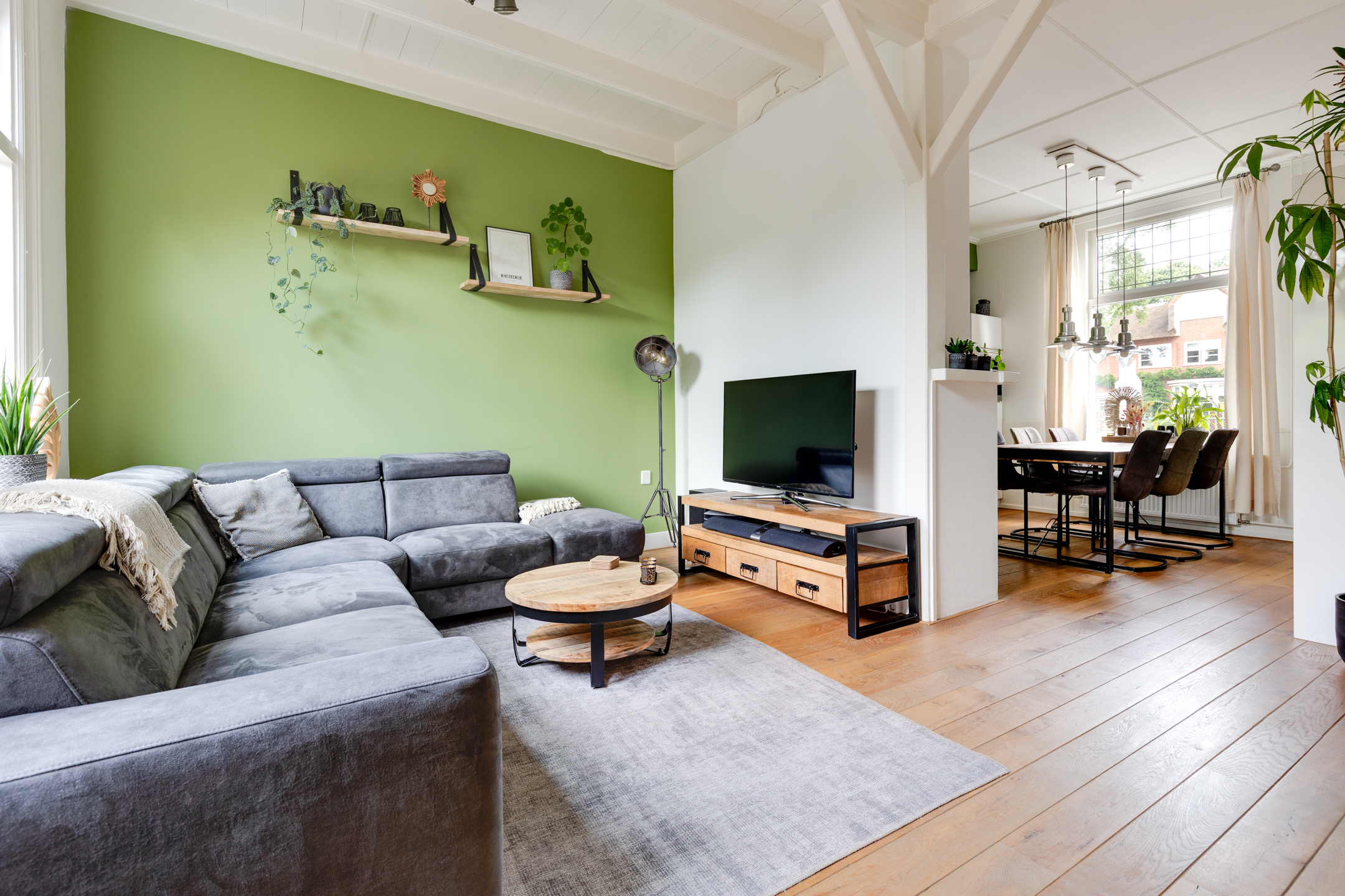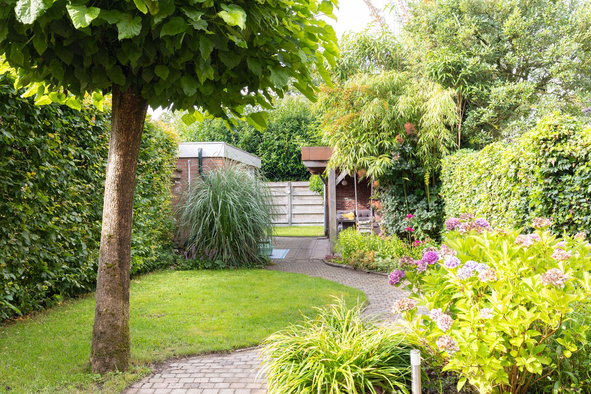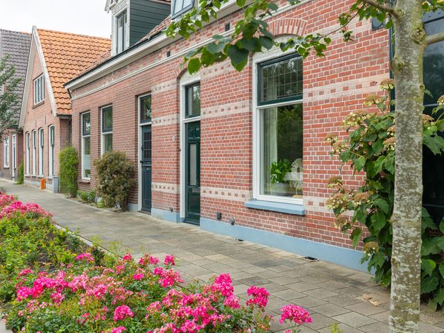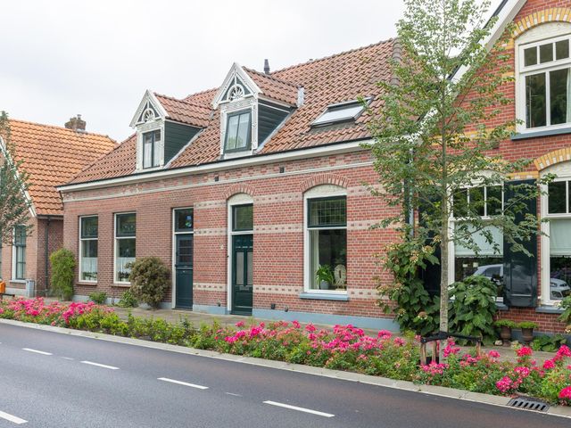 Begane grond: Sfeervolle entreehal met karakteristieke glas-in-loodramen en granito vloer, voorzien van meterkast, trapopgang naar de eerste verdieping en trapkast. Brede en charmante woonkamer met eikenhouten vloer en plafond met houten balken, voorzien van een (gas)kachel en inbouwkastruimte. De woonkamer loopt over in de open eetkeuken, voorzien van diverse inbouwapparatuur, waaronder een vaatwasser, oven en koelkast. Vanuit de woonkamer is er toegang tot een hal met kastruimte, toilet met fontein en een wasruimte met aansluiting voor wasmachine en droger. Via een vlizotrap is hier ook een handige bergzolder bereikbaar. De deur in deze hal geeft toegang tot de achtertuin. De diepe achtertuin, gelegen op het zonnige zuidwesten, is een heerlijke plek om te ontspannen. Hier vindt u een vrijstaande houten overkapping met gezellige zitplek en een vrijstaande stenen berging, ideaal voor het stallen van fietsen en tuingereedschap.