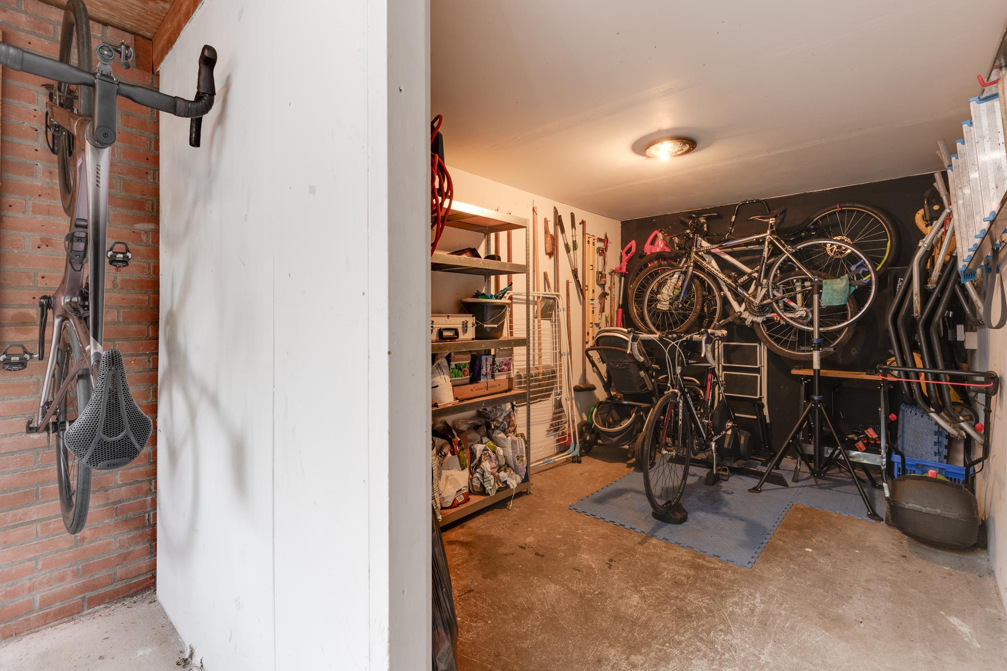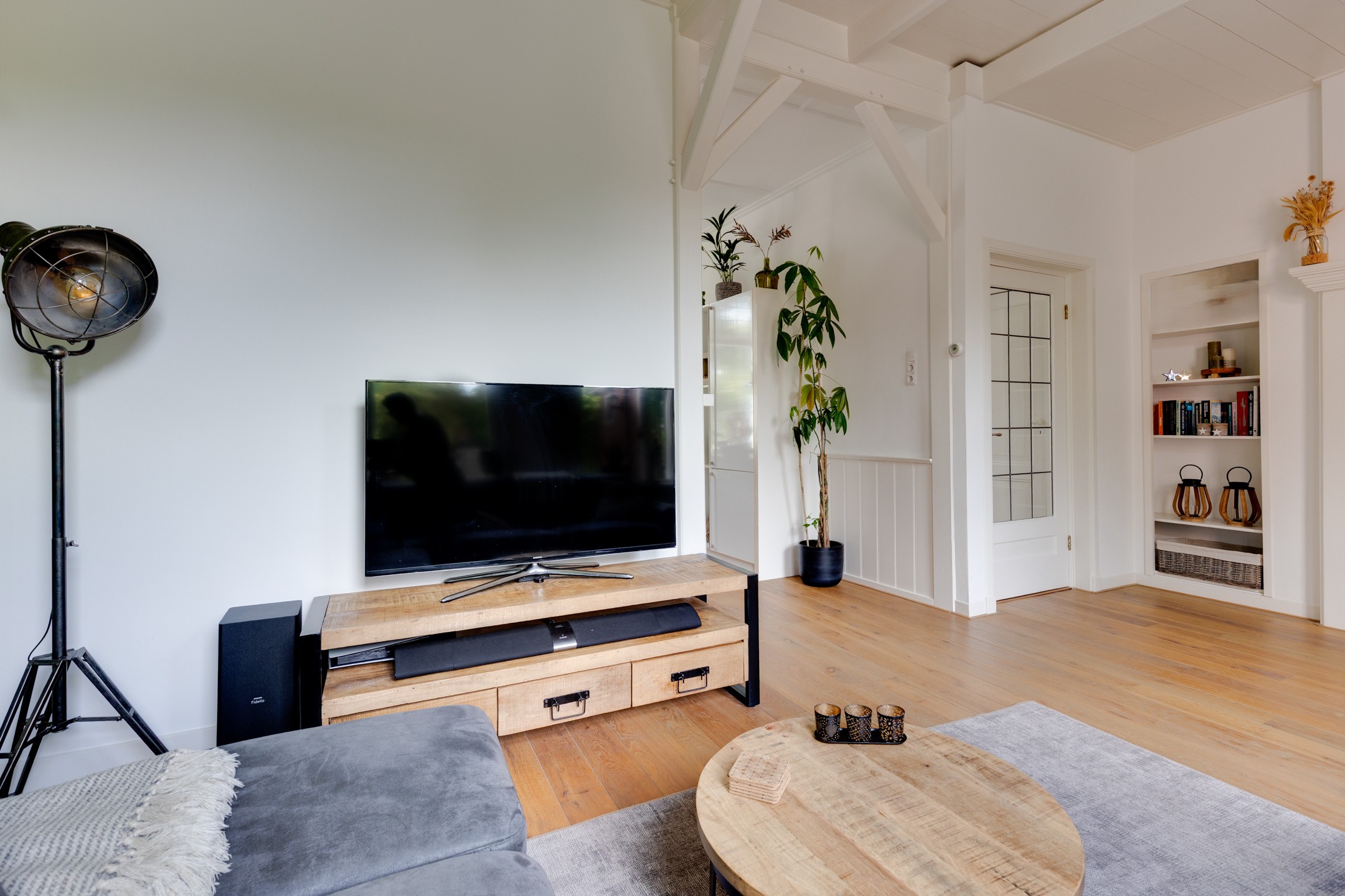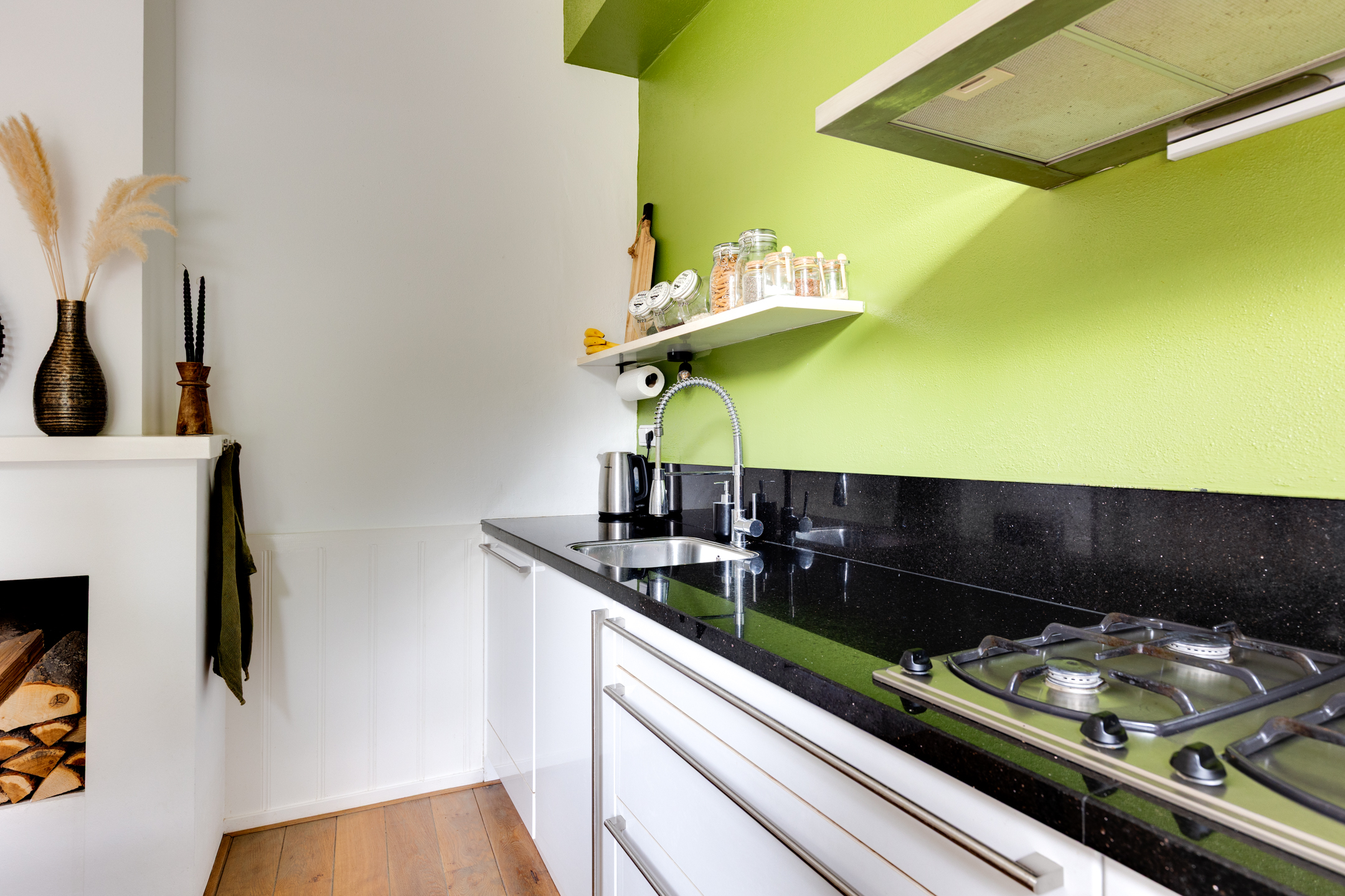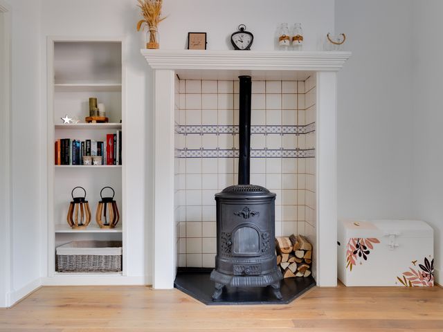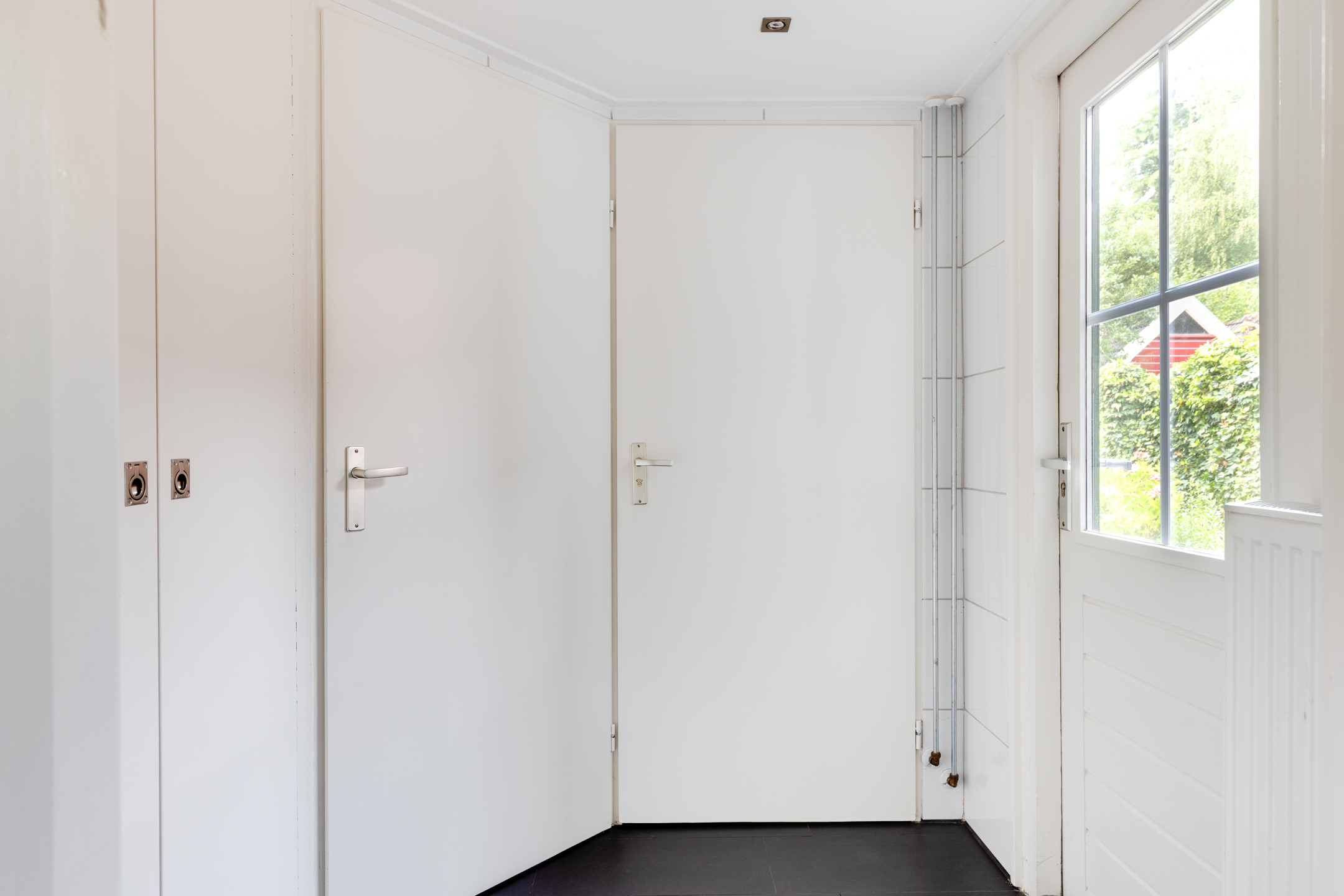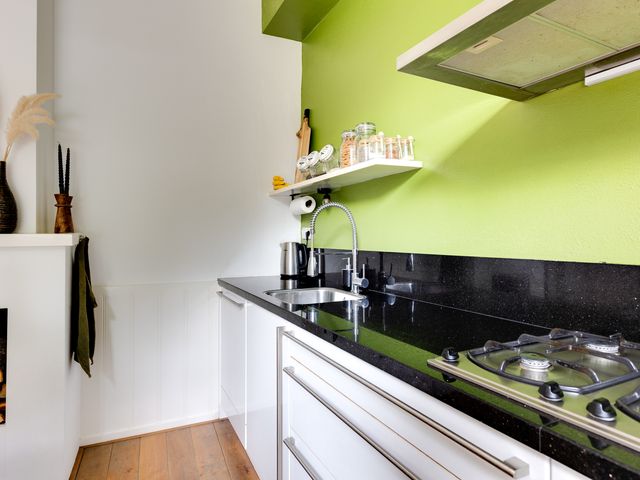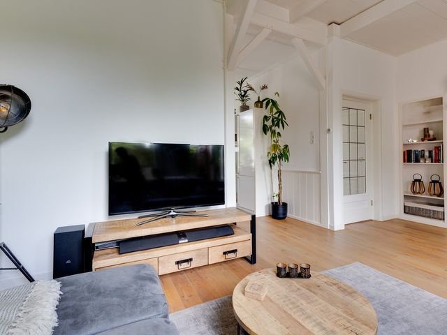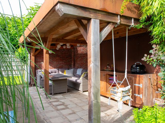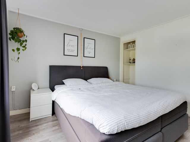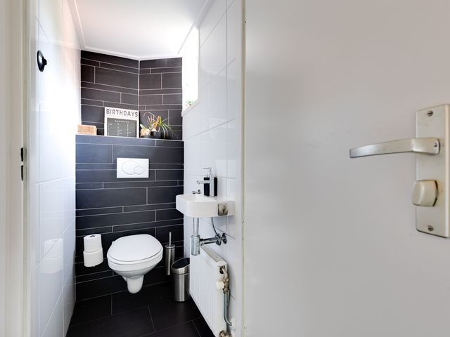 Begane grond: Sfeervolle entreehal met karakteristieke glas-in-loodramen en granito vloer, voorzien van meterkast, trapopgang naar de eerste verdieping en trapkast. Brede en charmante woonkamer met eikenhouten vloer en plafond met houten balken, voorzien van een (gas)kachel en inbouwkastruimte. De woonkamer loopt over in de open eetkeuken, voorzien van diverse inbouwapparatuur, waaronder een vaatwasser, oven en koelkast. Vanuit de woonkamer is er toegang tot een hal met kastruimte, toilet met fontein en een wasruimte met aansluiting voor wasmachine en droger. Via een vlizotrap is hier ook een handige bergzolder bereikbaar. De deur in deze hal geeft toegang tot de achtertuin. De diepe achtertuin, gelegen op het zonnige zuidwesten, is een heerlijke plek om te ontspannen. Hier vindt u een vrijstaande houten overkapping met gezellige zitplek en een vrijstaande stenen berging, ideaal voor het stallen van fietsen en tuingereedschap.