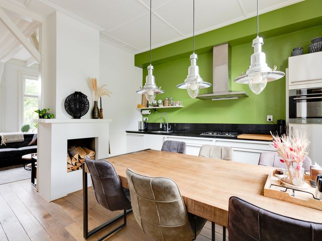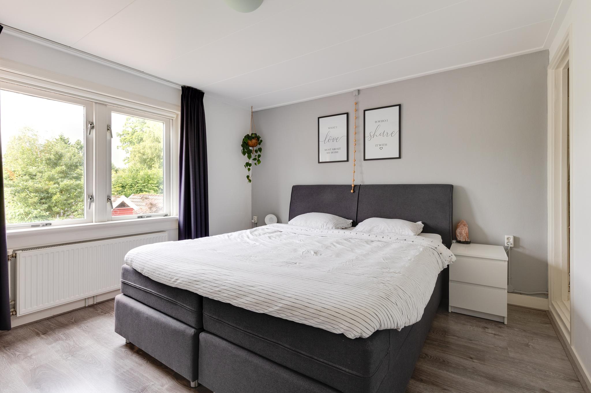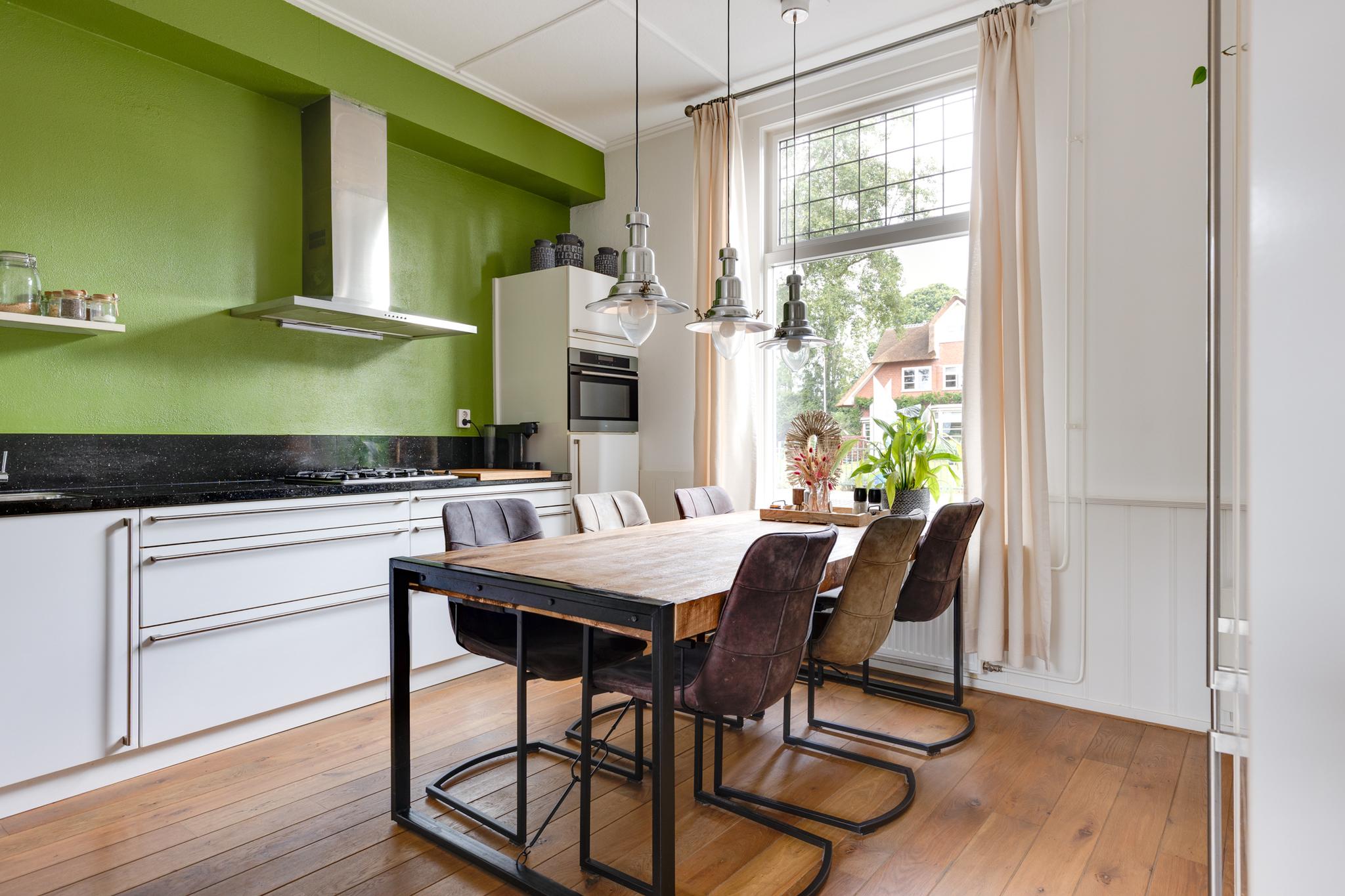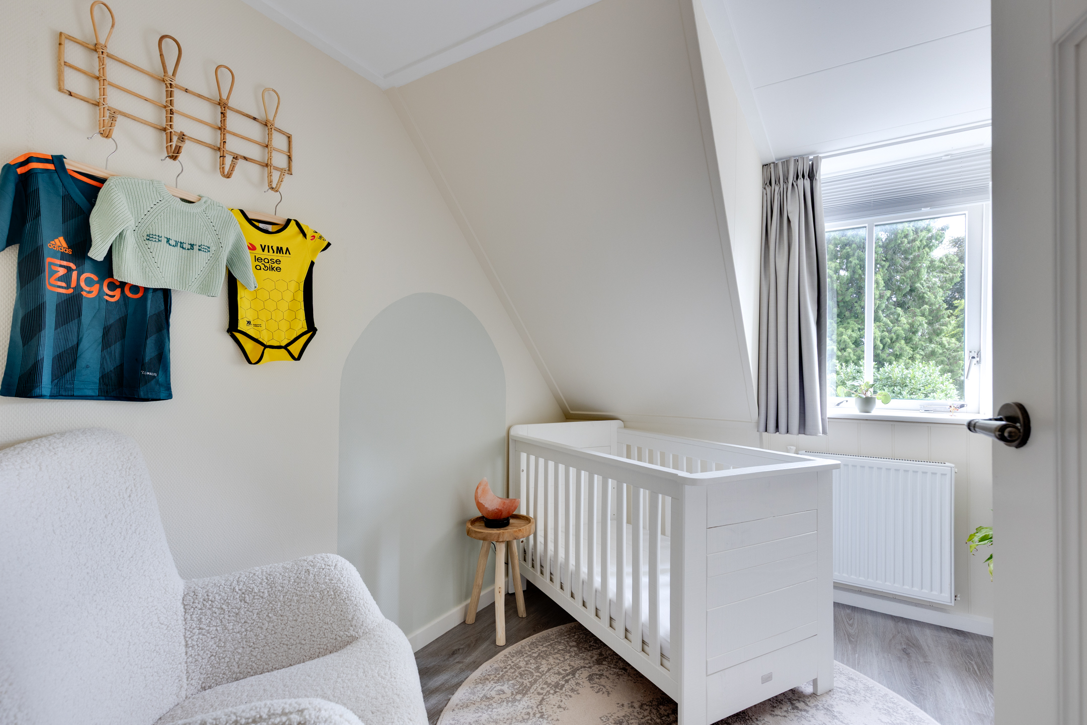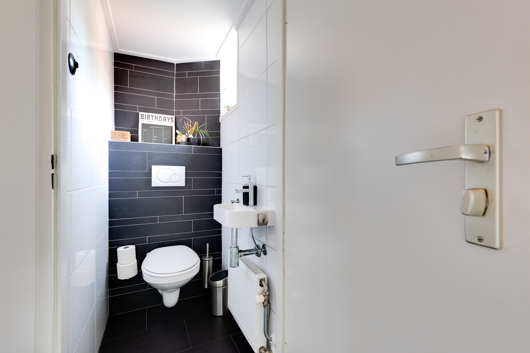 Begane grond: Sfeervolle entreehal met karakteristieke glas-in-loodramen en granito vloer, voorzien van meterkast, trapopgang naar de eerste verdieping en trapkast. Brede en charmante woonkamer met eikenhouten vloer en plafond met houten balken, voorzien van een (gas)kachel en inbouwkastruimte. De woonkamer loopt over in de open eetkeuken, voorzien van diverse inbouwapparatuur, waaronder een vaatwasser, oven en koelkast. Vanuit de woonkamer is er toegang tot een hal met kastruimte, toilet met fontein en een wasruimte met aansluiting voor wasmachine en droger. Via een vlizotrap is hier ook een handige bergzolder bereikbaar. De deur in deze hal geeft toegang tot de achtertuin. De diepe achtertuin, gelegen op het zonnige zuidwesten, is een heerlijke plek om te ontspannen. Hier vindt u een vrijstaande houten overkapping met gezellige zitplek en een vrijstaande stenen berging, ideaal voor het stallen van fietsen en tuingereedschap.