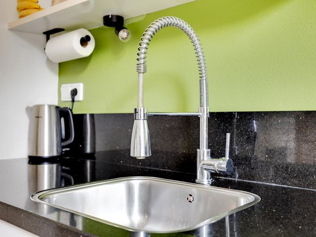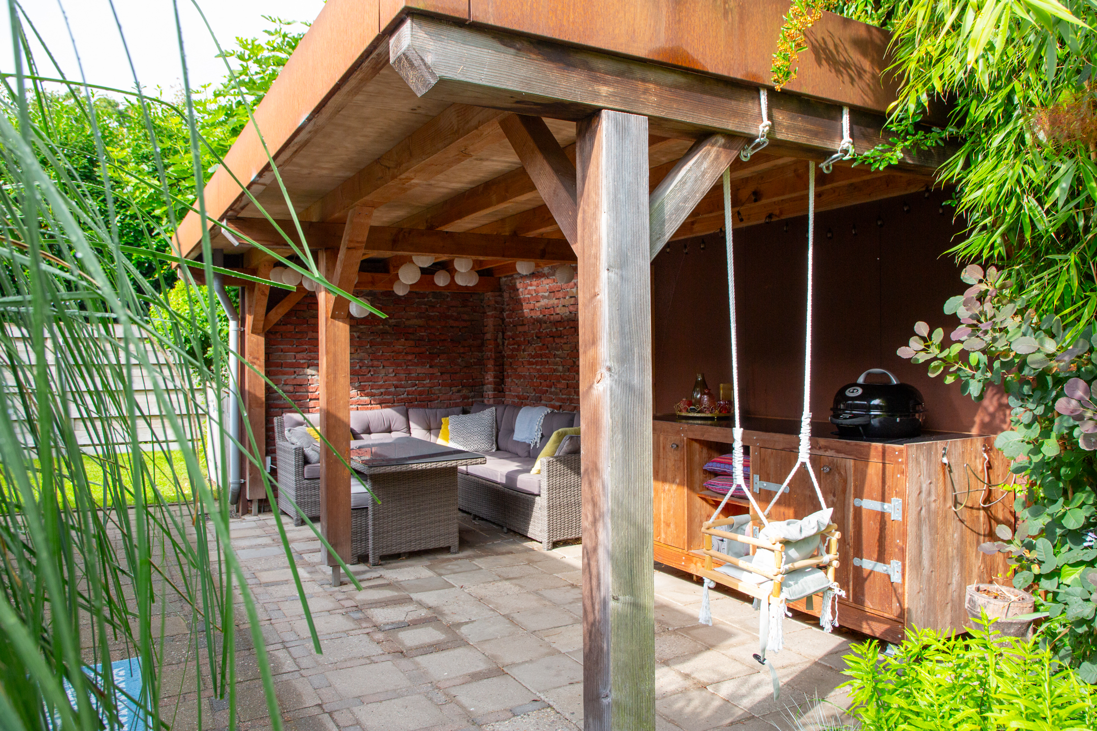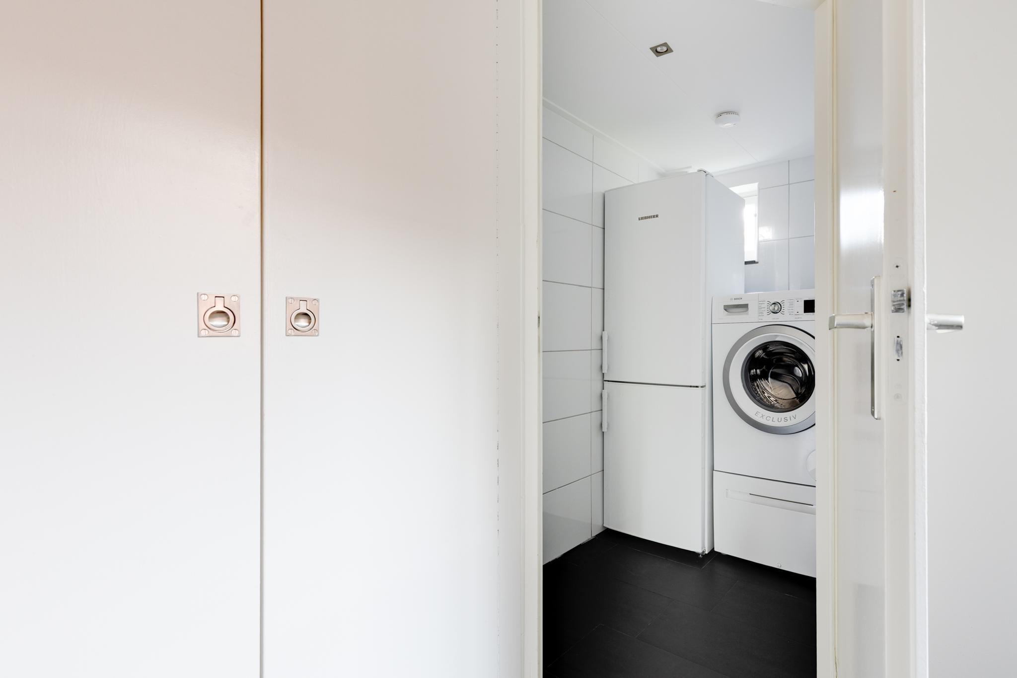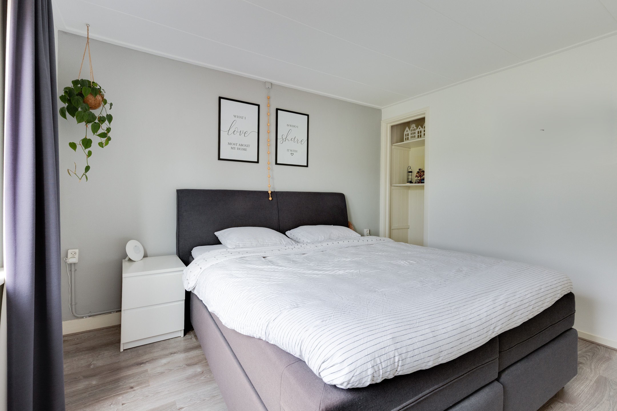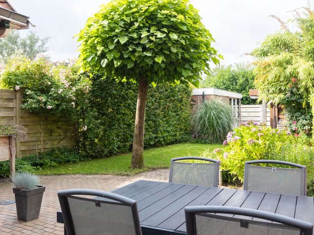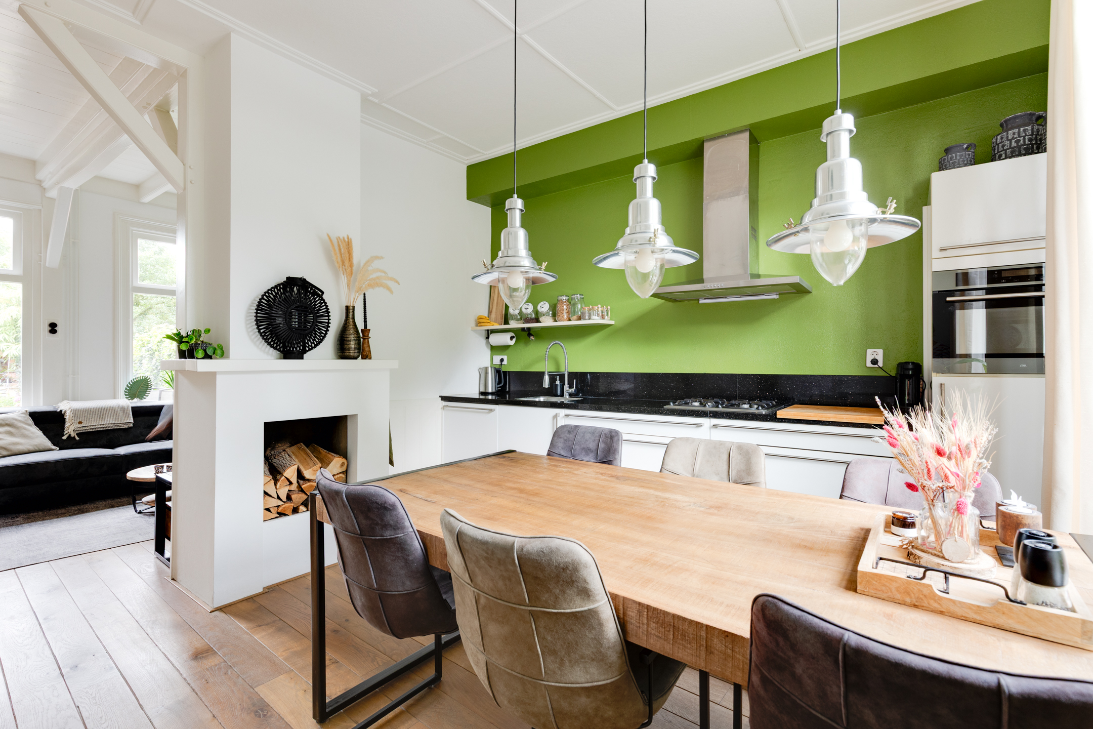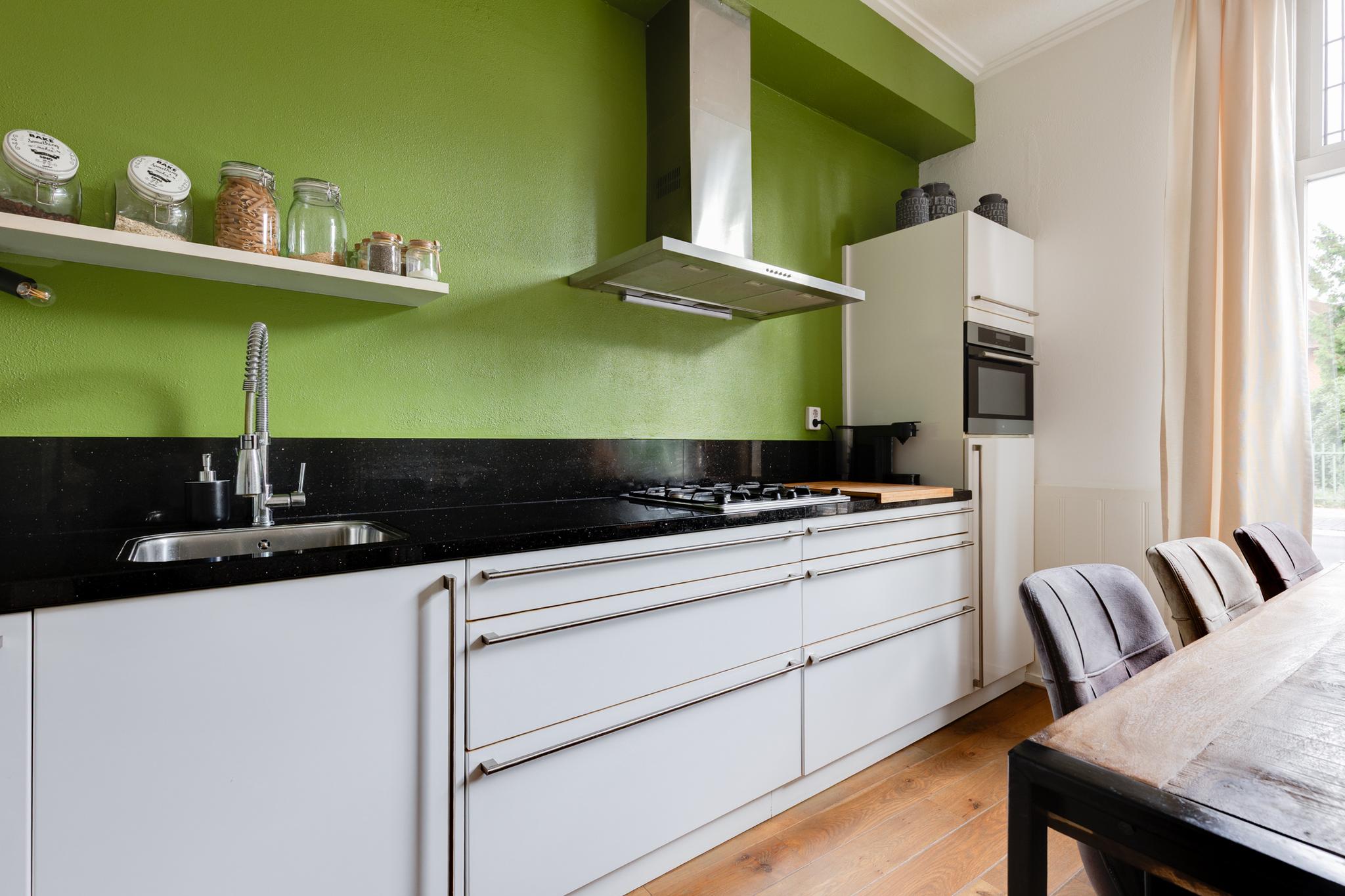 Begane grond: Sfeervolle entreehal met karakteristieke glas-in-loodramen en granito vloer, voorzien van meterkast, trapopgang naar de eerste verdieping en trapkast. Brede en charmante woonkamer met eikenhouten vloer en plafond met houten balken, voorzien van een (gas)kachel en inbouwkastruimte. De woonkamer loopt over in de open eetkeuken, voorzien van diverse inbouwapparatuur, waaronder een vaatwasser, oven en koelkast. Vanuit de woonkamer is er toegang tot een hal met kastruimte, toilet met fontein en een wasruimte met aansluiting voor wasmachine en droger. Via een vlizotrap is hier ook een handige bergzolder bereikbaar. De deur in deze hal geeft toegang tot de achtertuin. De diepe achtertuin, gelegen op het zonnige zuidwesten, is een heerlijke plek om te ontspannen. Hier vindt u een vrijstaande houten overkapping met gezellige zitplek en een vrijstaande stenen berging, ideaal voor het stallen van fietsen en tuingereedschap.