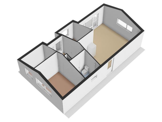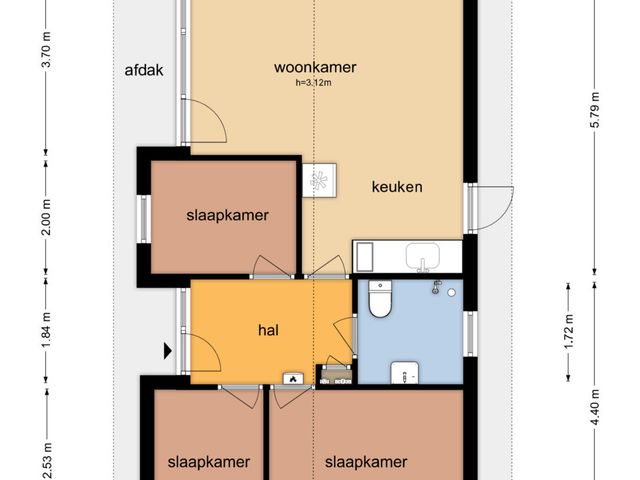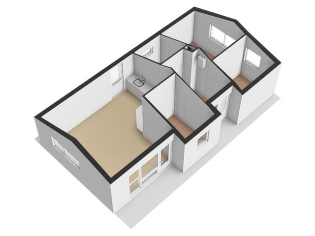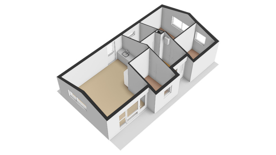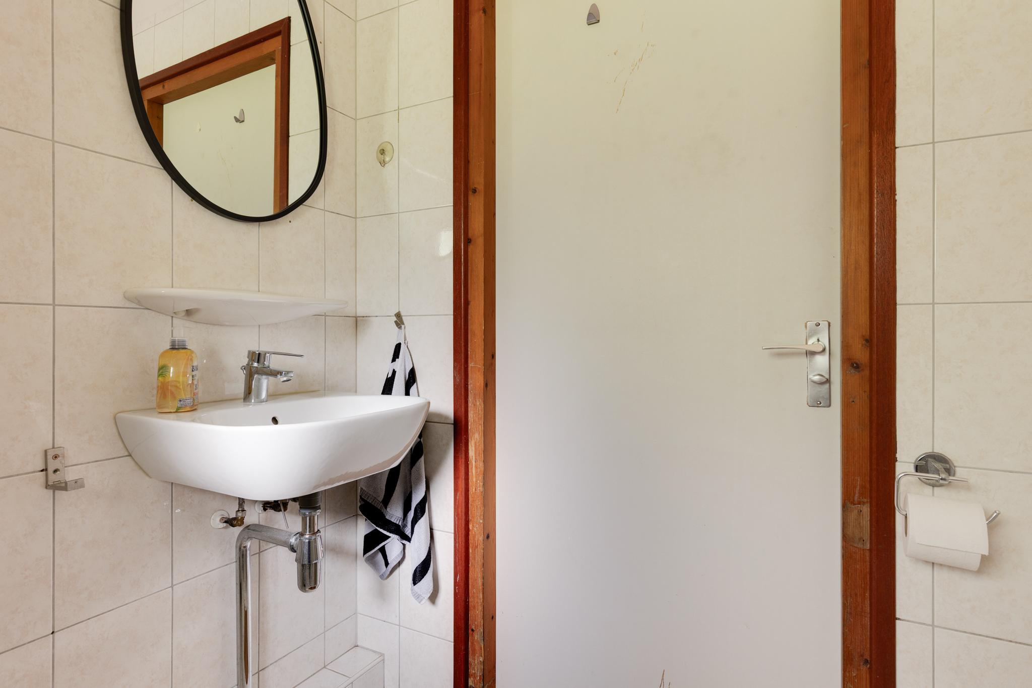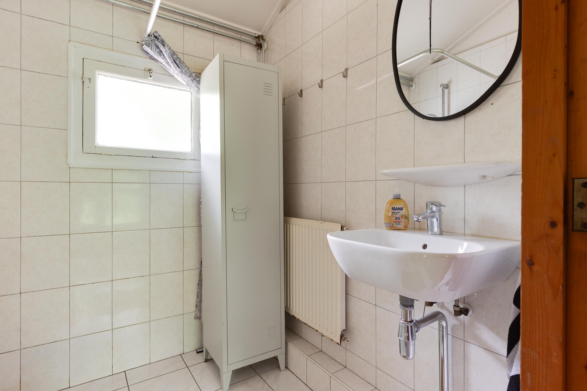Begane grond: Ingang vanaf de entree/hal waar zich de meterkast en c.v.-ketel bevinden. Vanuit de hal is er toegang tot drie slaapkamers en de badkamer. de badkamer is voorzien van een toilet, wastafel en douche. Vanuit de hal is er ook toegang tot de woonkamer met open keuken, die door een groot raamkozijn veel natuurlijk licht ontvangt. De keuken beschikt een toegangsdeur naar de tuin.