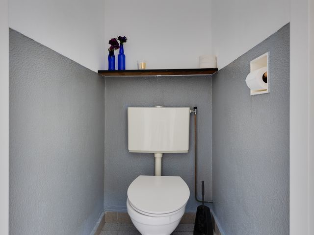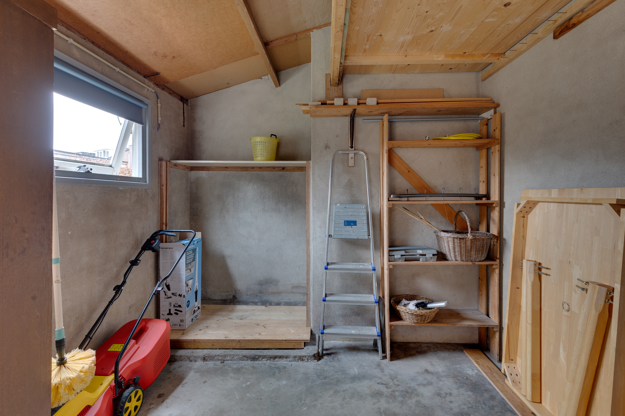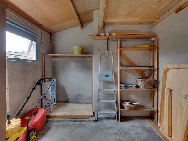Tweede verdieping: Via een vlizotrap op de overloop is de zolder bereikbaar. Deze verdieping biedt extra bergruimte.