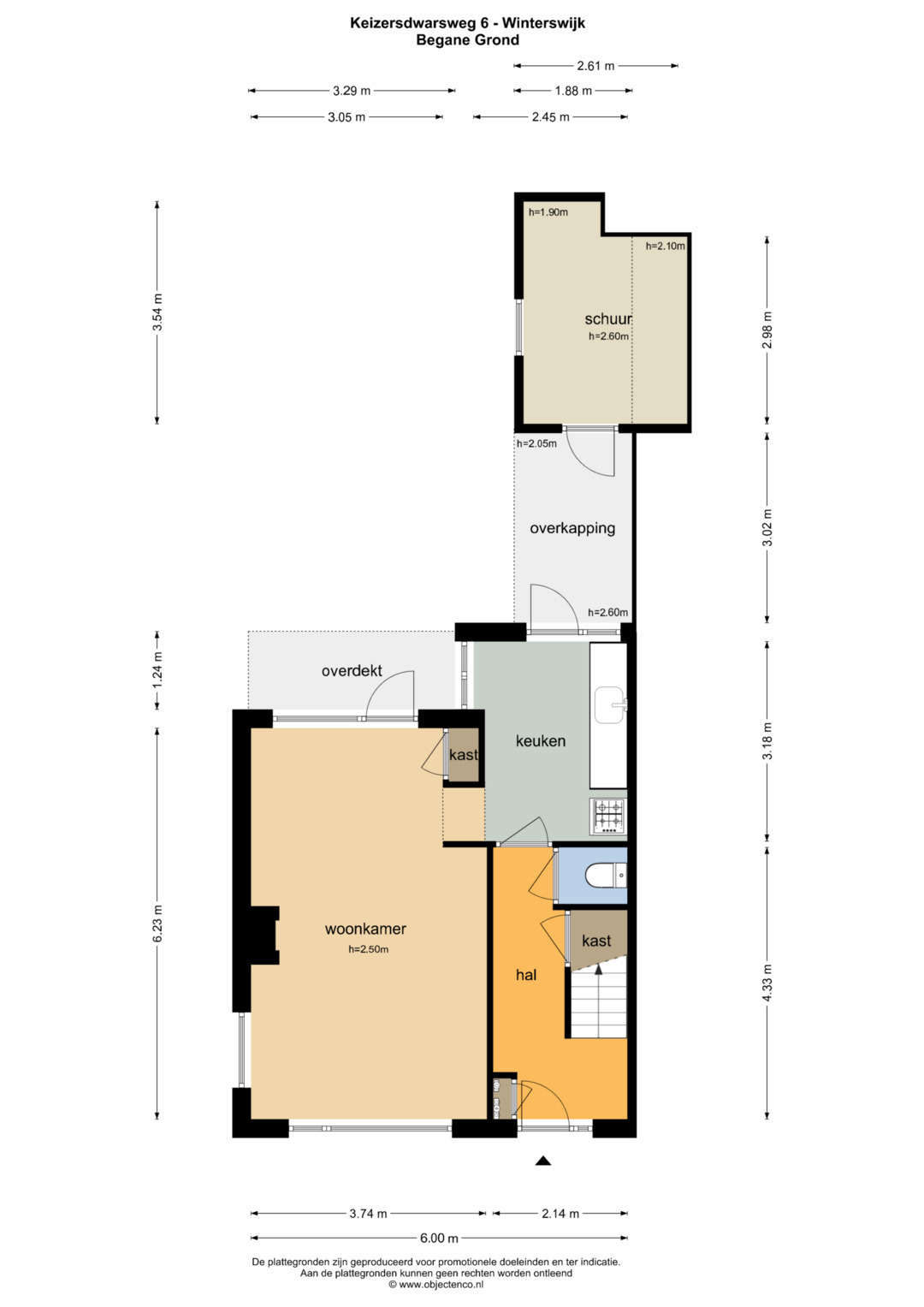 - Overige inpandige ruimte ± 6 m² (Afmeting ter indicatie, kan mogelijk afwijken)