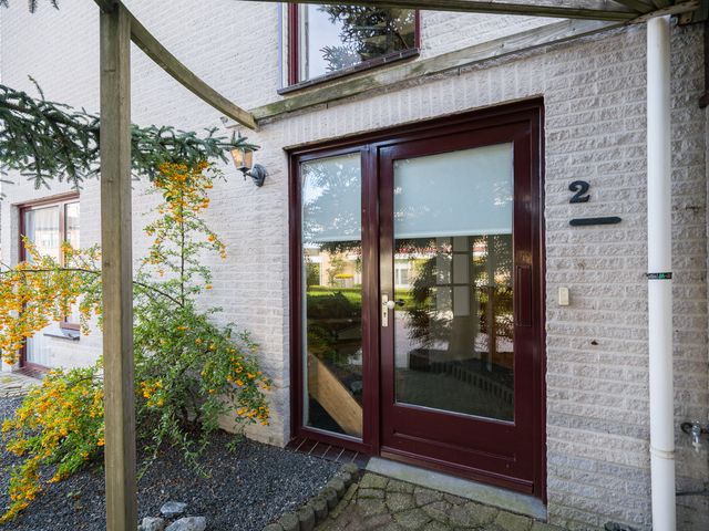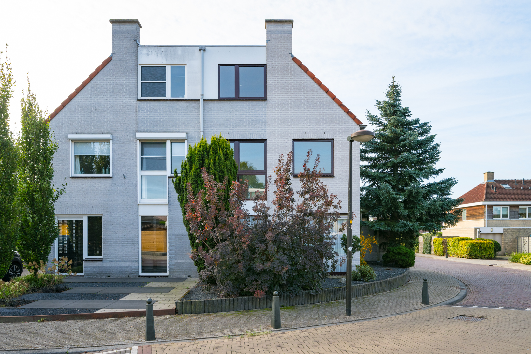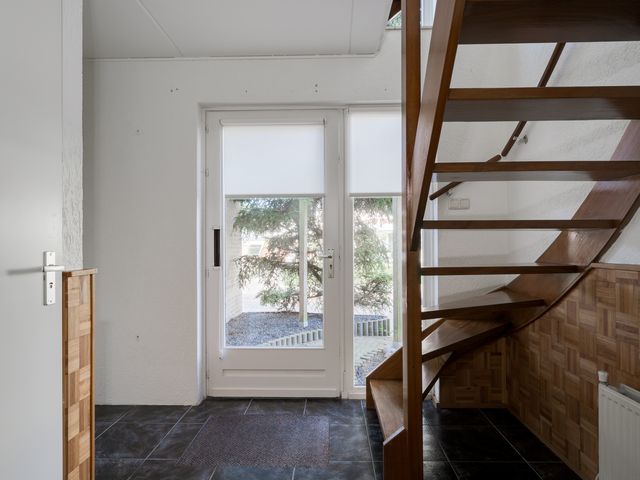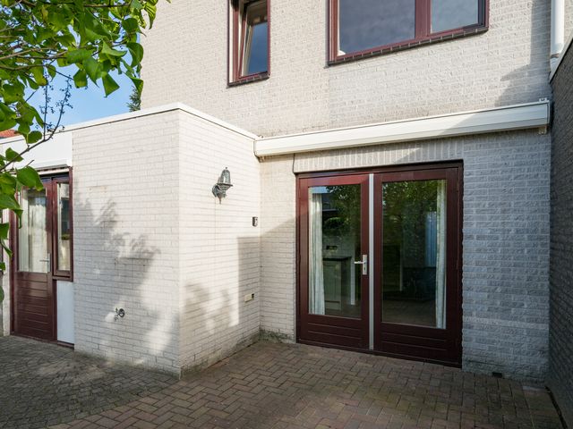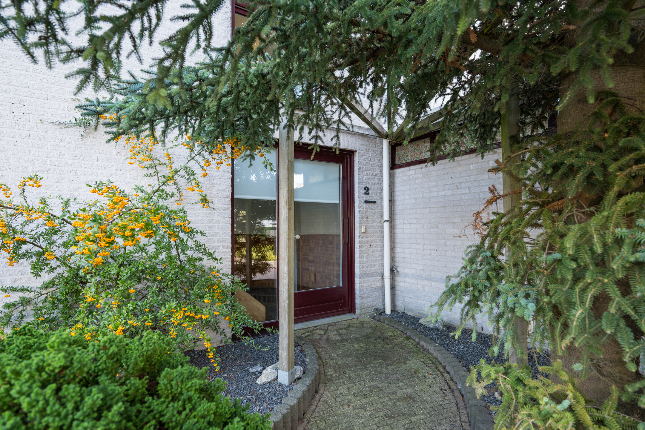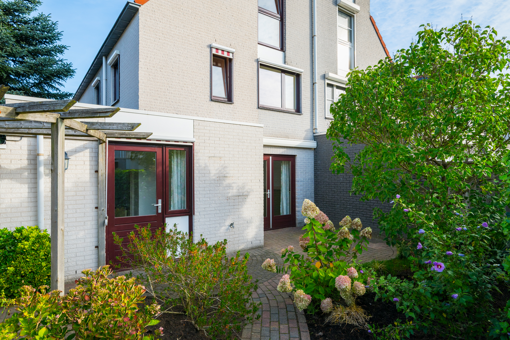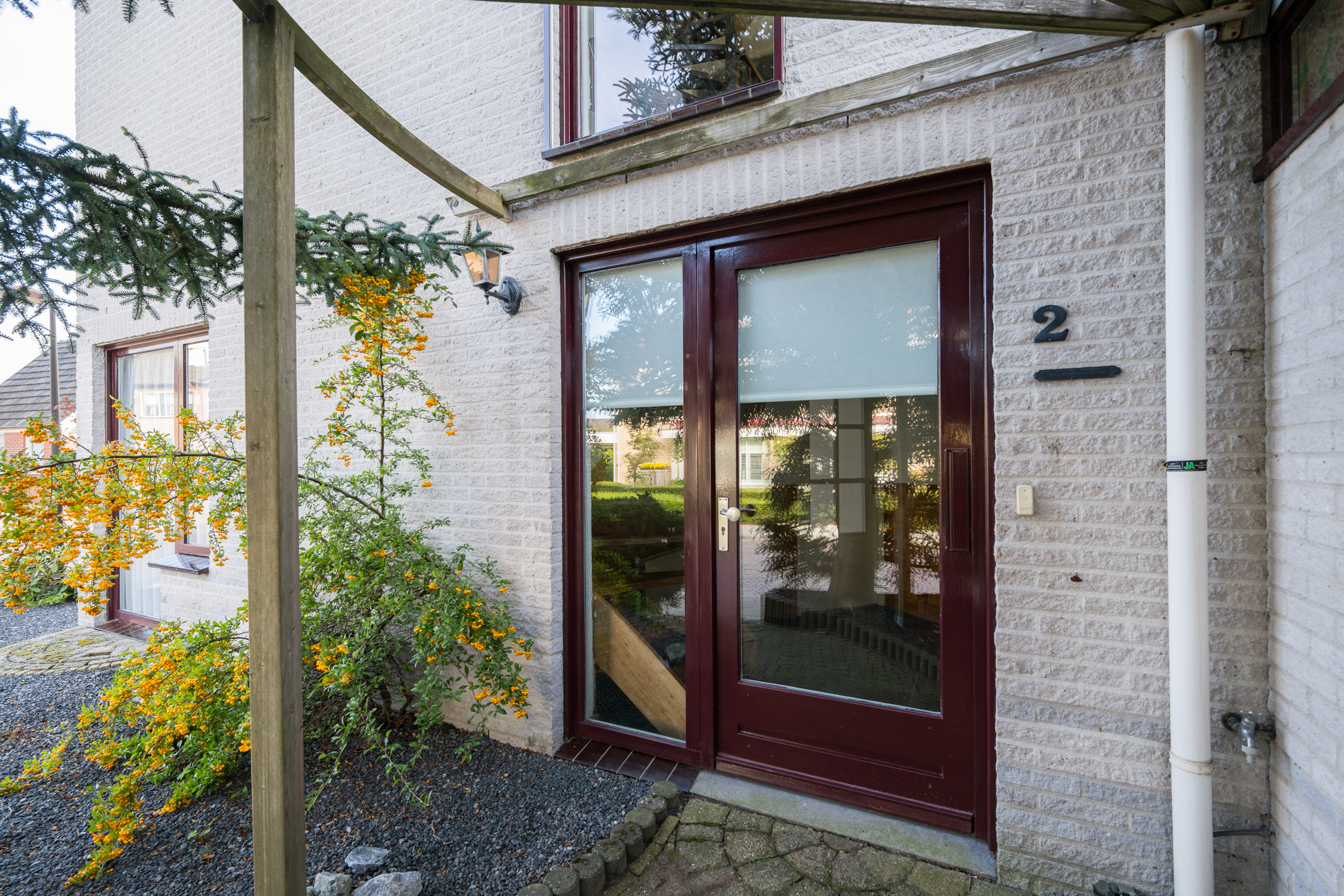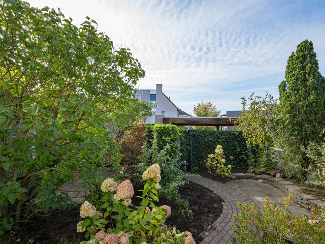 De voordeur van de woning bevindt zich aan de zijkant en voor -en zijtuin zijn onderhoudsvriendelijk aangelegd.