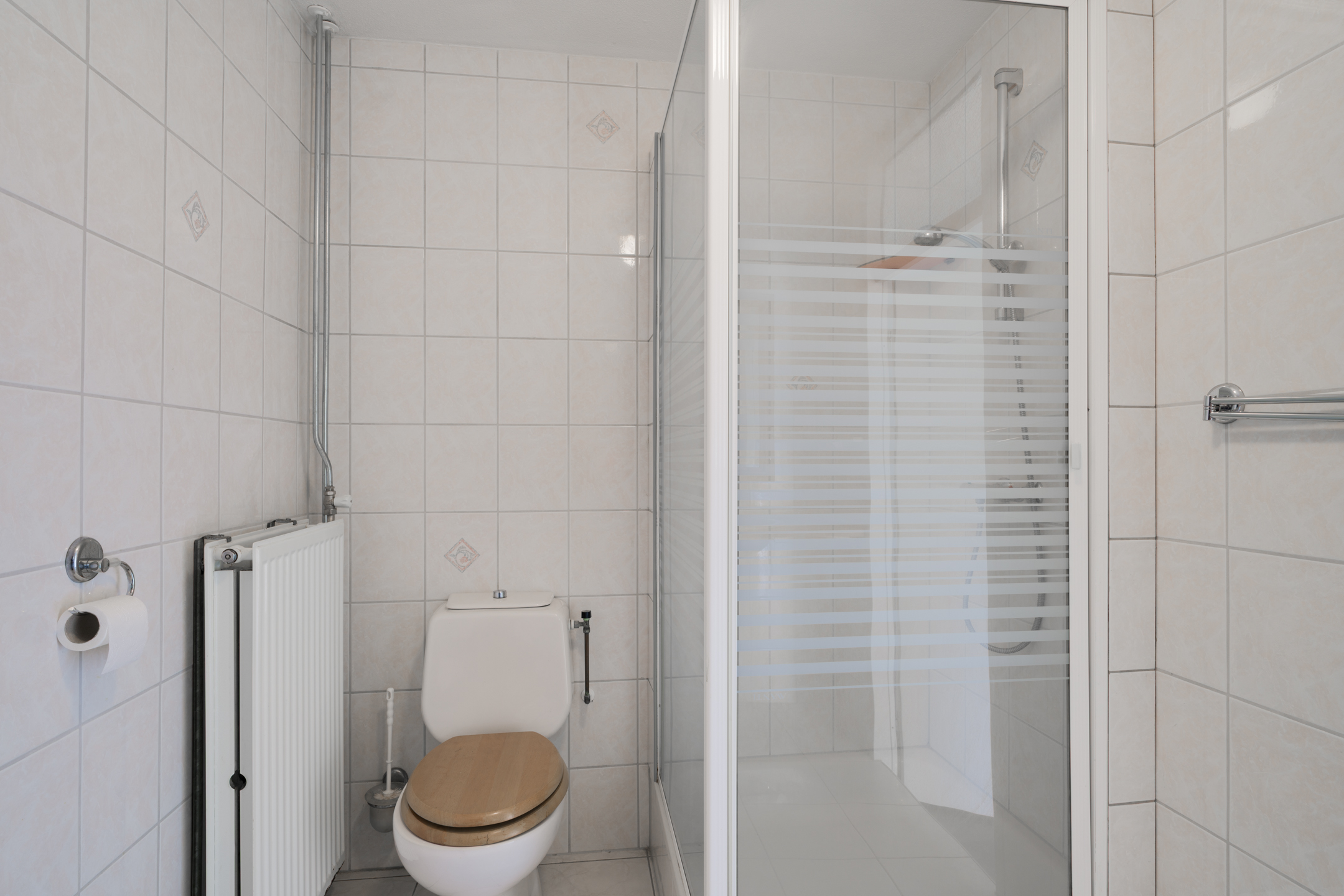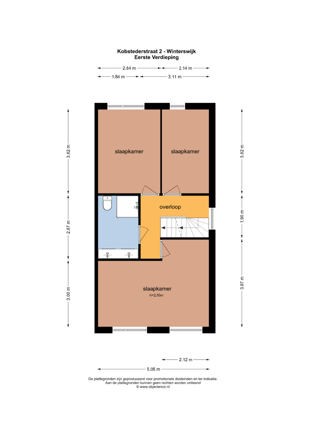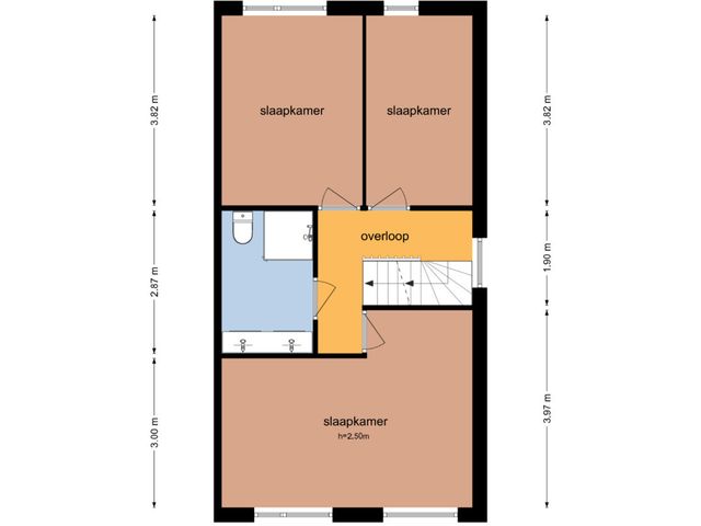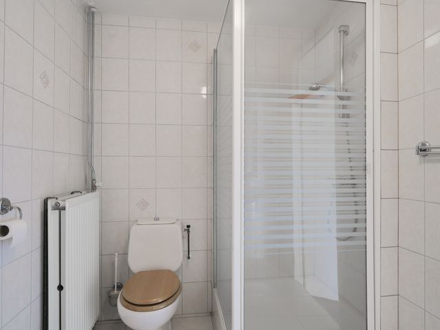 Eerste verdieping: Via de trapopgang in de hal bereikt u de overloop die toegang biedt tot de 3 slaapkamers en de badkamer. De grootste van de 3 slaapkamers is gelegen aan de voorzijde van de woning. De badkamer is voorzien van een douchecabine, dubbele wastafel en toilet.
