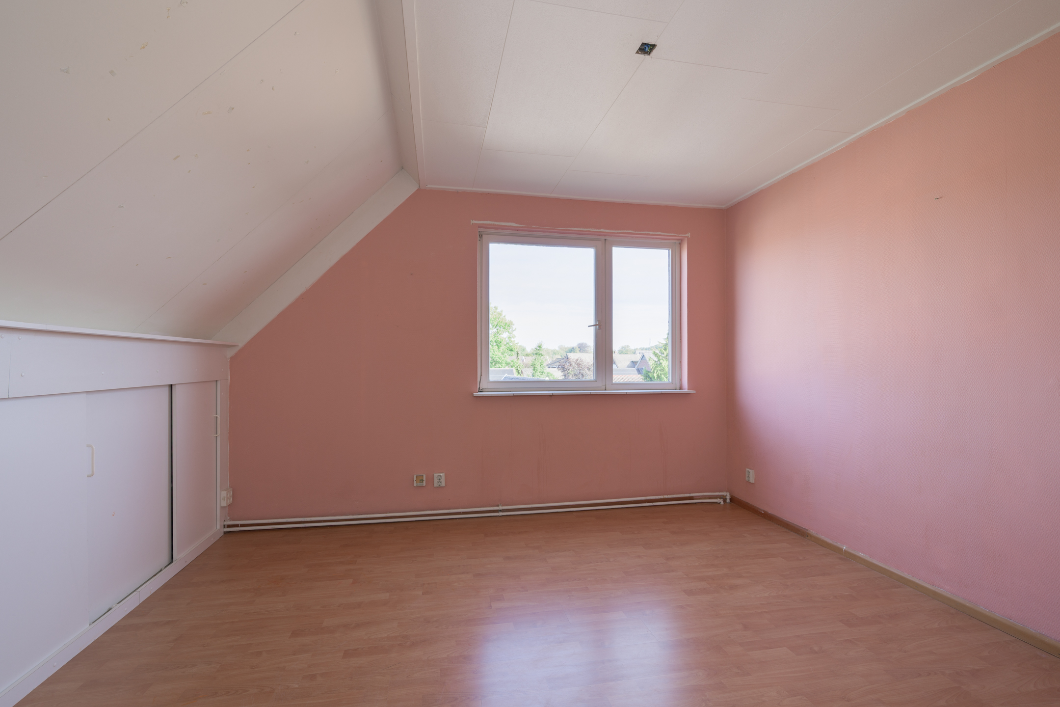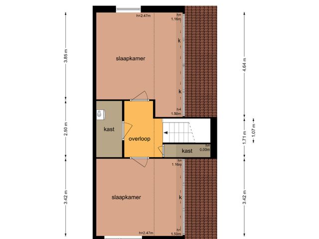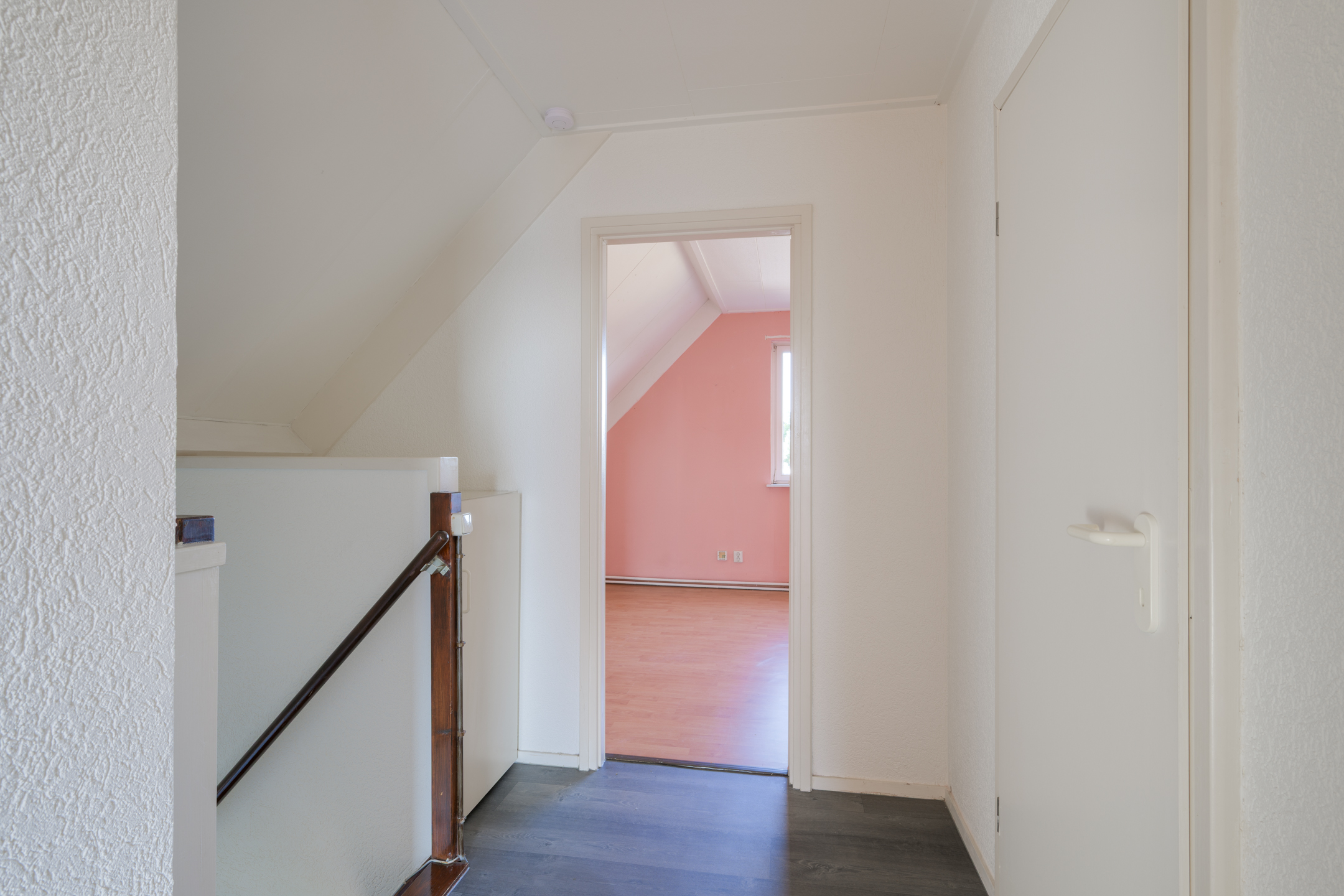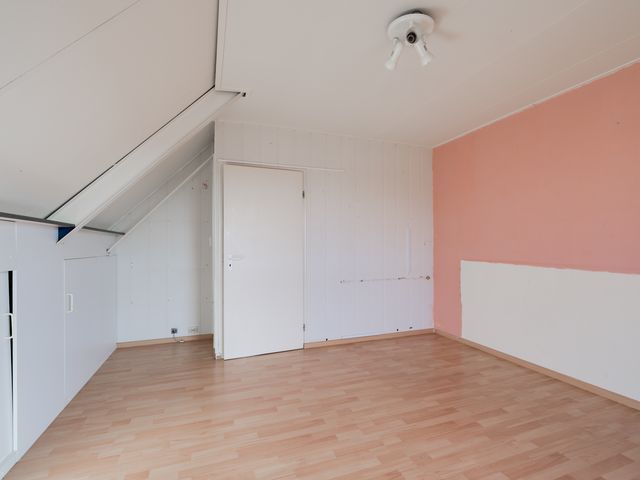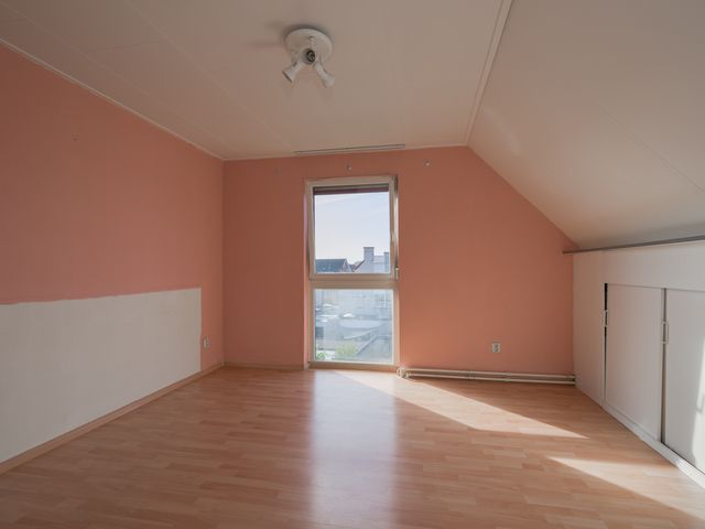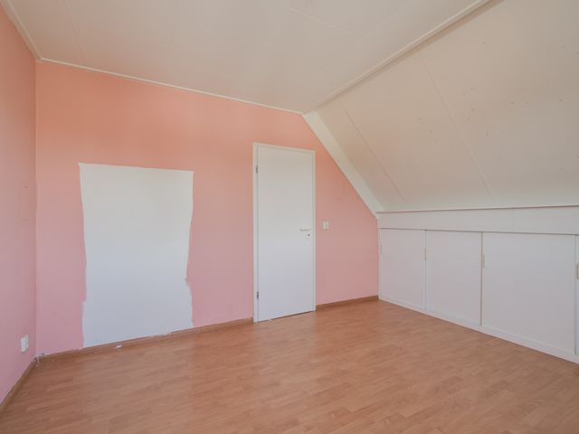 Tweede verdieping: Via vaste trap bereikbare overloop met vaste kastruimte en aan weerszijden toegang tot de 2 slaapkamers. Beide slaapkamers op deze verdieping beschikken over kastruimte achter de knieschotten.