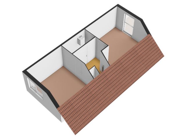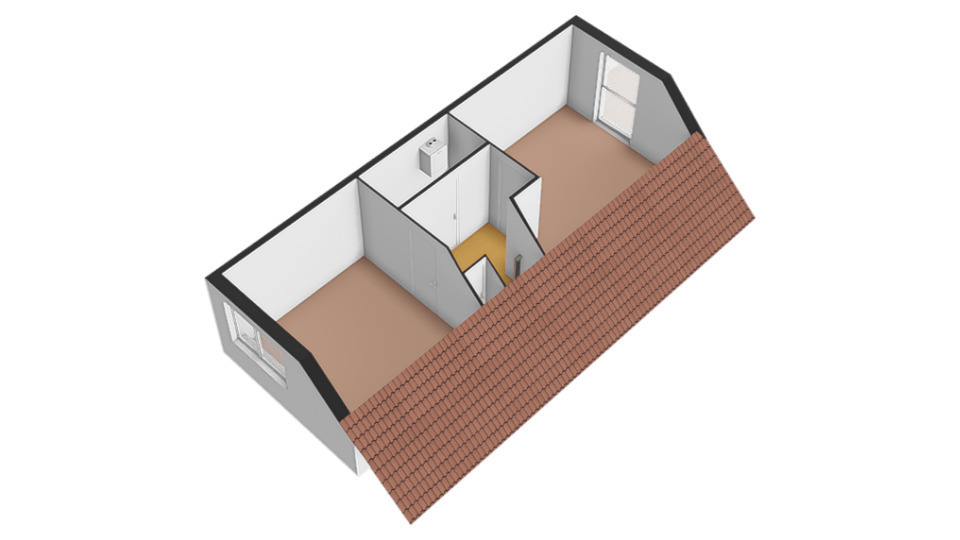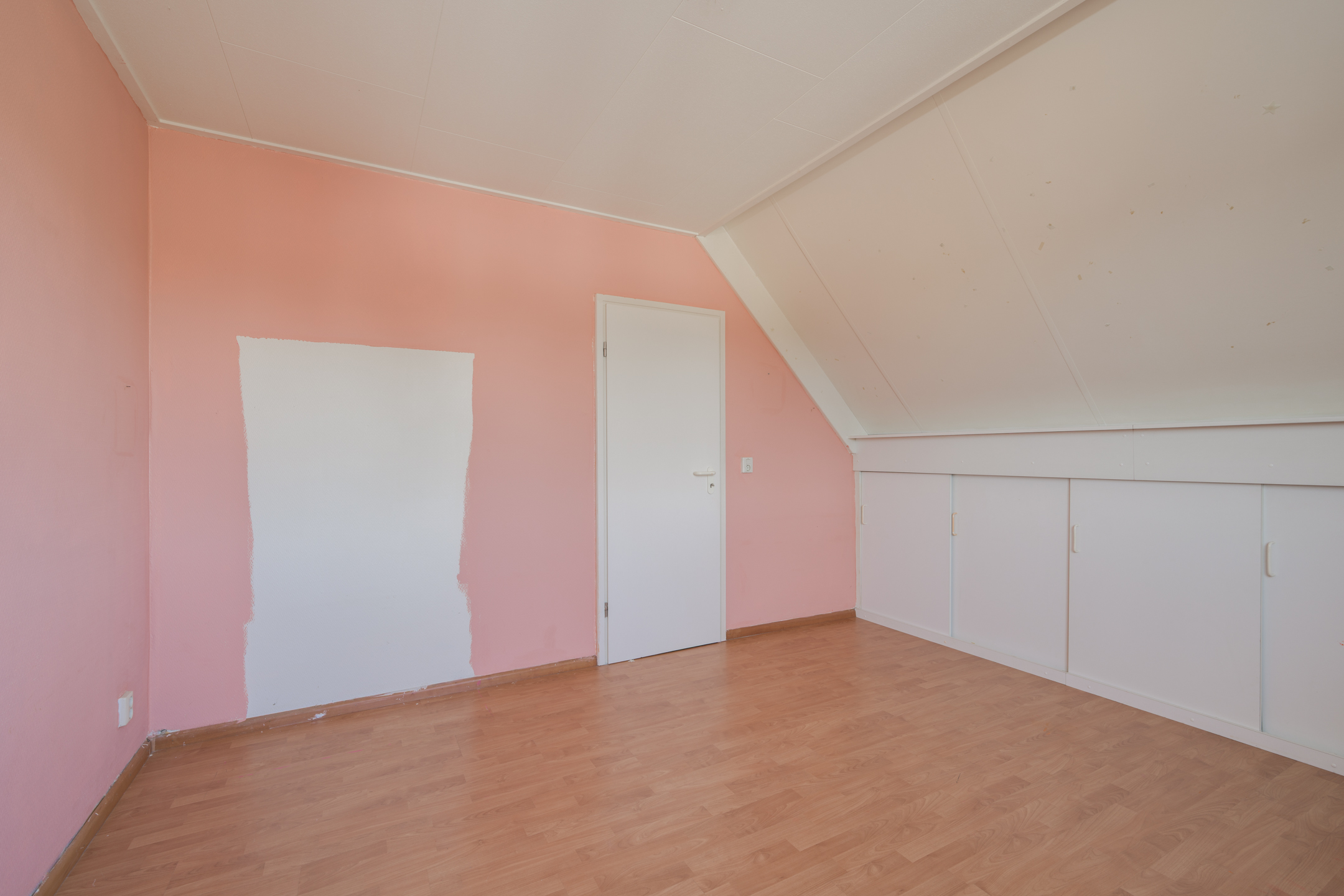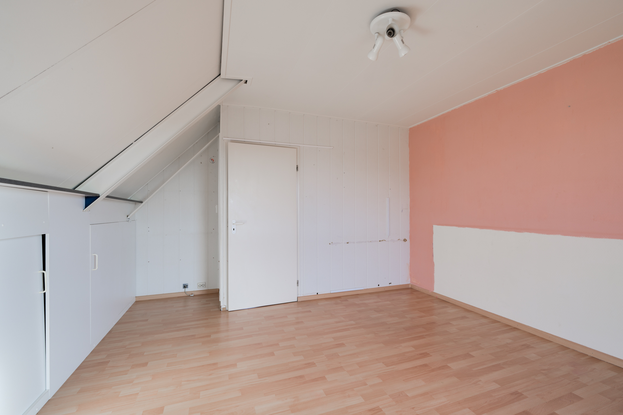 Tweede verdieping: Via vaste trap bereikbare overloop met vaste kastruimte en aan weerszijden toegang tot de 2 slaapkamers. Beide slaapkamers op deze verdieping beschikken over kastruimte achter de knieschotten.