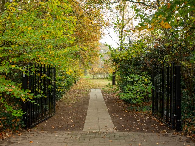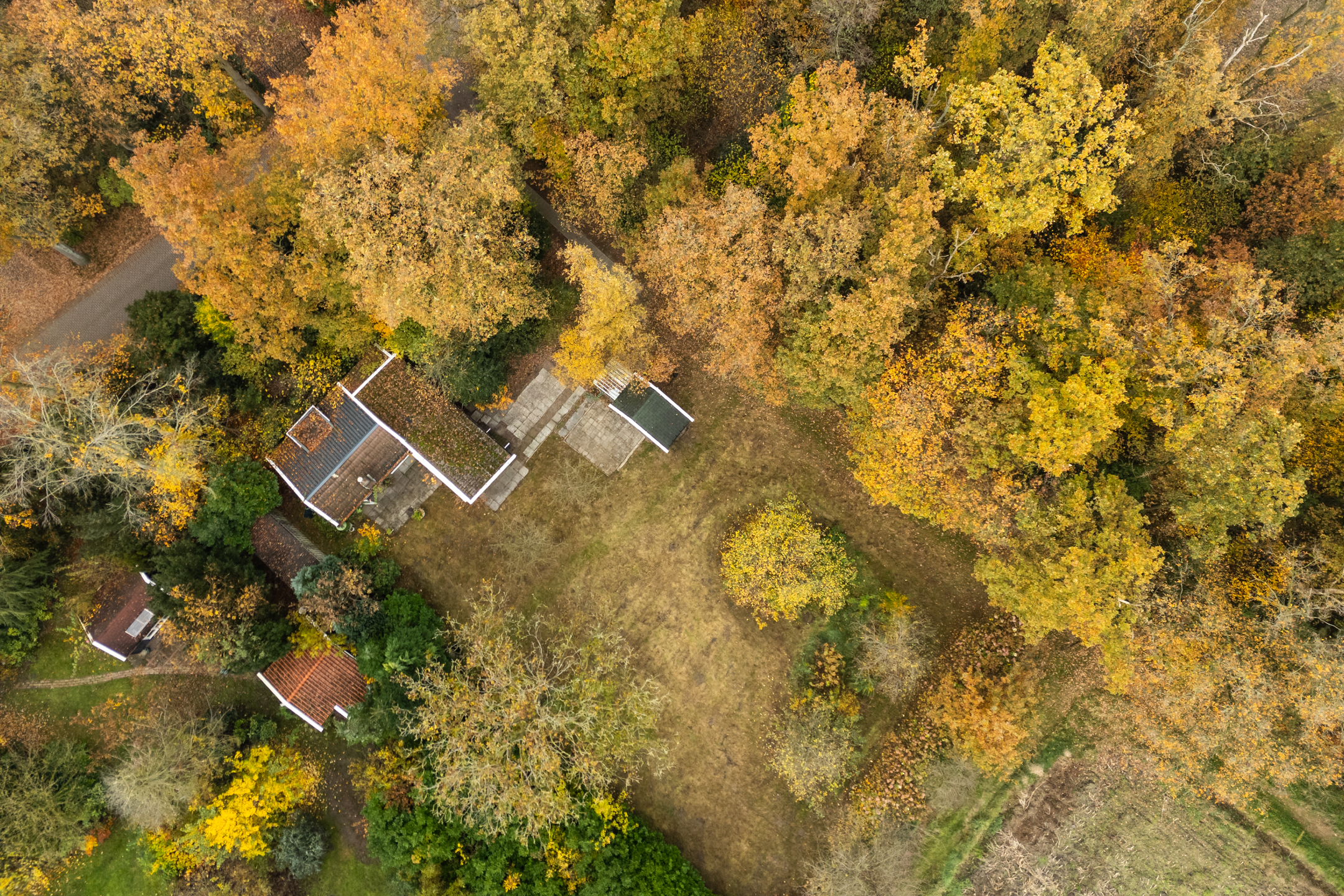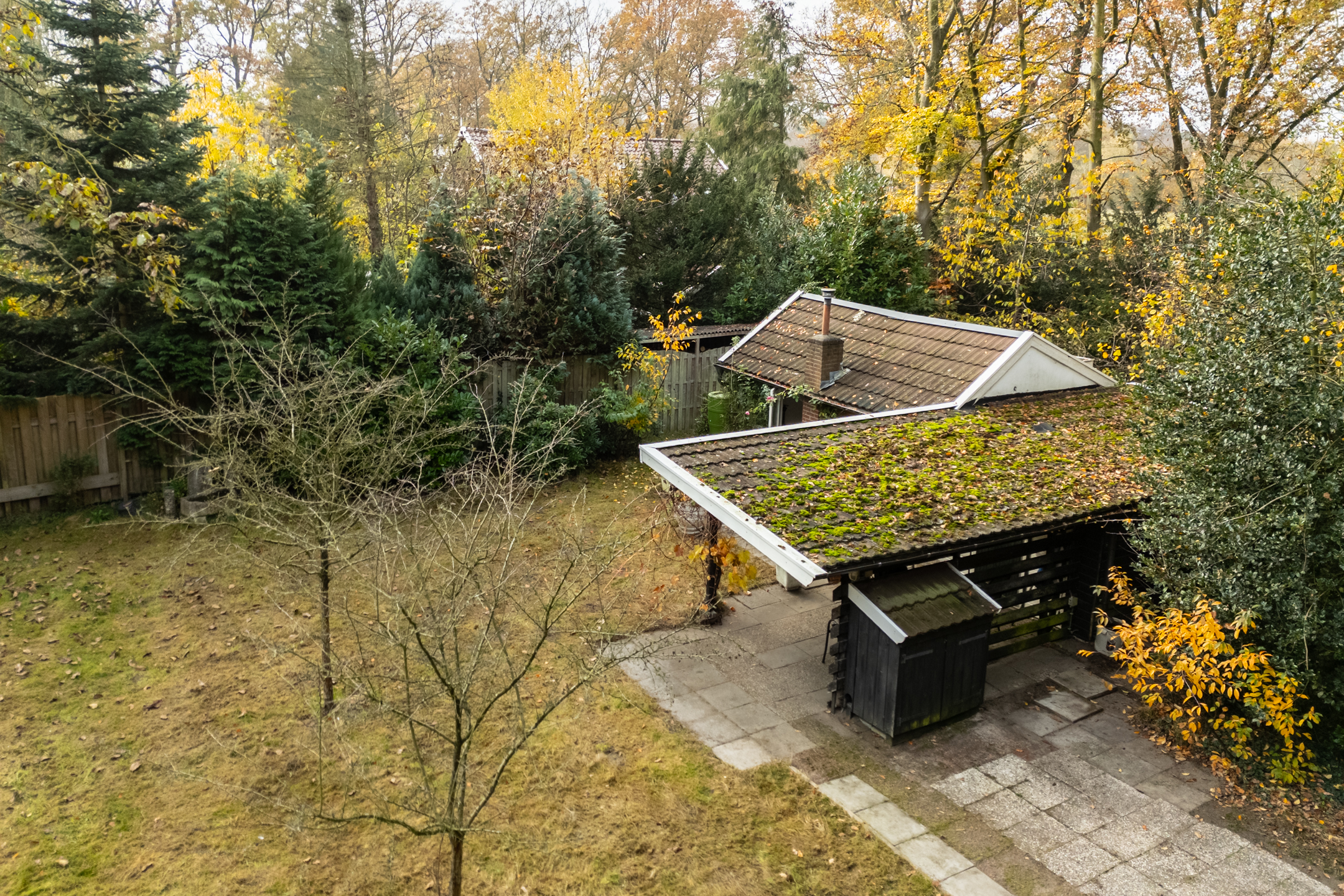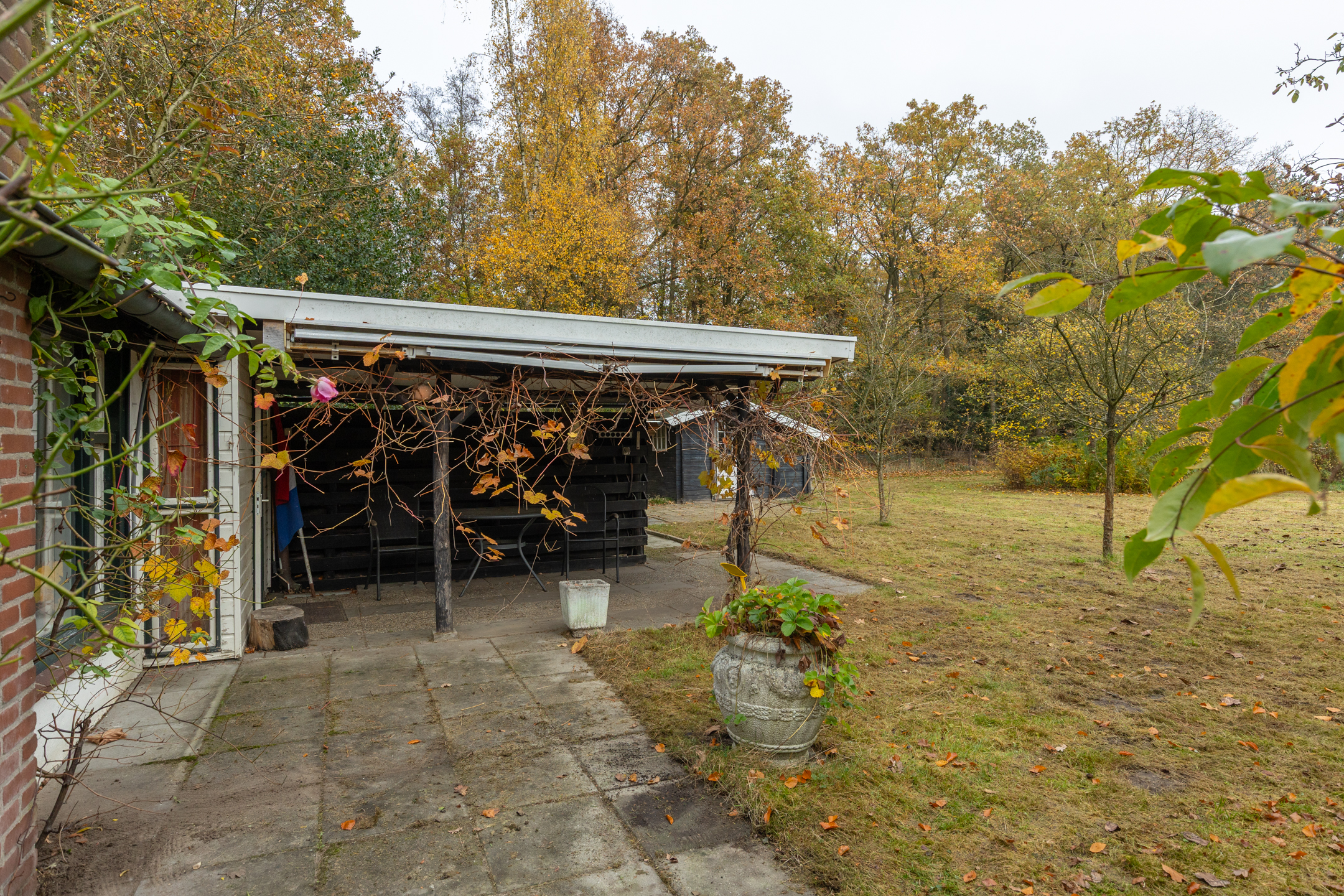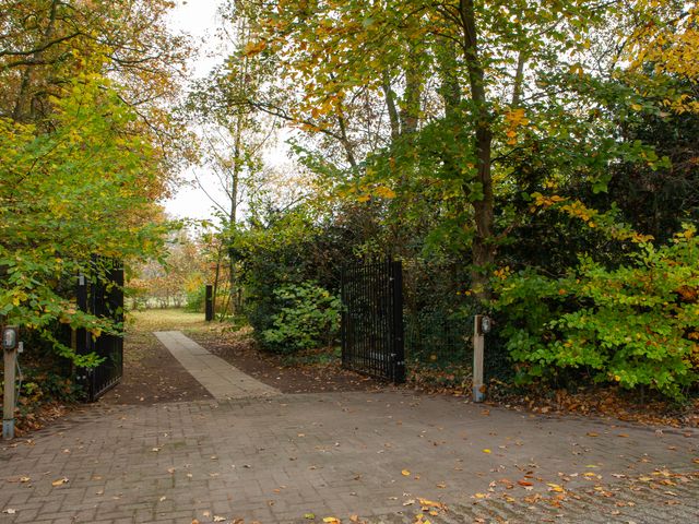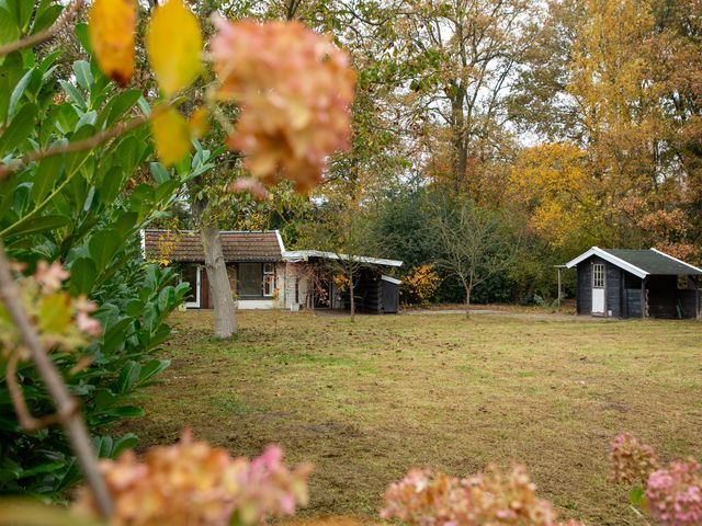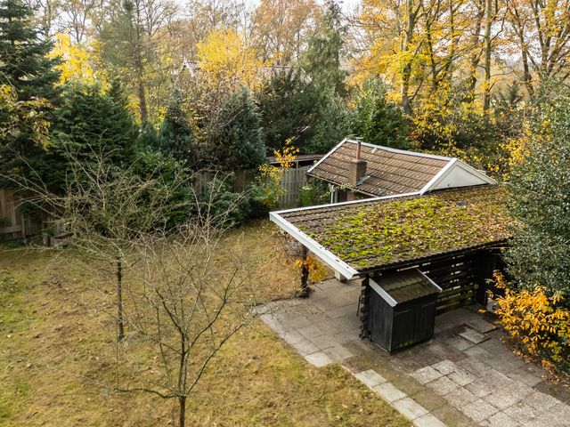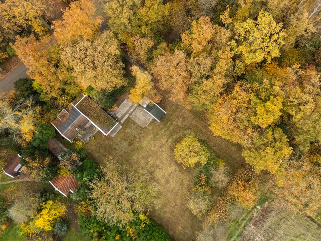 Deze recreatiewoning is gelegen direct aan een bosrand, op een royaal perceel van 1.130 m² en toegankelijk via de elektrisch bedienbare poort. Het rechthoekige perceel is totaal ruim 45 m lang en gemiddeld zo’n 24 m breed.