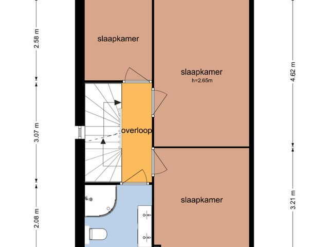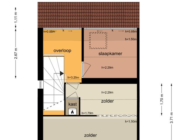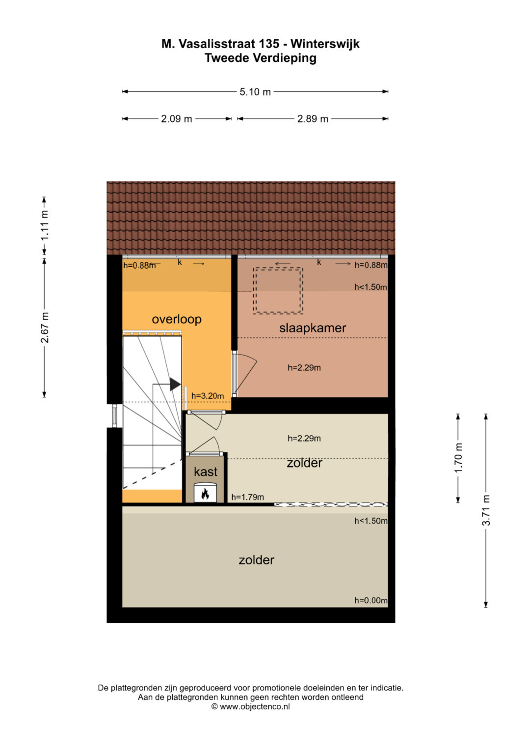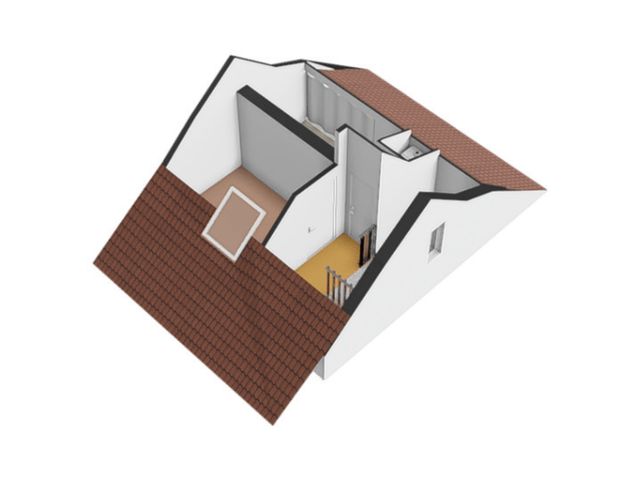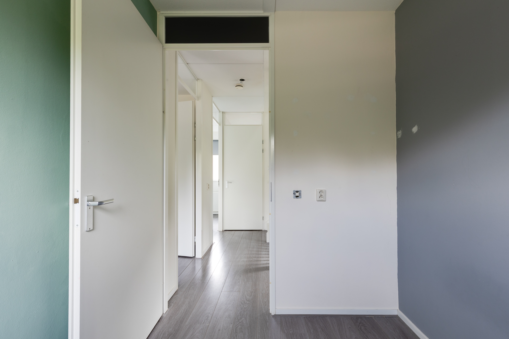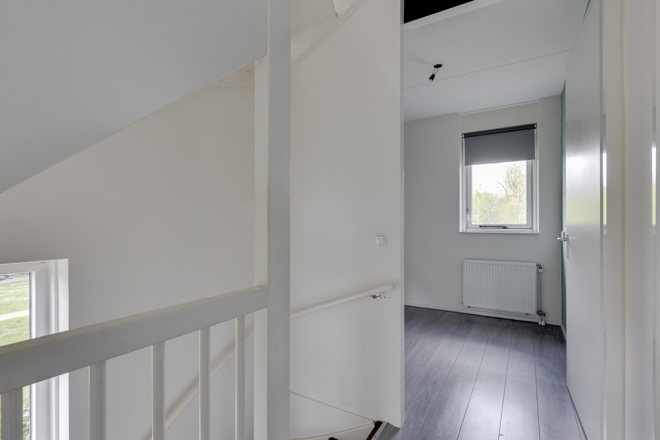 Tweede verdieping: Via vaste trap bereikbare overloop met toegang tot 4e slaapkamer en zolder-/bergruimte. De 4e slaapkamer is voorzien van een dakraam en beschikt net als de overloop over een schuifkast achter de knieschotten. Op de zolder-/bergruimte bevindt zich een vaste kast met daarin de cv-ketel.