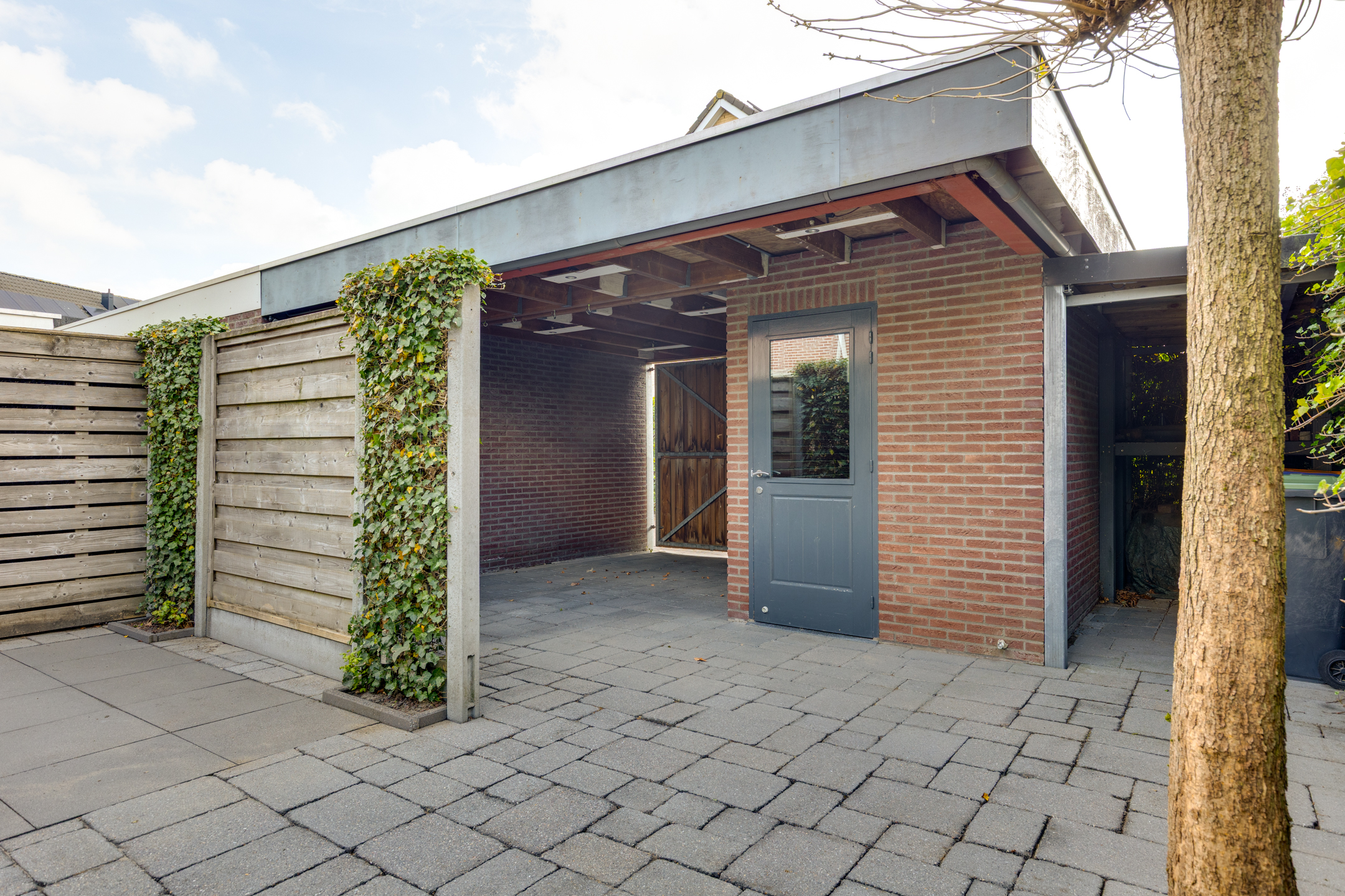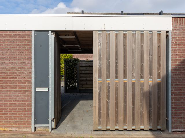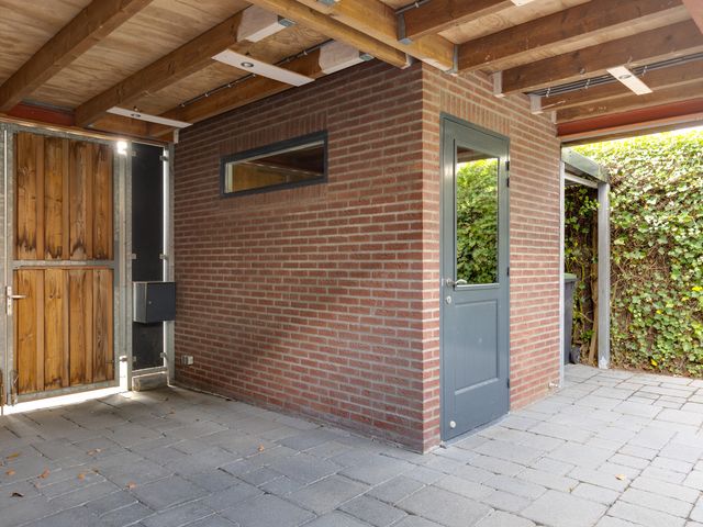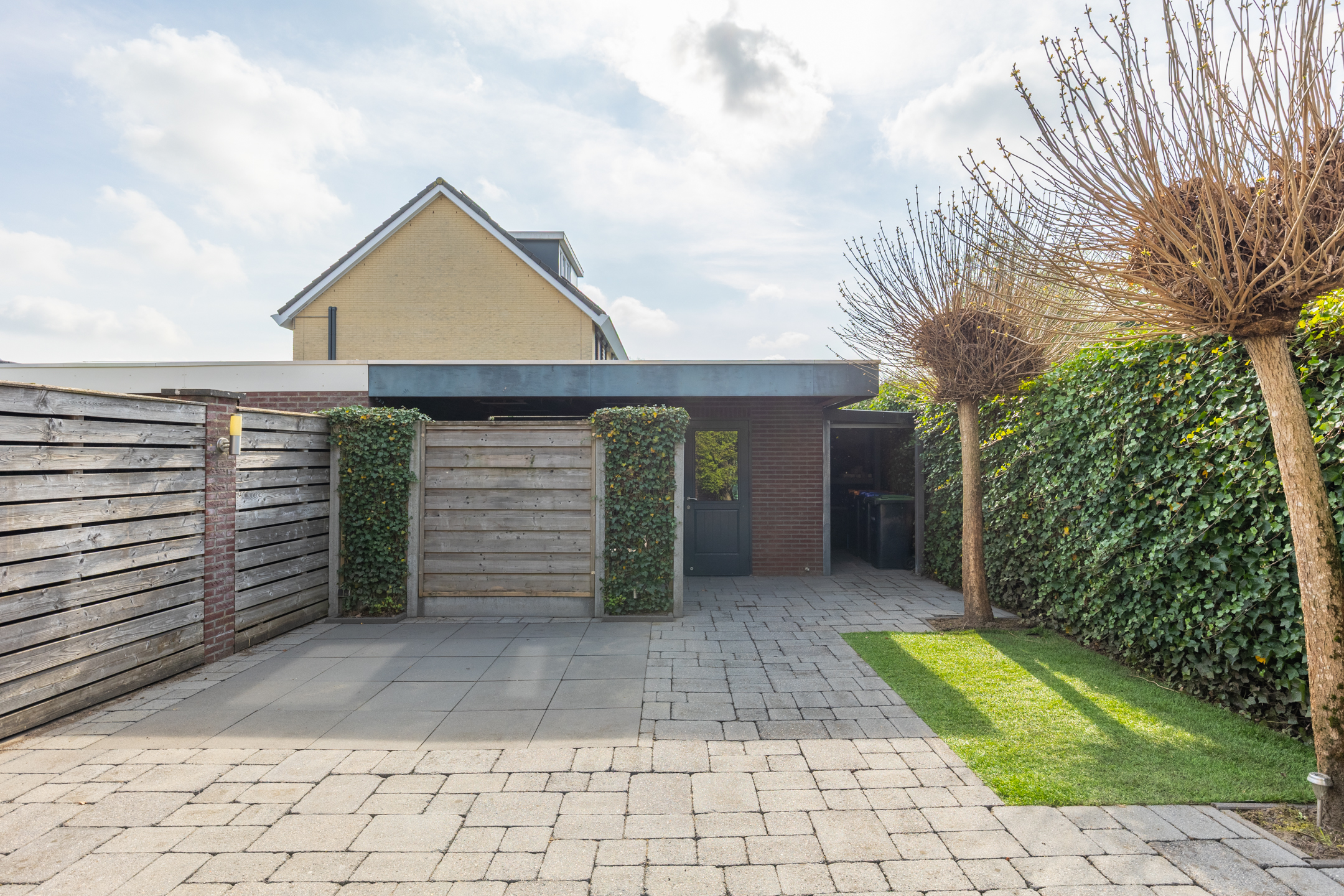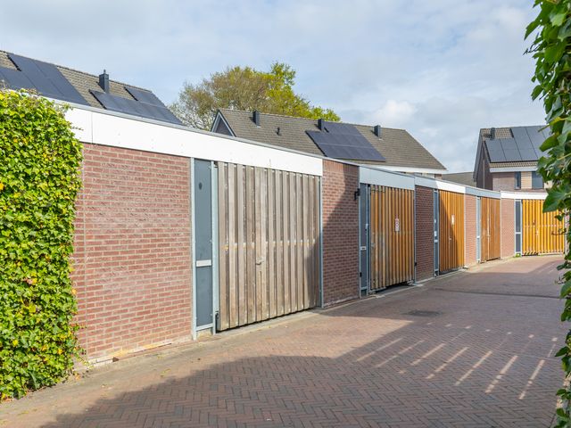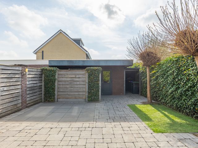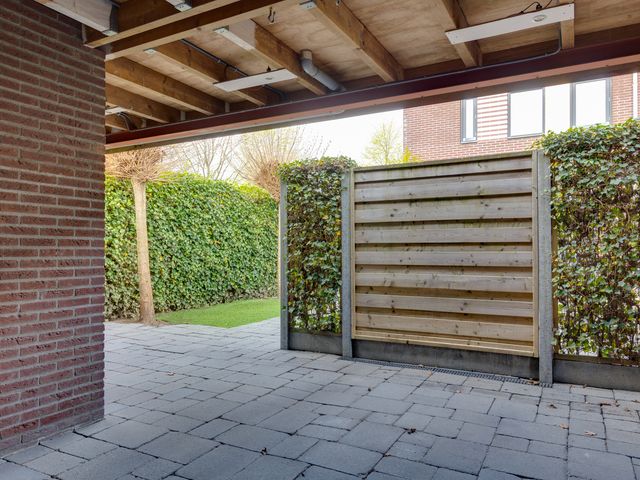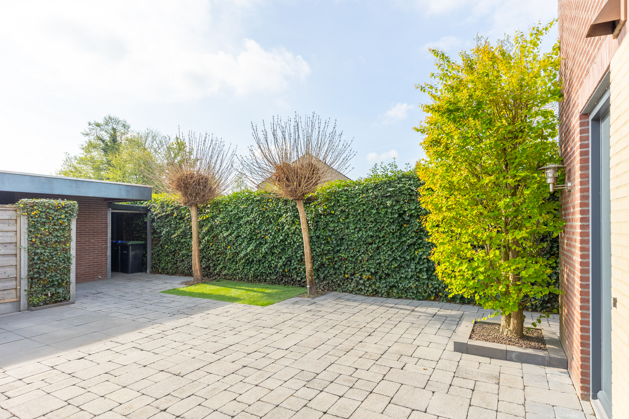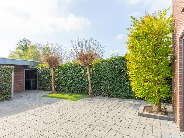 De achtertuin van de woning is gelegen op het zuidoosten en grotendeels bestraat. De voortuin is omheind met een beukenhaag en onderhoudsvriendelijk aangelegd.