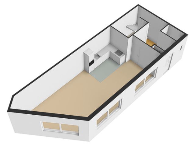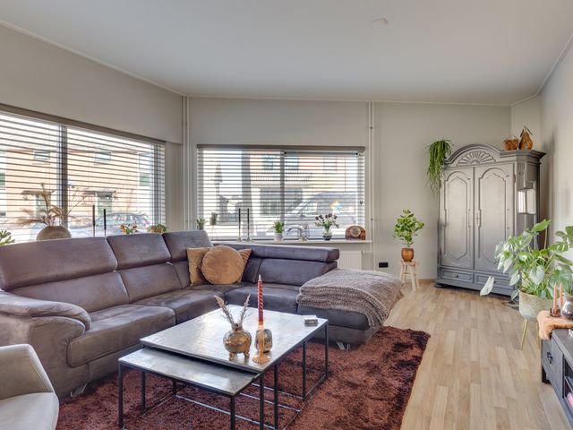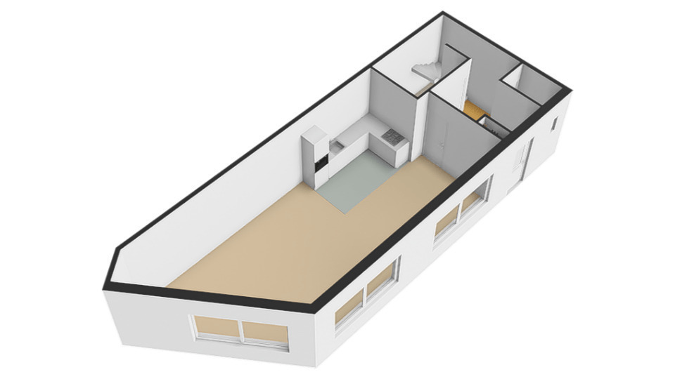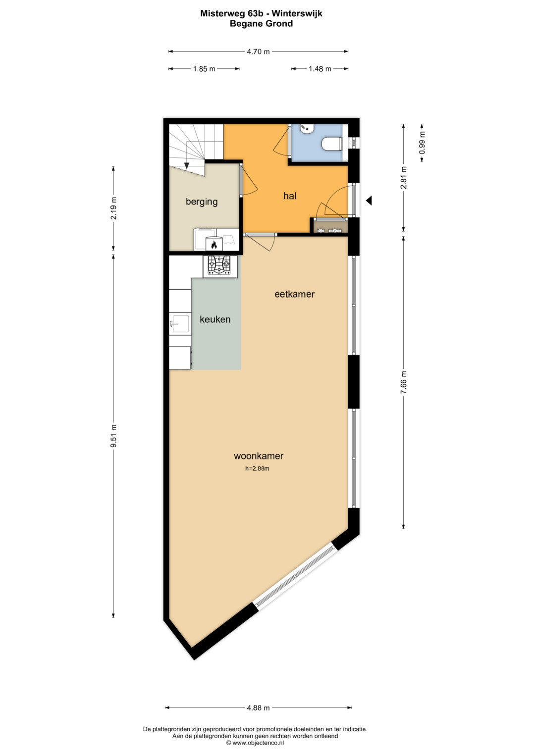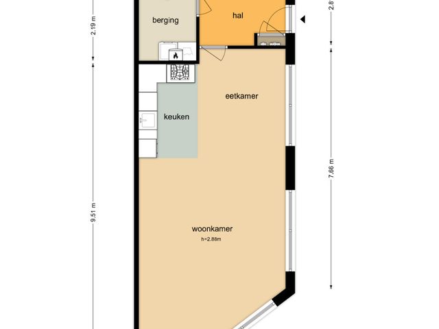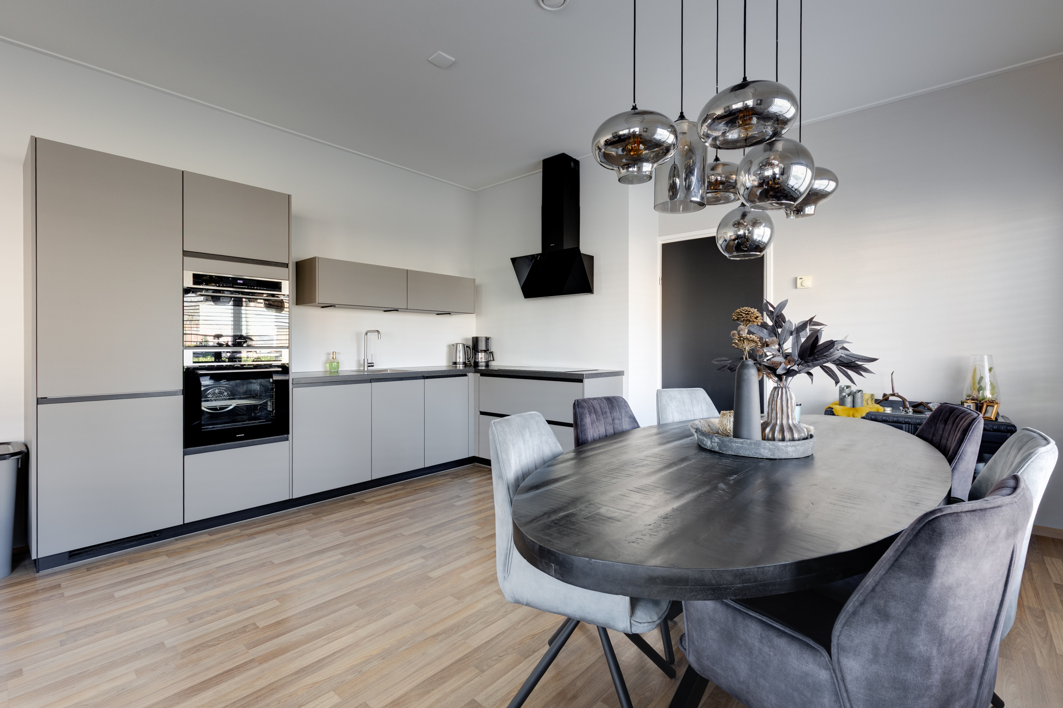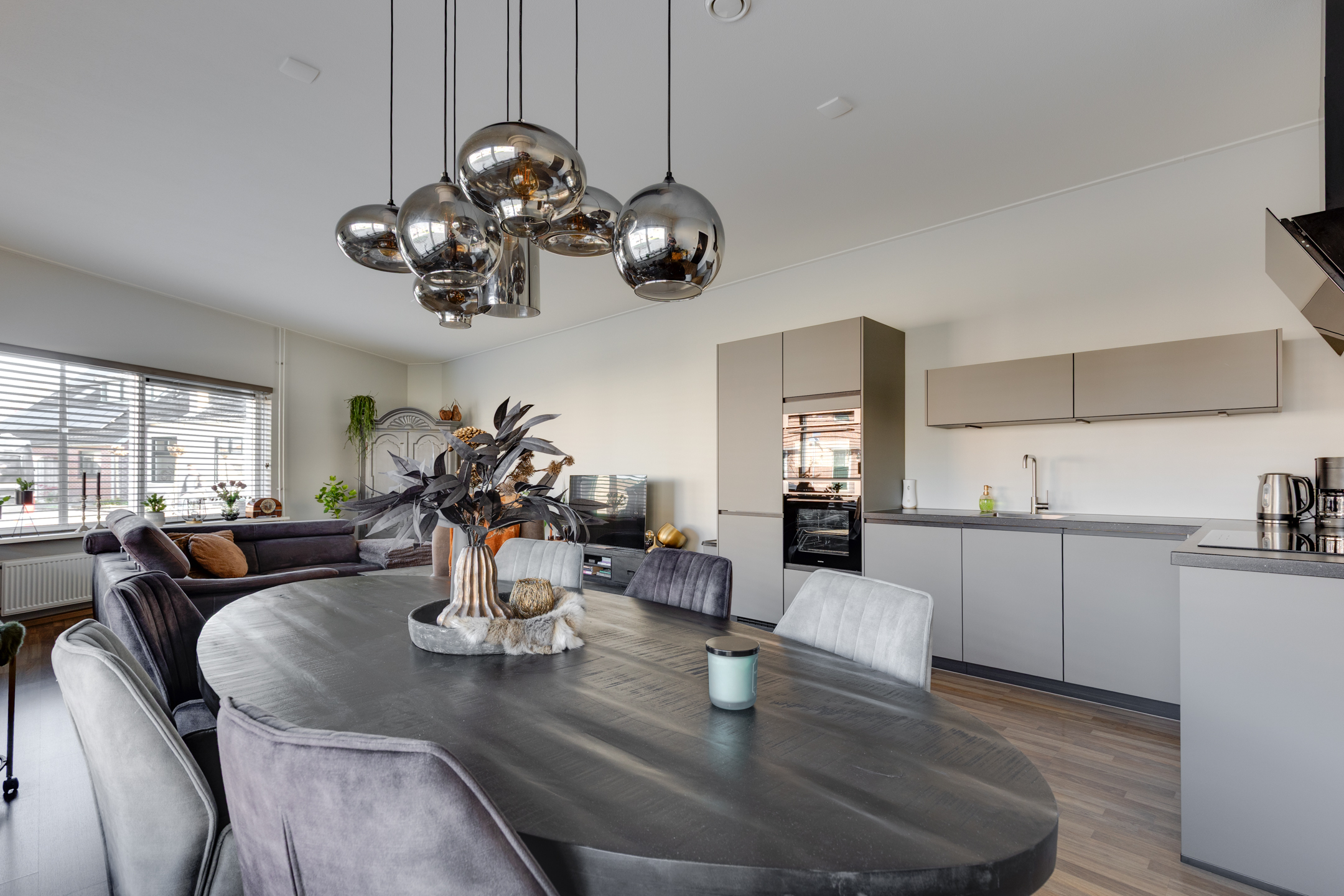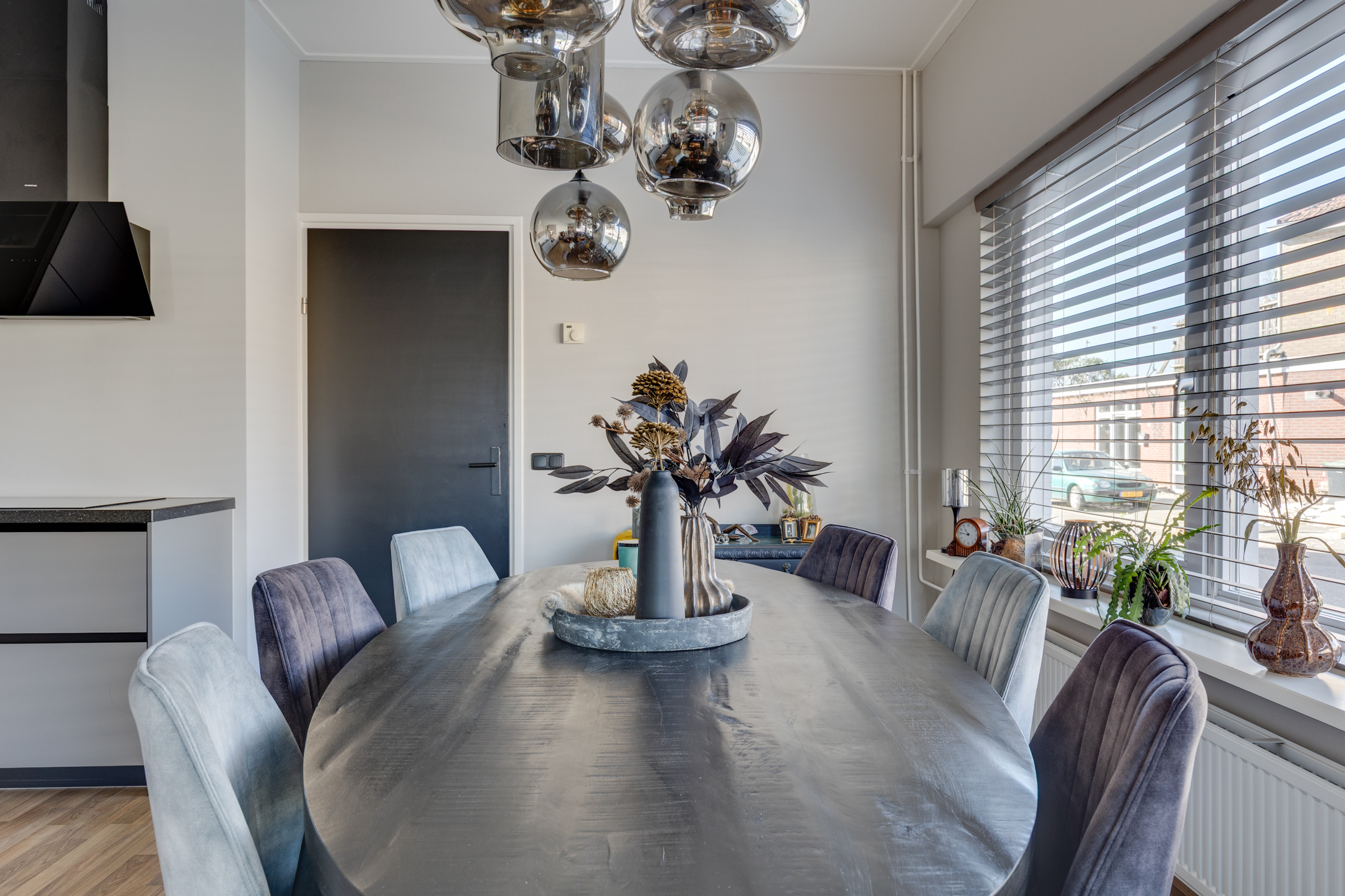 Begane grond: Entree via de voordeur in de hal. De hal is voorzien van een trapopgang naar de eerste verdieping, een toiletruimte met wandcloset en fonteintje, en de meterkast. Vanuit de hal is er toegang tot de (inpandige) berging met cv-opstelling en wasmachine-aansluiting. De hal biedt tevens toegang tot de woonkamer. Dankzij de ligging op de hoek van de straat geniet de woonkamer van veel natuurlijke lichtinval. De ruimte is afgewerkt met een nette parketvloer en biedt voldoende plaats voor een ruime eethoek. De moderne open keuken is voorzien van diverse inbouwapparatuur, waaronder een inductiekookplaat, vaatwasser en koelkast.