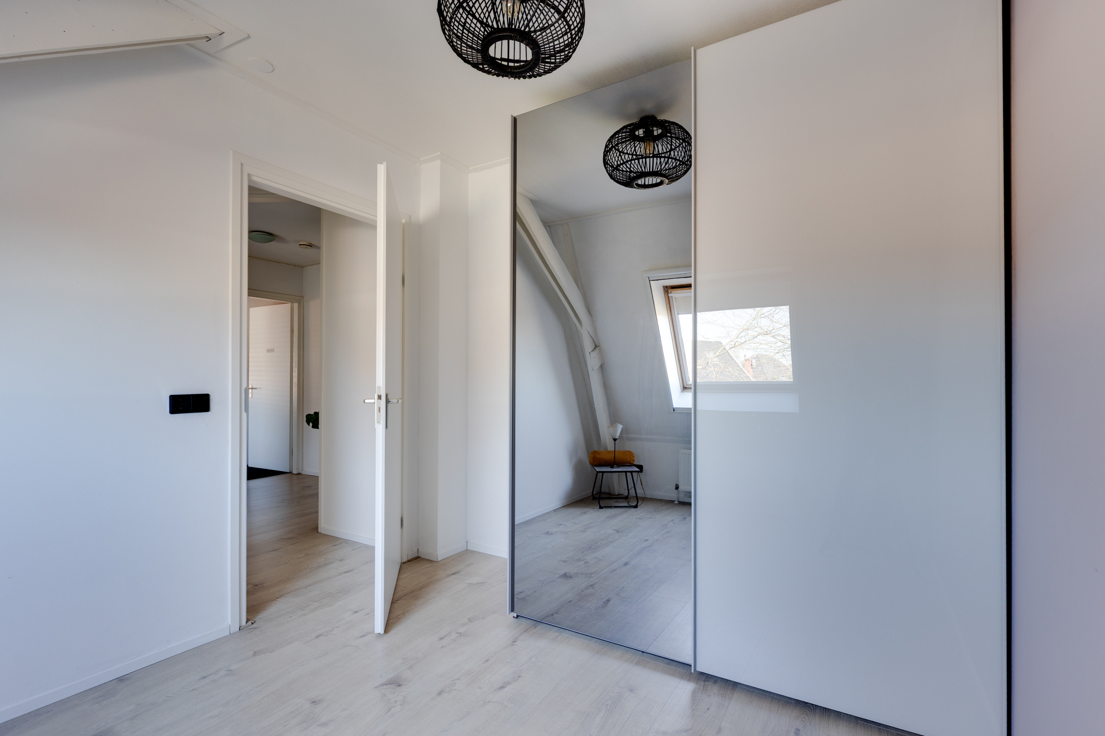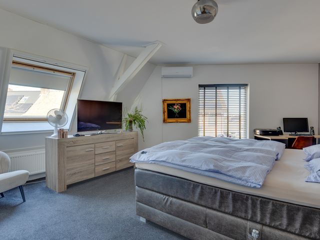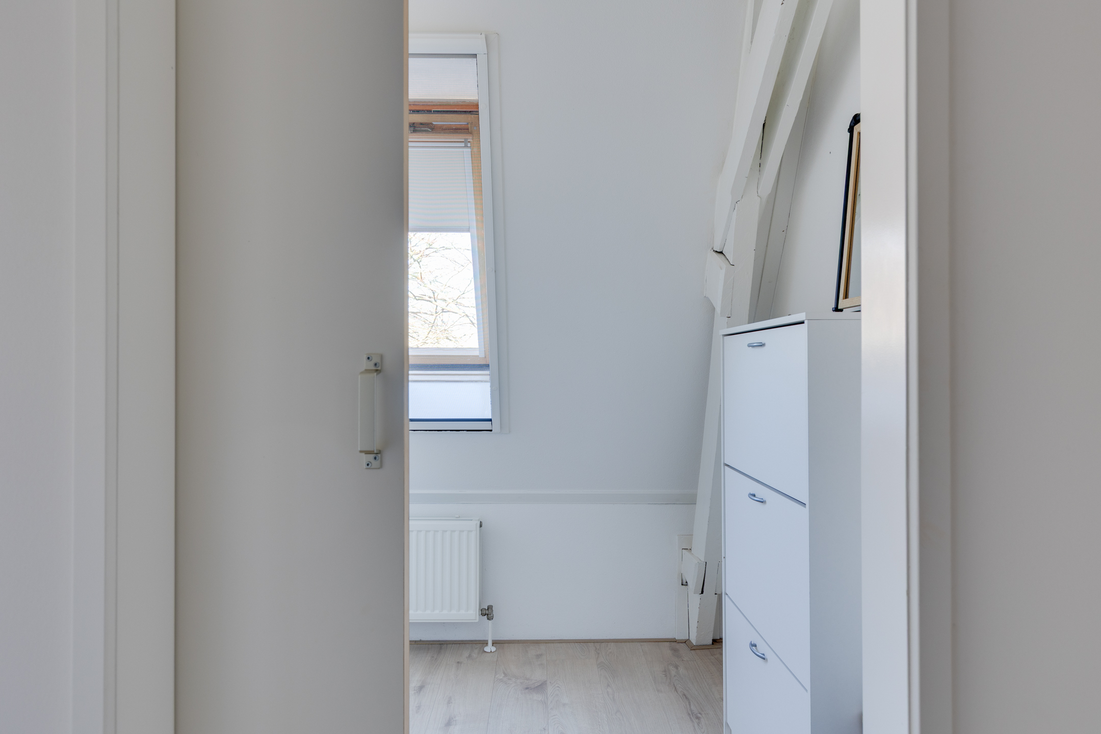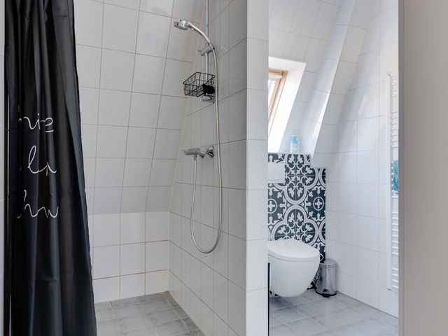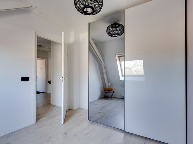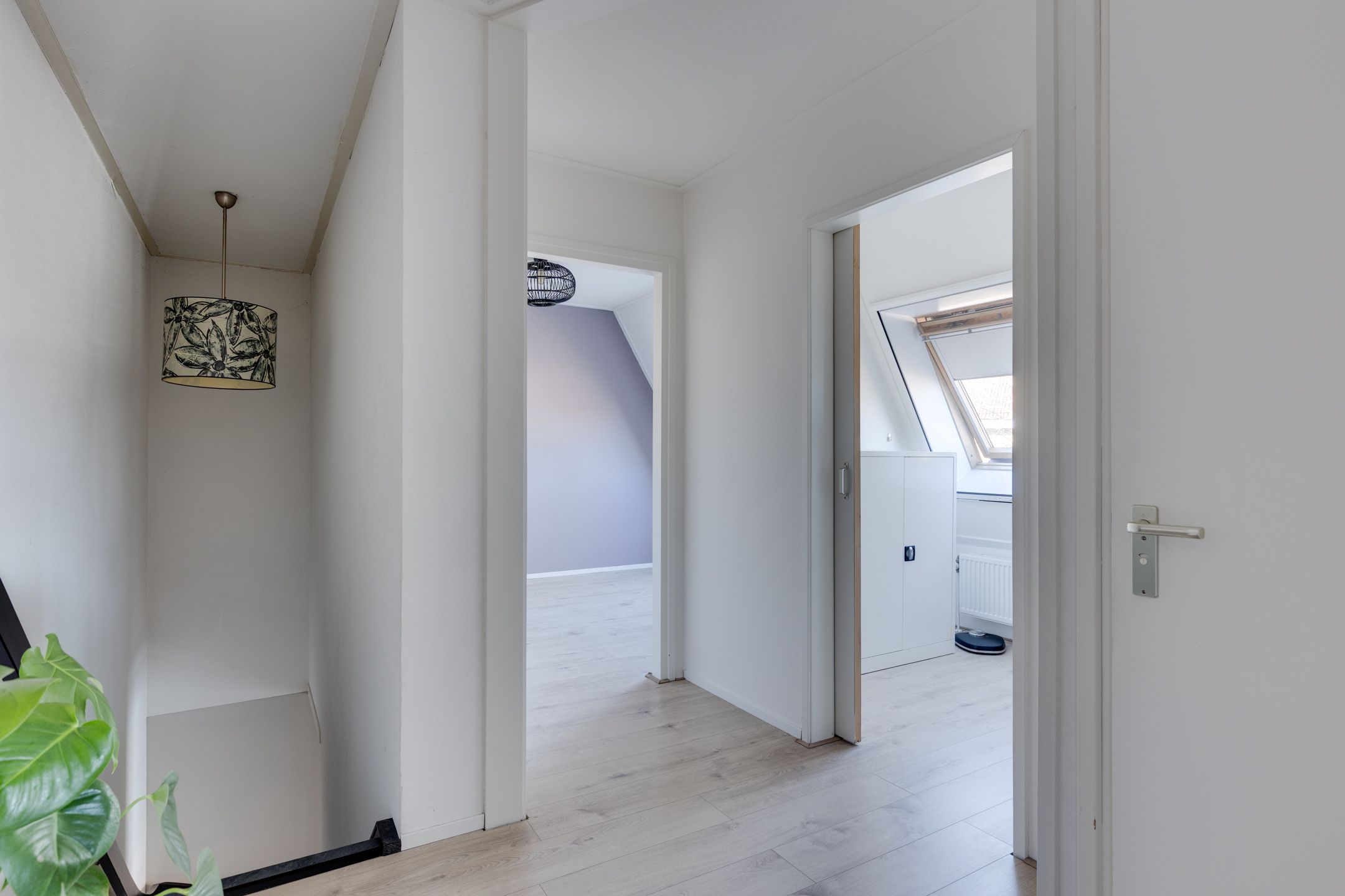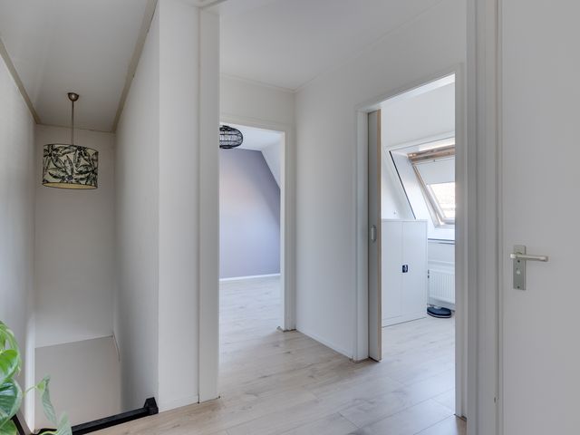 Eerste verdieping: Overloop met toegang tot drie slaapkamers en de badkamer. Alle slaapkamers zijn voorzien van een dakraam, waarbij één slaapkamer beschikt over airconditioning (2024). De badkamer is voorzien van een inloopdouche, tweede toilet, designradiator en wastafel.