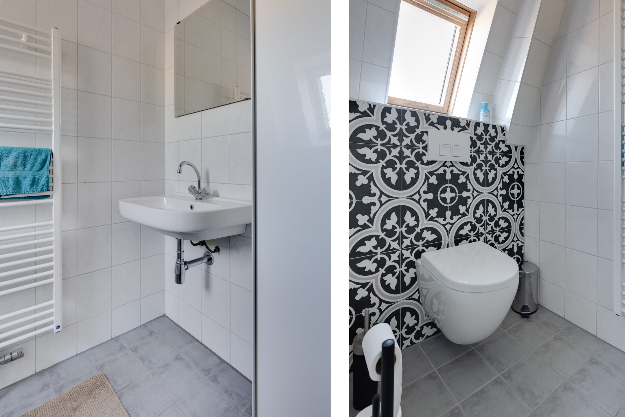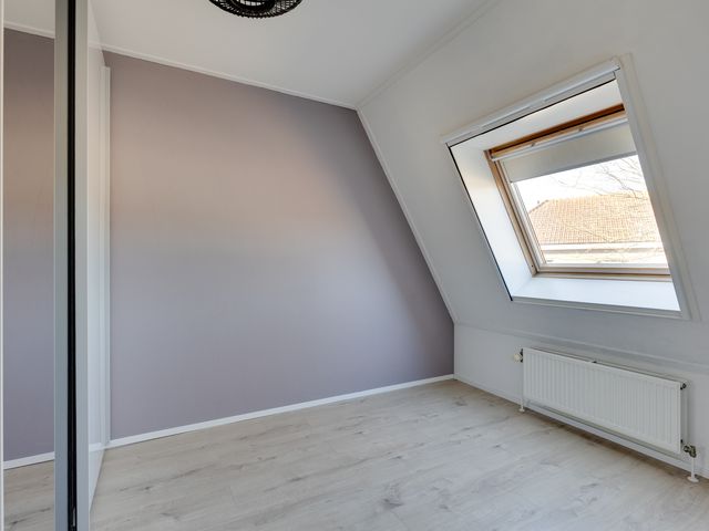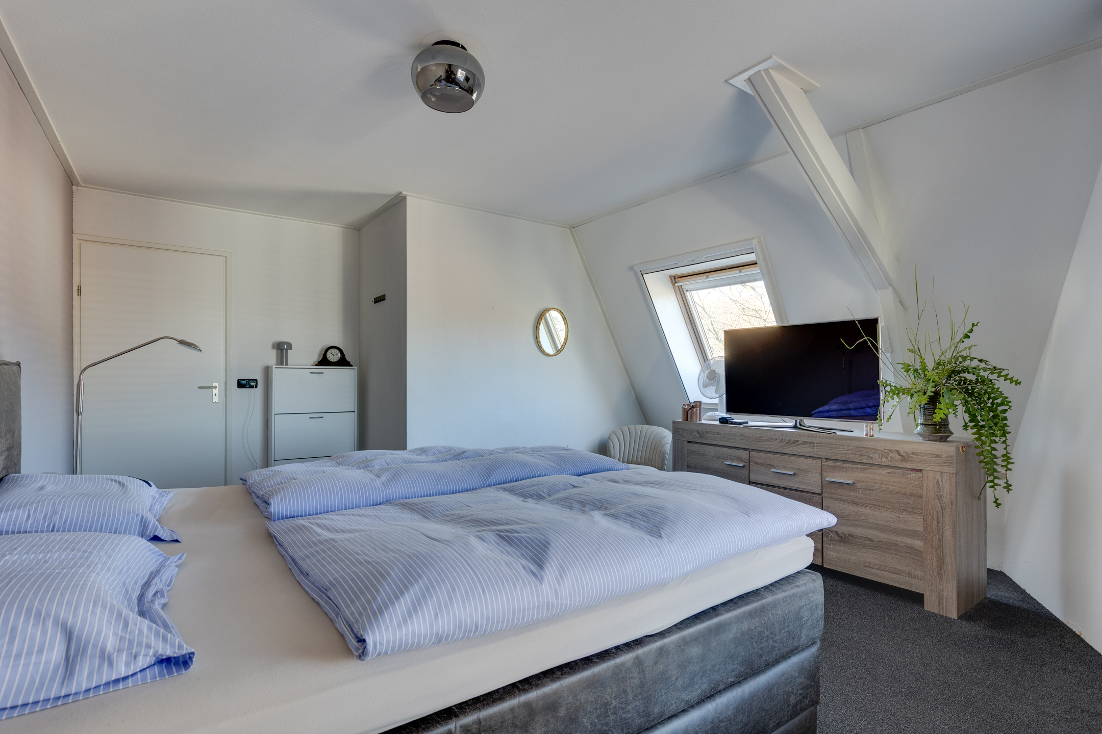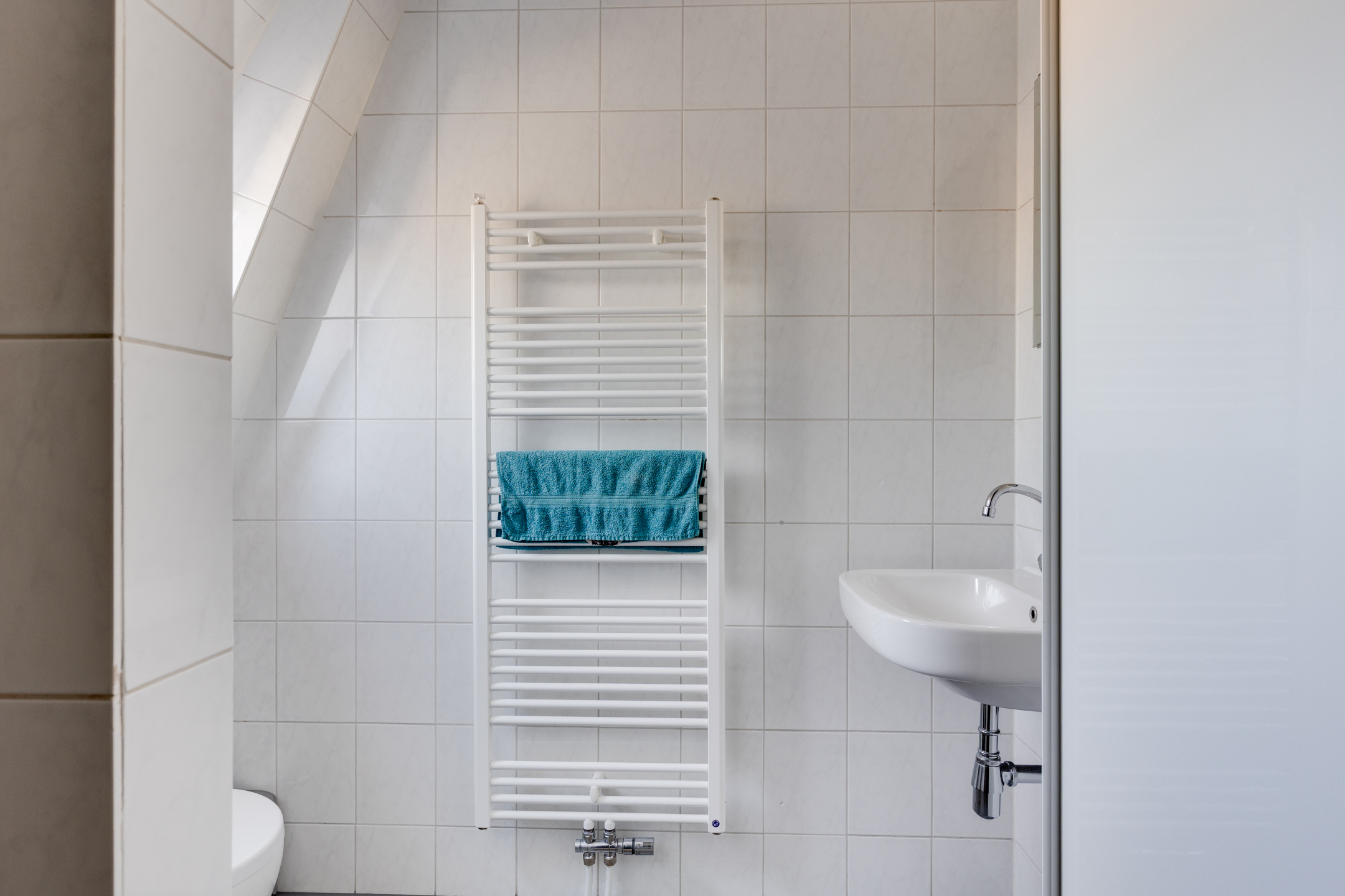 Eerste verdieping: Overloop met toegang tot drie slaapkamers en de badkamer. Alle slaapkamers zijn voorzien van een dakraam, waarbij één slaapkamer beschikt over airconditioning (2024). De badkamer is voorzien van een inloopdouche, tweede toilet, designradiator en wastafel.