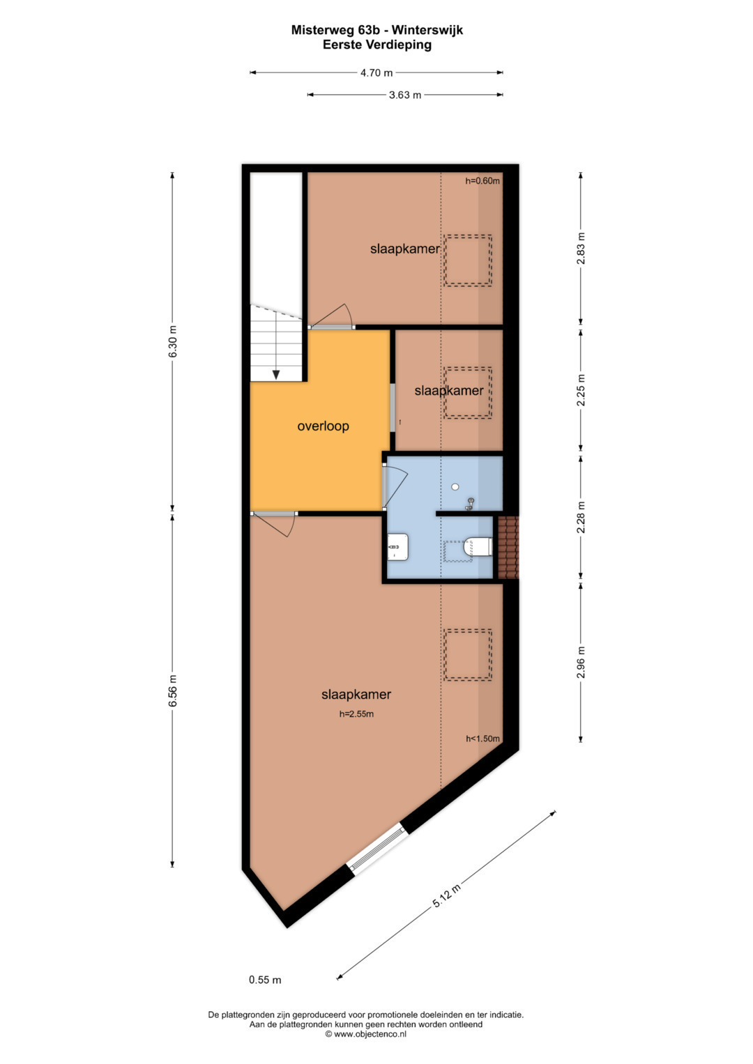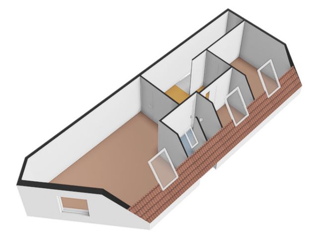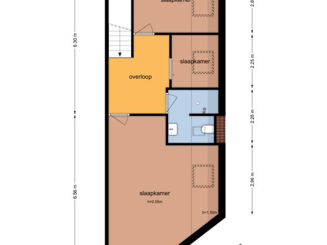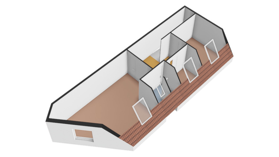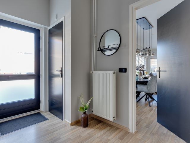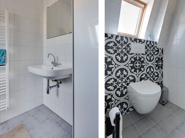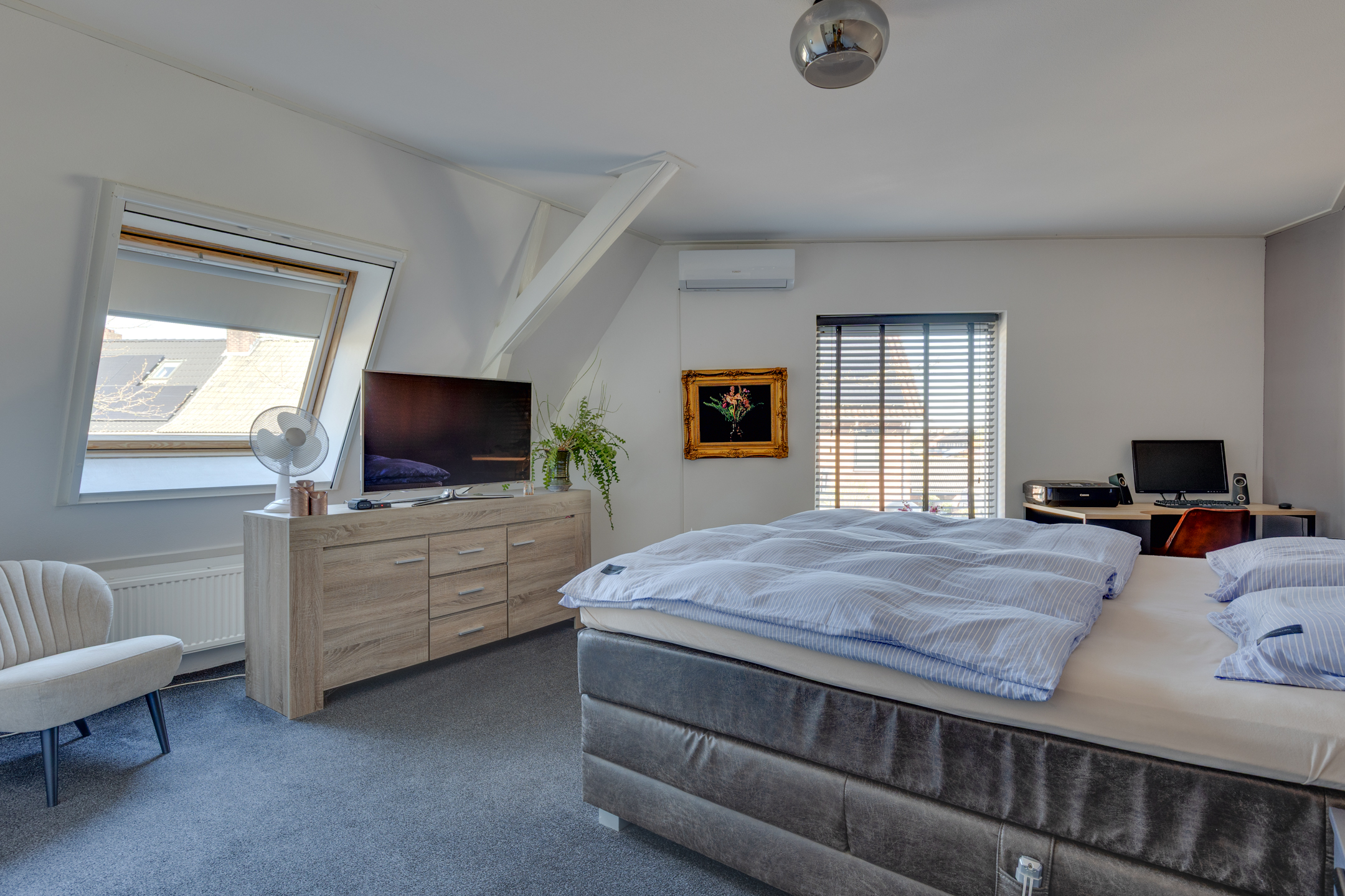 Eerste verdieping: Overloop met toegang tot drie slaapkamers en de badkamer. Alle slaapkamers zijn voorzien van een dakraam, waarbij één slaapkamer beschikt over airconditioning (2024). De badkamer is voorzien van een inloopdouche, tweede toilet, designradiator en wastafel.